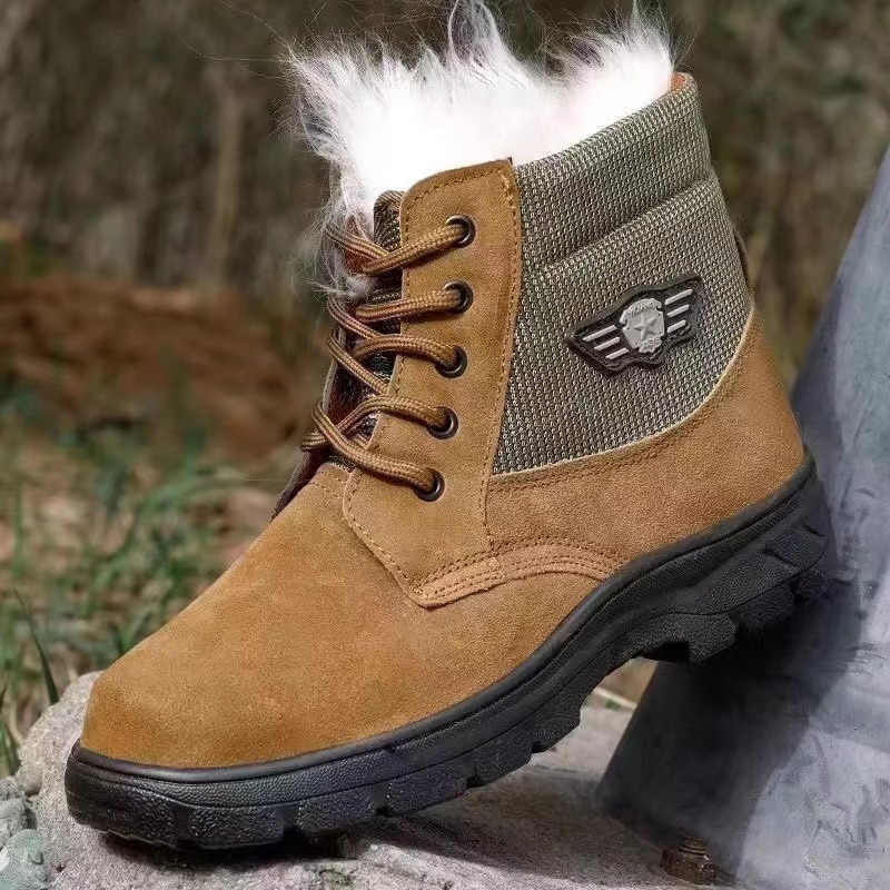 공장 직모 양모 스노우 부츠 남성용 방한 면화 부드러운 가죽 큰 발가락 신발 모피 일체형 두꺼운 따뜻한 부츠