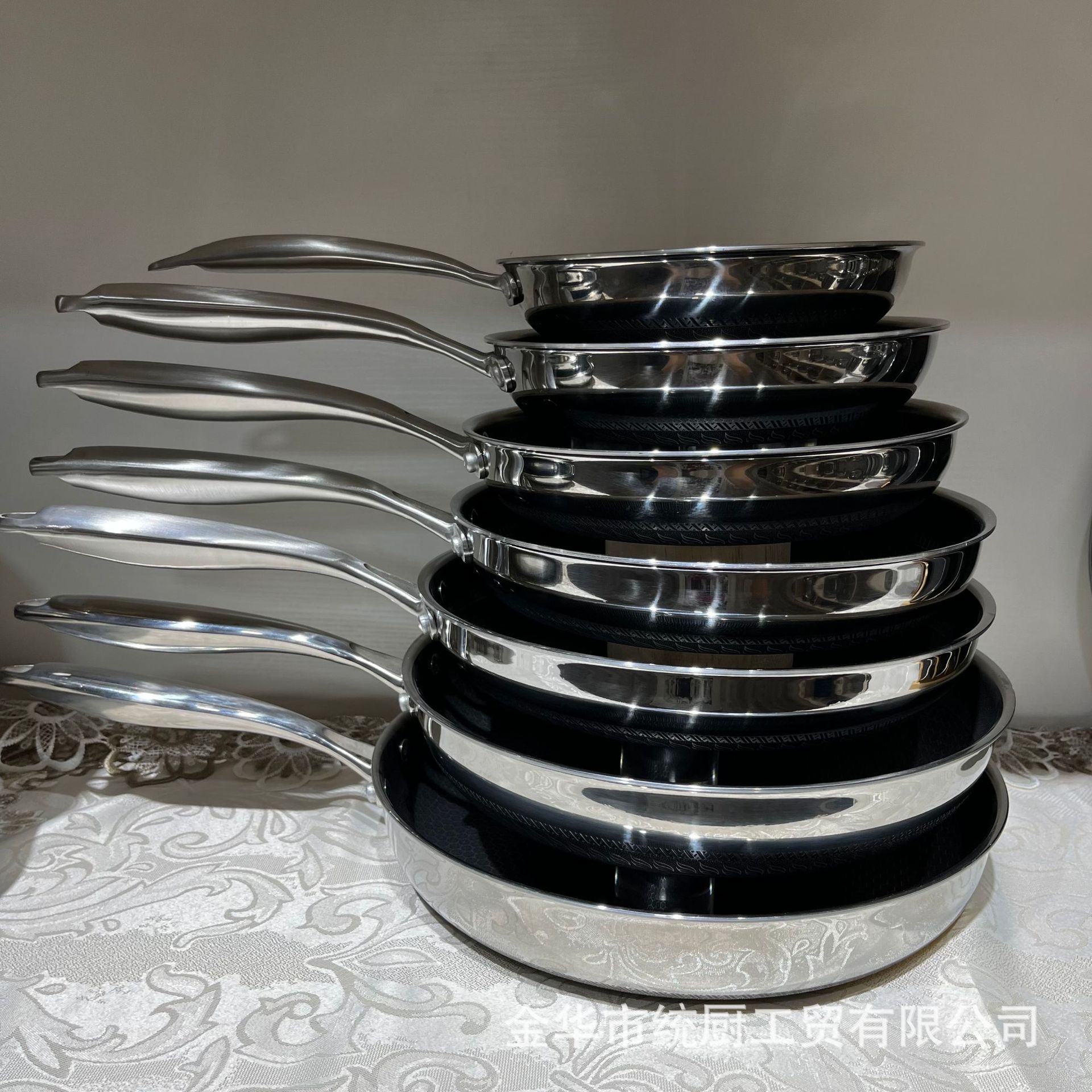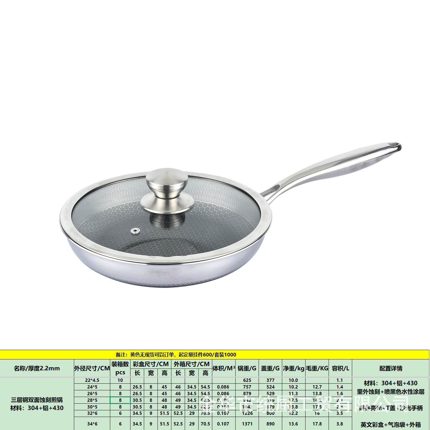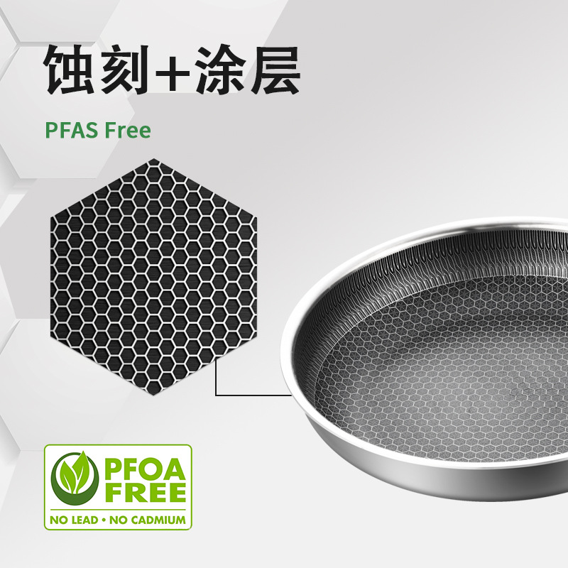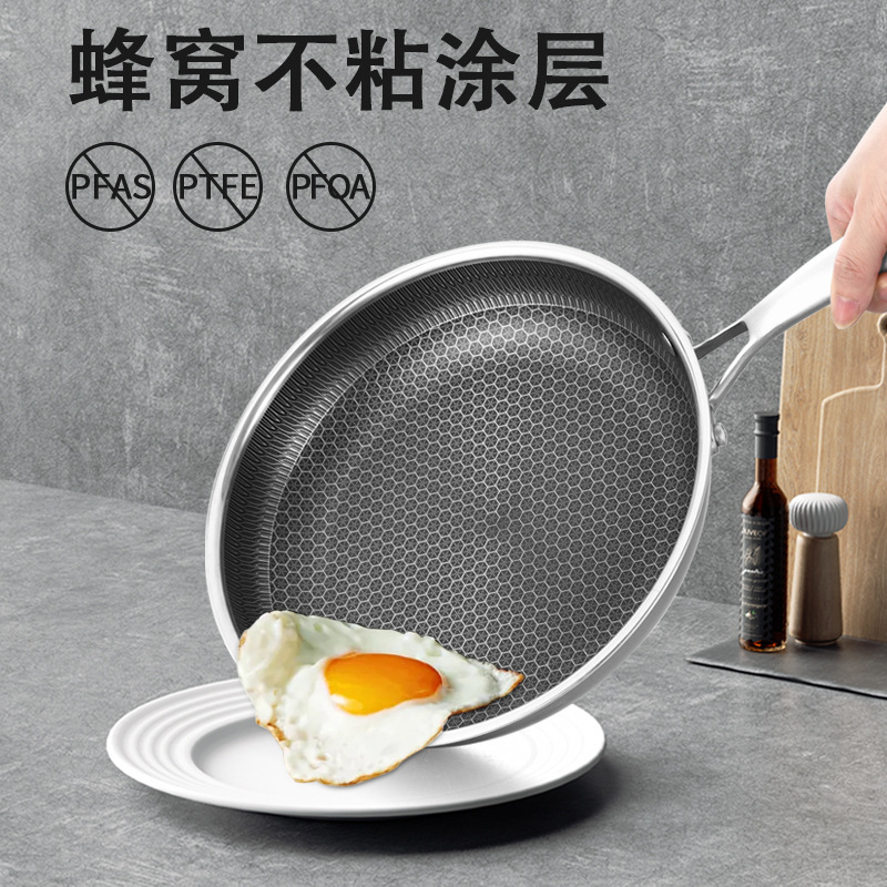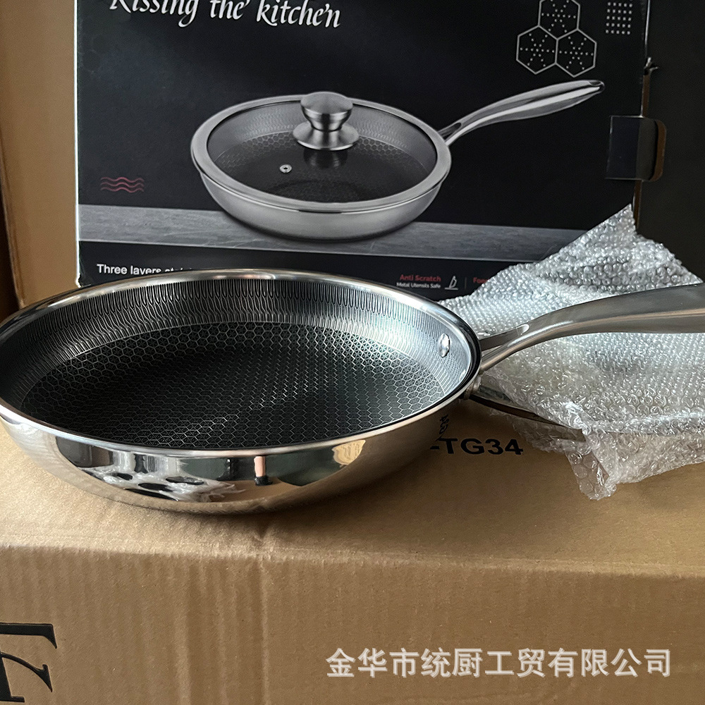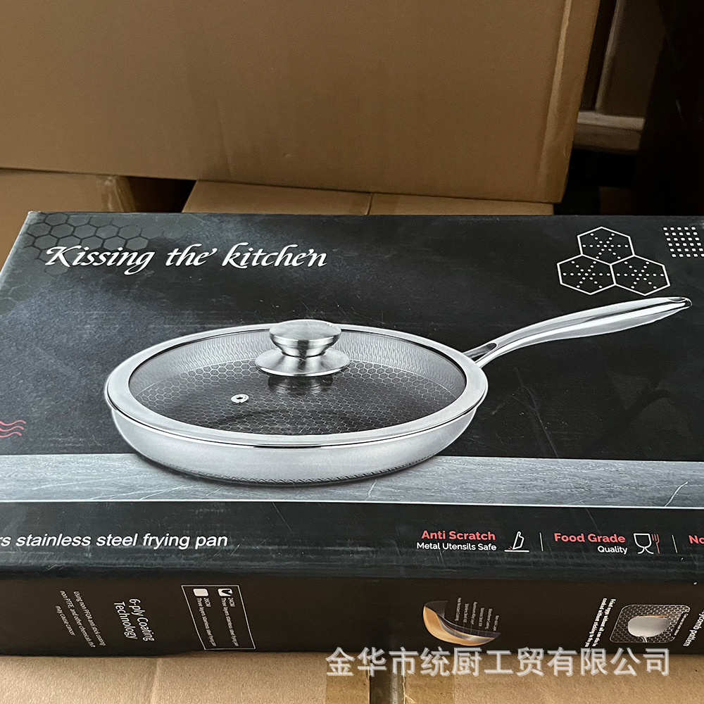 공장 직접 공급 도매 316 3층 스테인레스 스틸 팬 벌집 붙지 않는 팬 가정용 스테이크 프라이팬 상자당