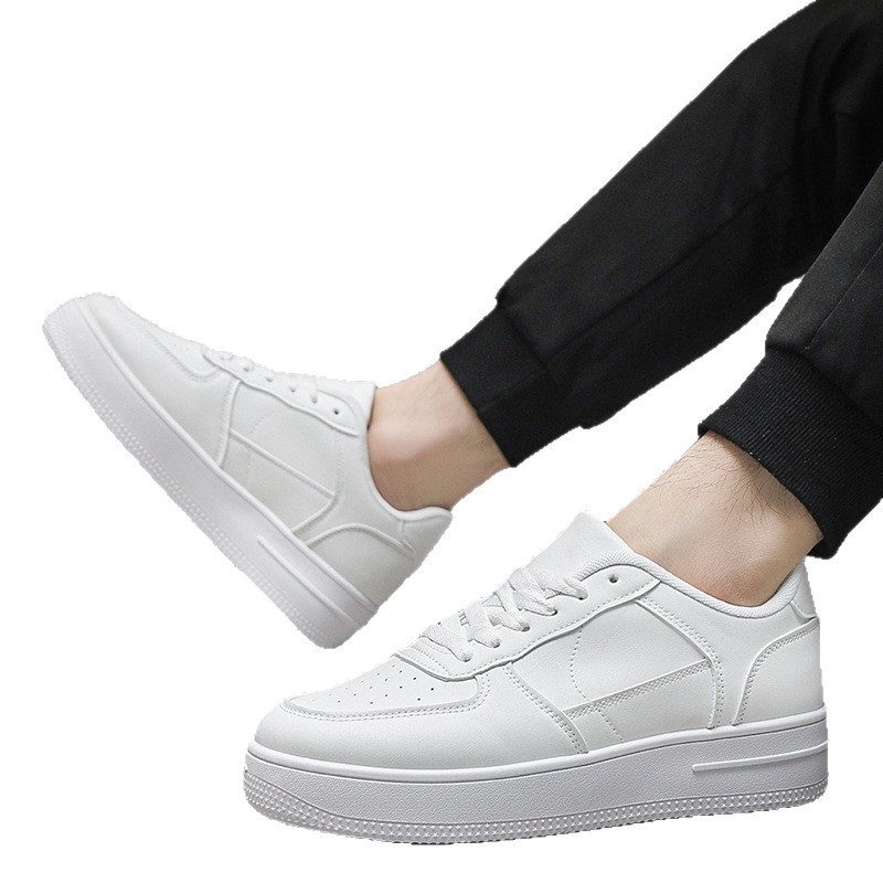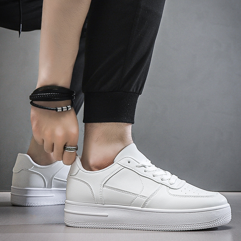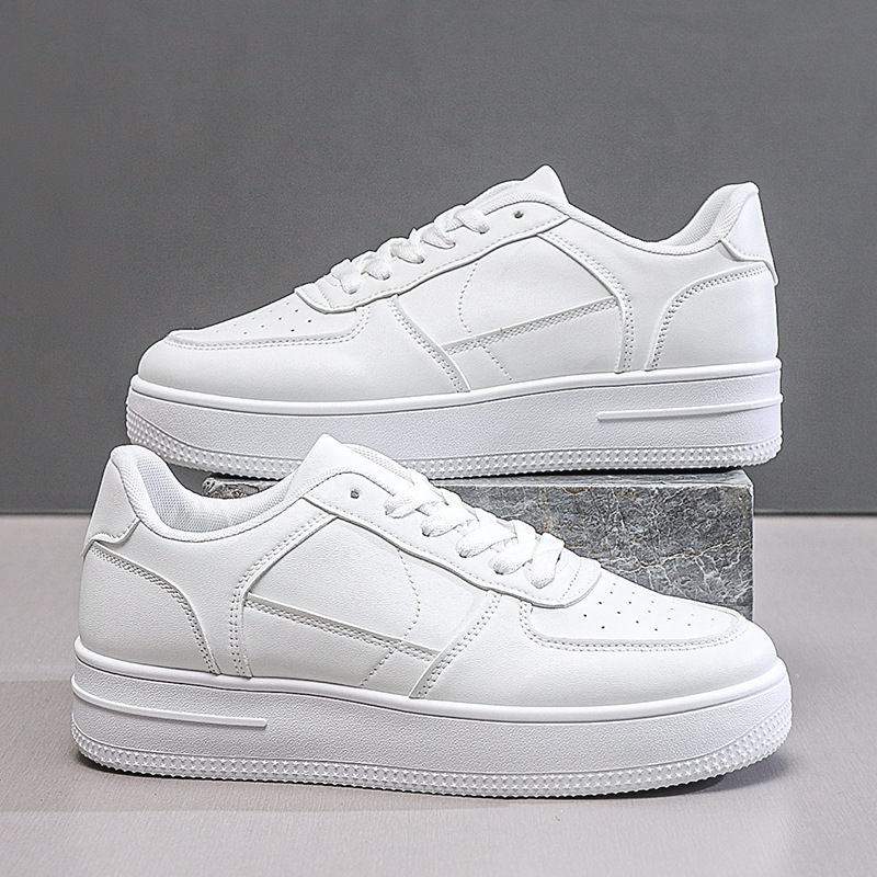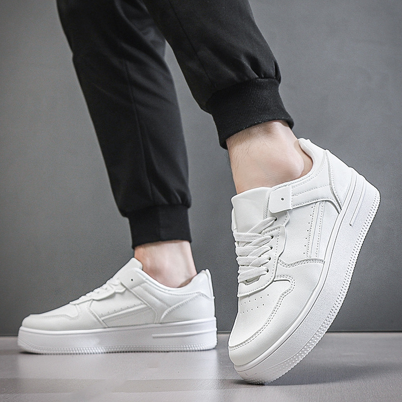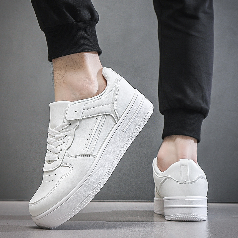 남성용 여름 통기성 흰색 신발, 트렌디하고 다재다능한 두꺼운 밑창 운동화, 캐주얼 신발, 검정색 미끄럼 방지 내마모성 운동화