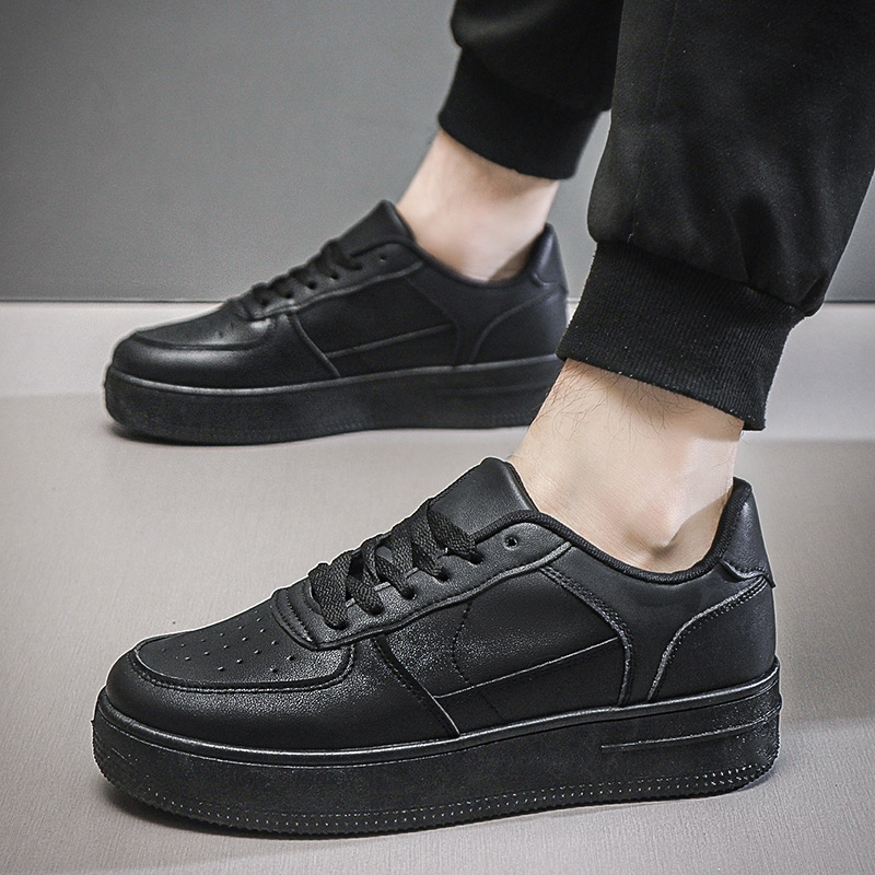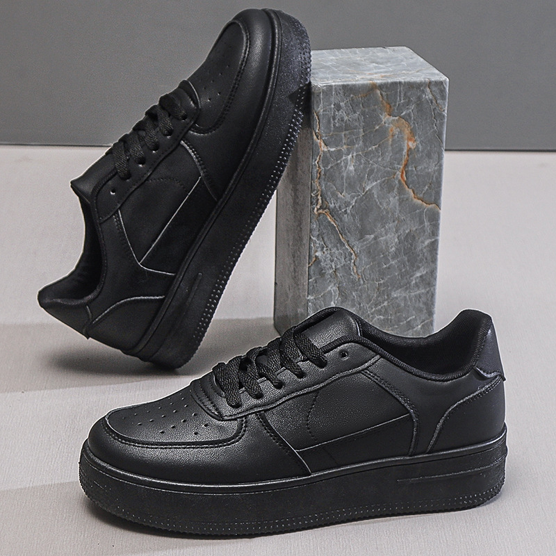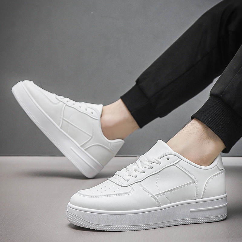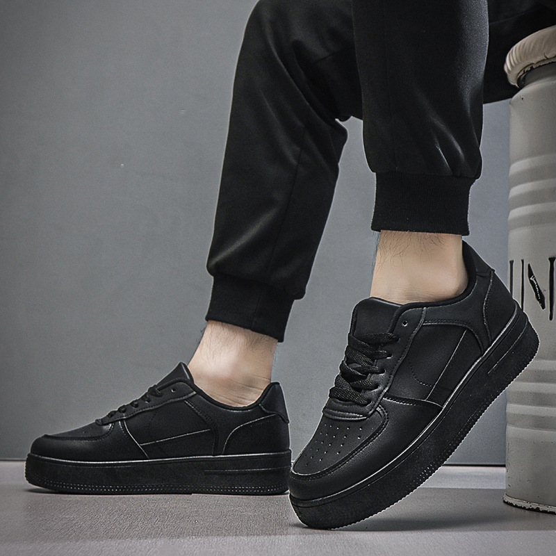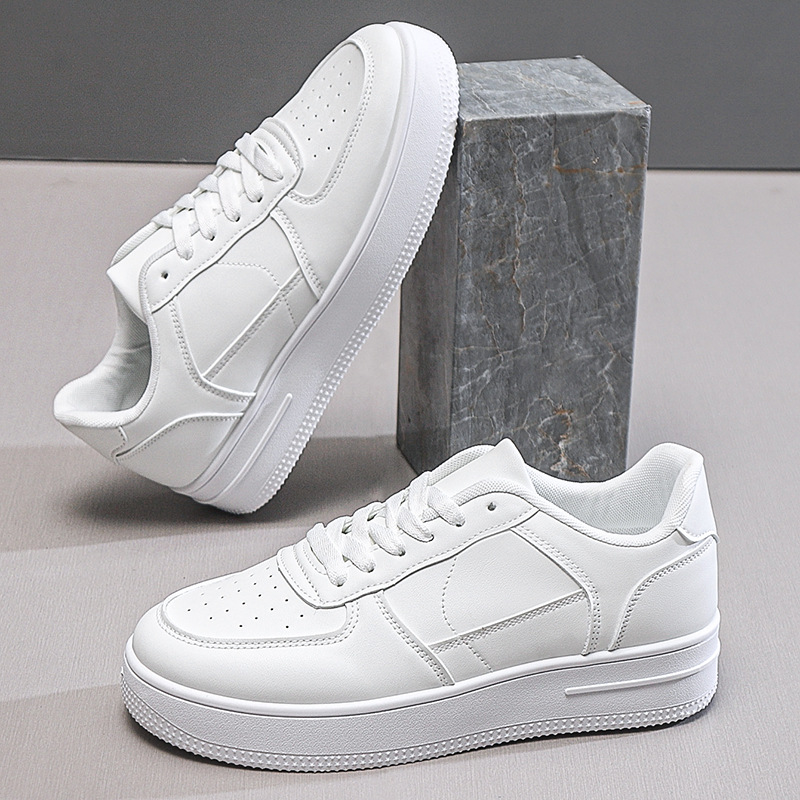 남성용 여름 통기성 흰색 신발, 트렌디하고 다재다능한 두꺼운 밑창 운동화, 캐주얼 신발, 검정색 미끄럼 방지 내마모성 운동화