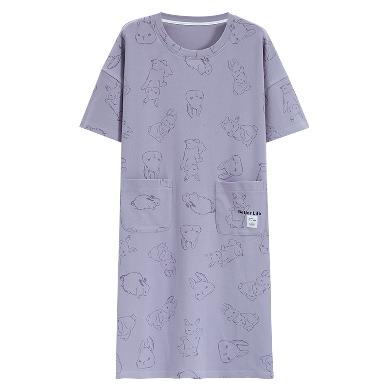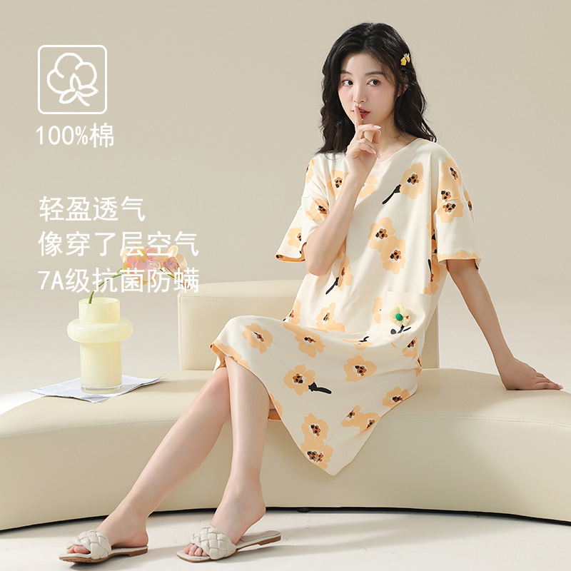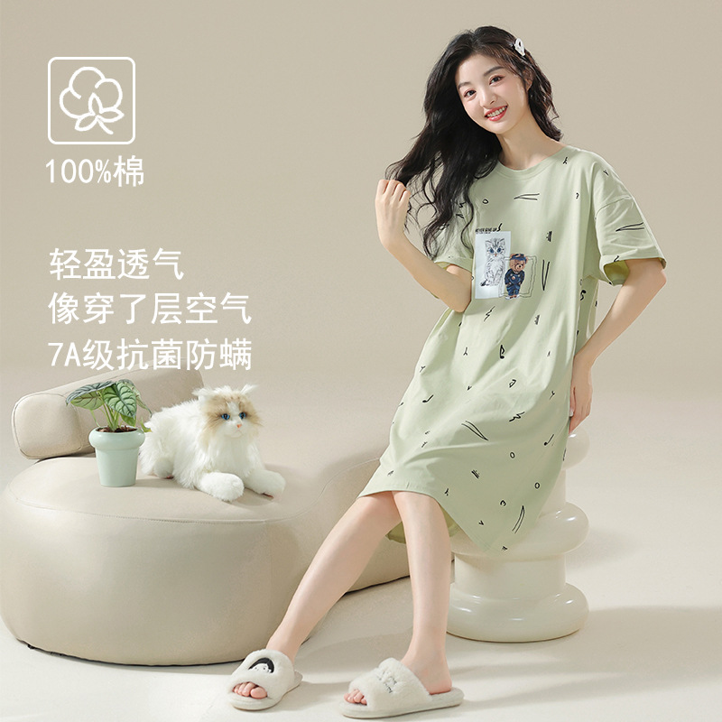 클래스 A 항균 면 잠옷 여성 여름 반팔 드레스 여성 만화 플러스 사이즈 여학생 잠옷을 구입하러 가세요