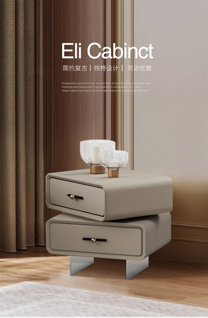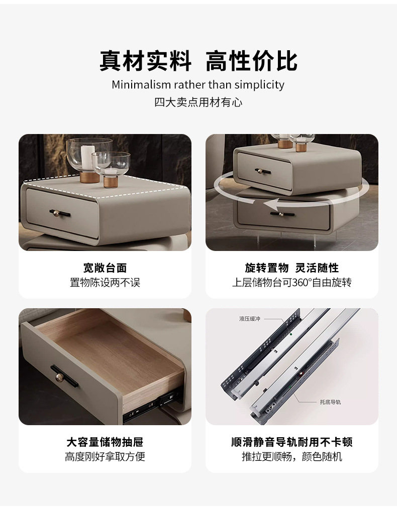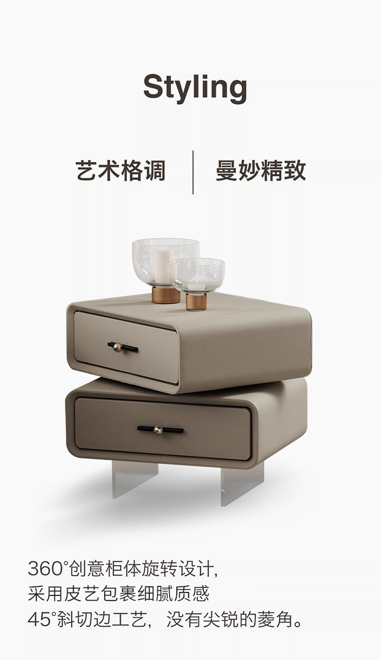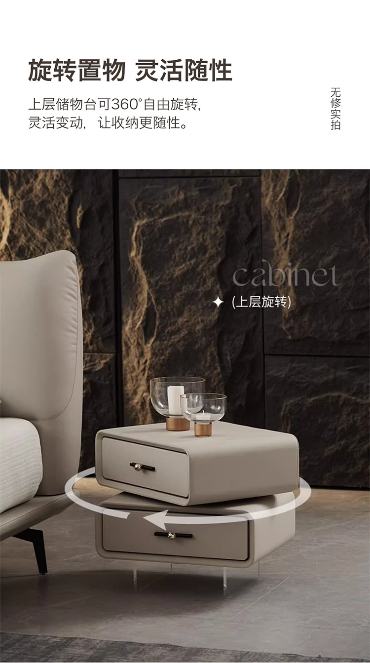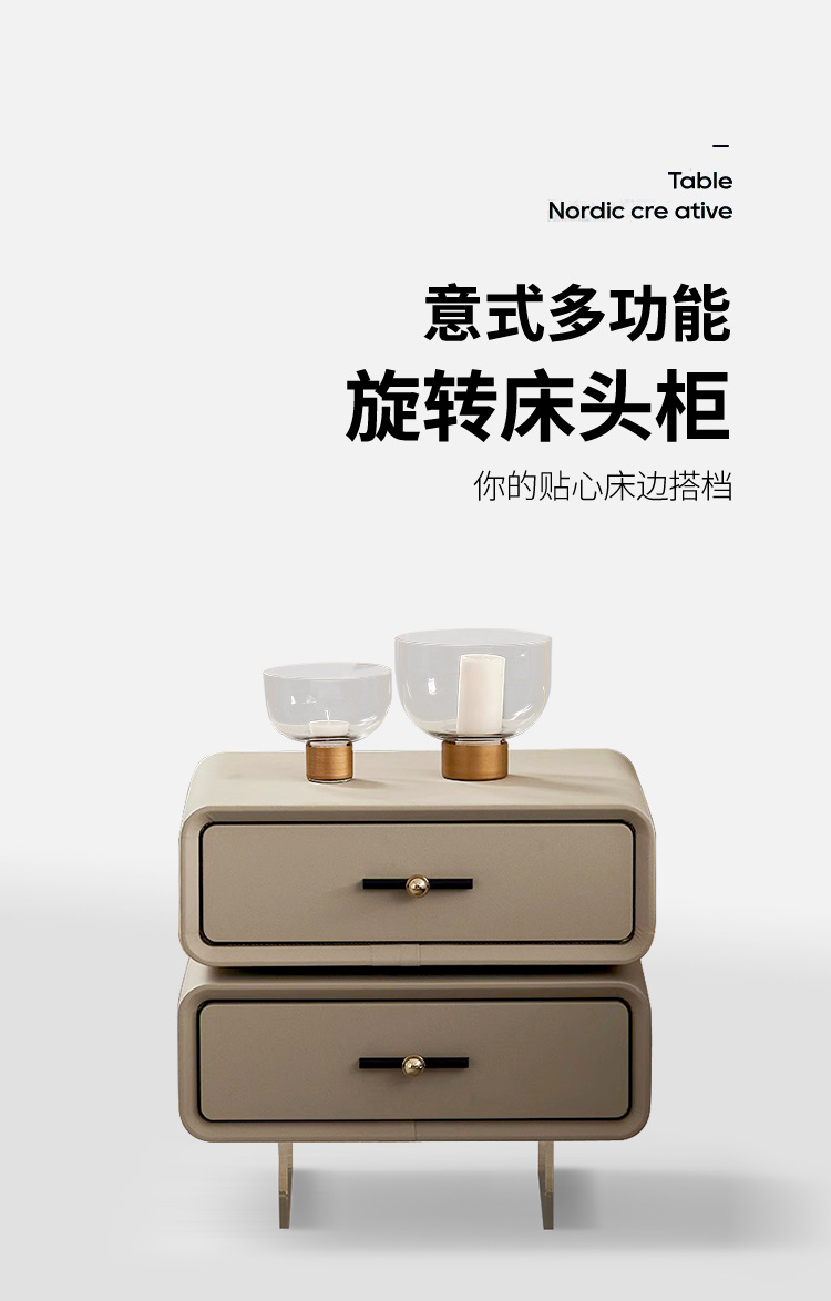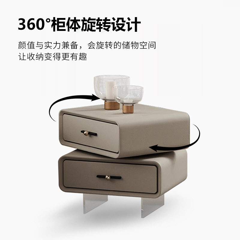 이탈리안 미니멀리스트 회전 침대 옆 테이블, 고급 수납 캐비닛, 현대적이고 심플한 마스터 침실 라이트 럭셔리 침대 옆 캐비닛