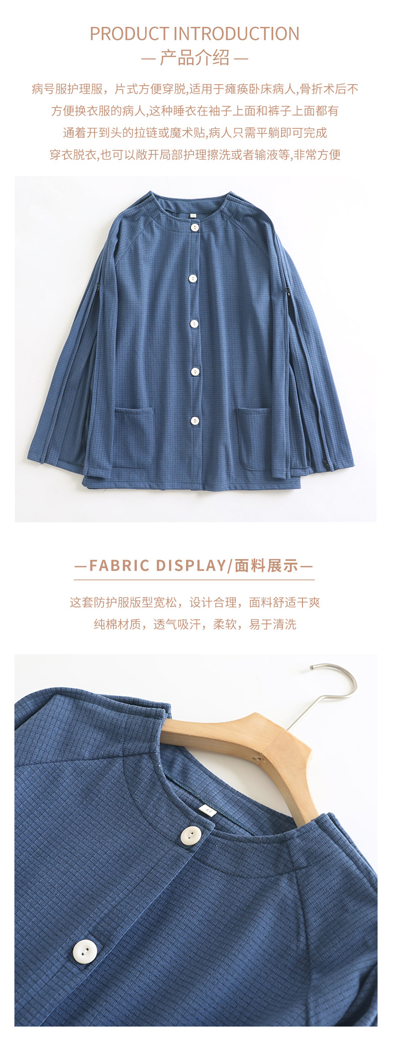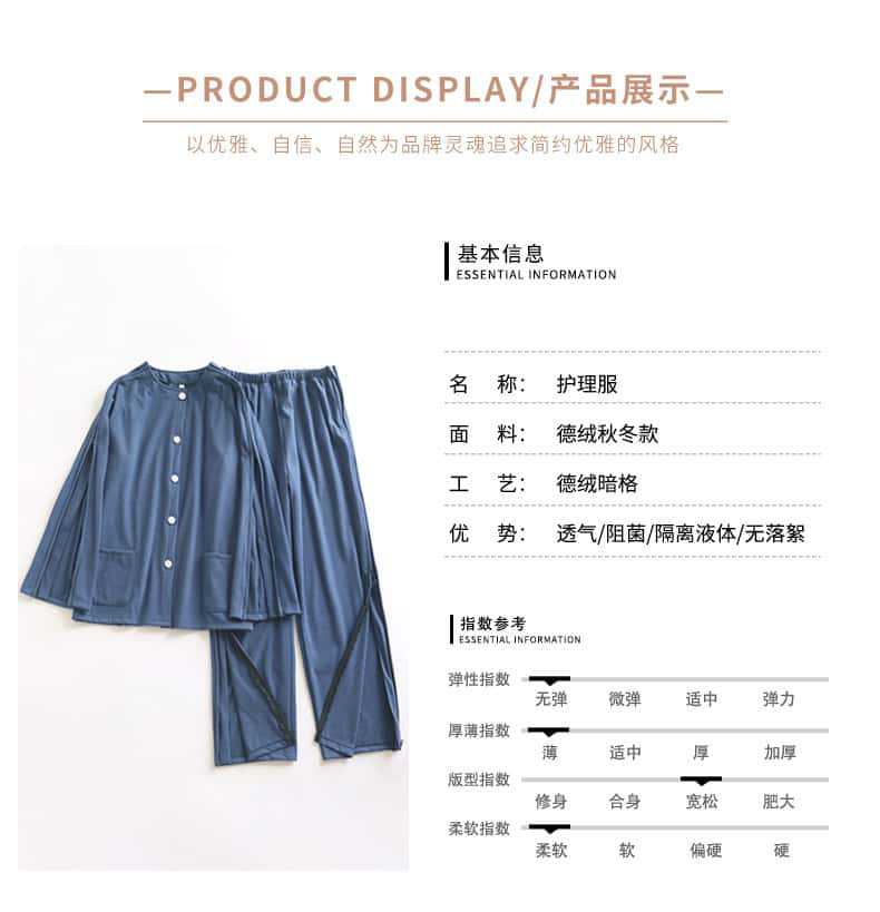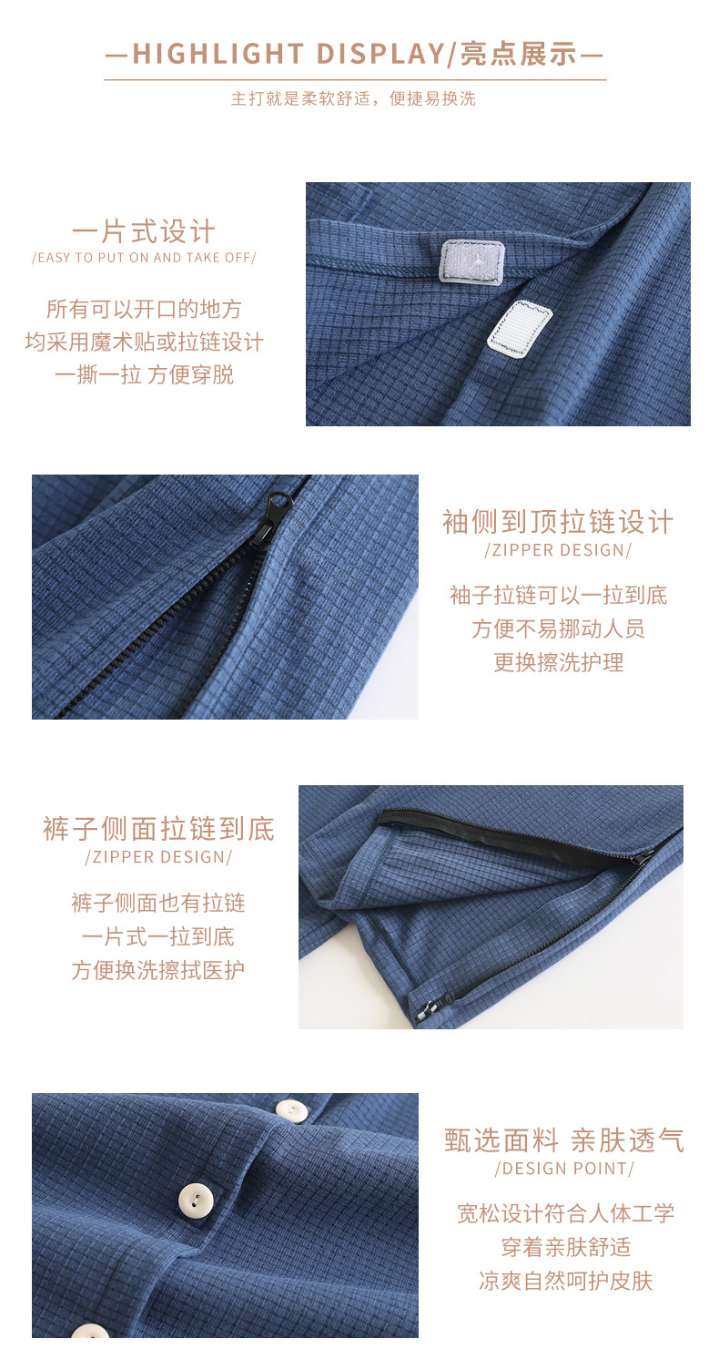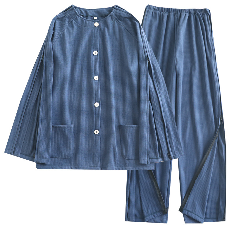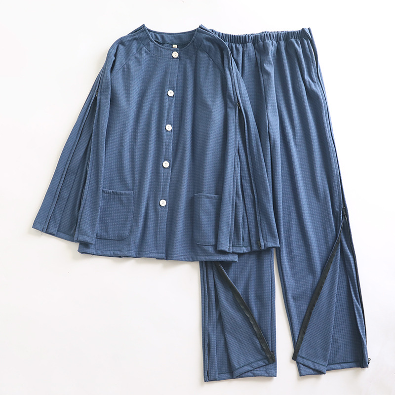 가을 겨울 남성용 원피스 간호복, 독일산 벨벳, 입고 벗기 쉬움, 병상에 누워 있는 노인용 병원 가운, 잠옷, 가정복, 지퍼