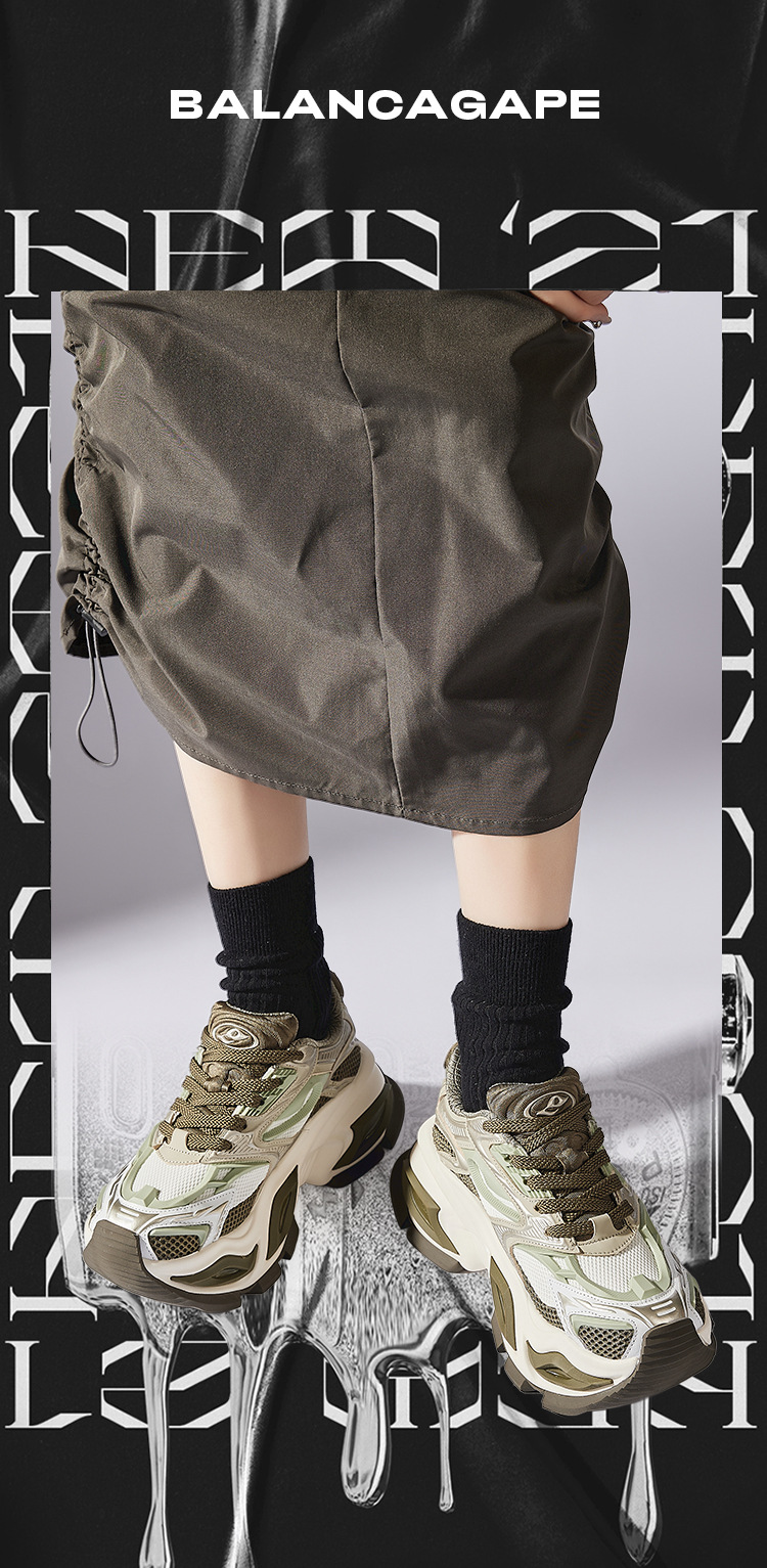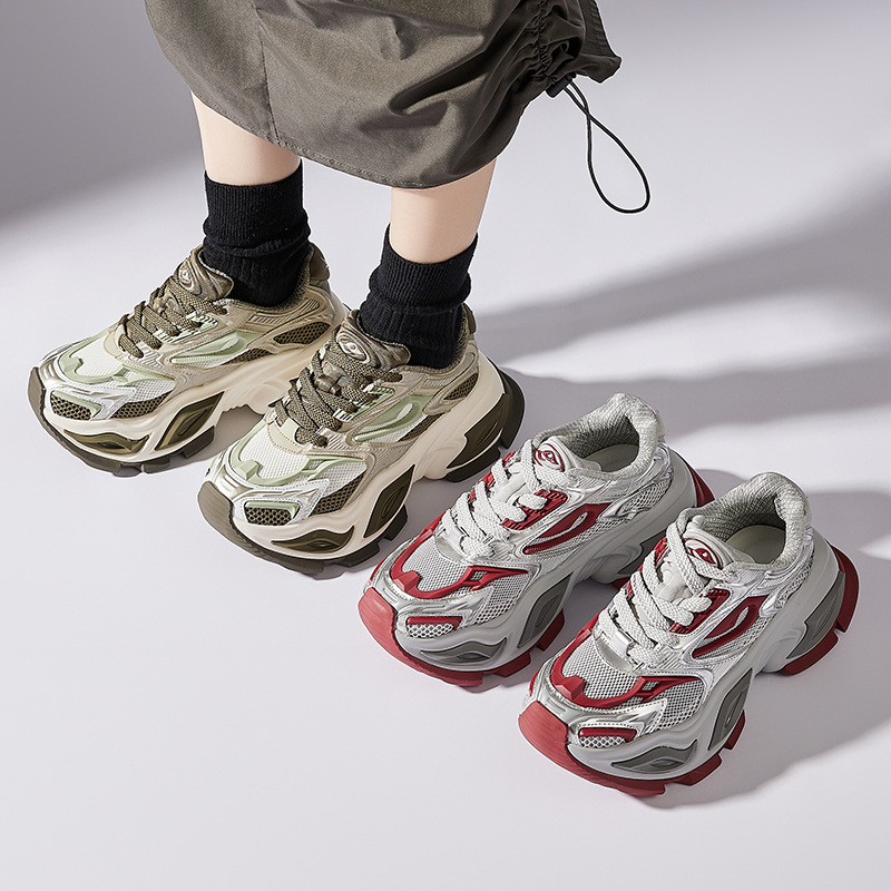 캣아이 아빠 신발 커플 모델 2025 봄 두꺼운 밑창 캐주얼 운동화 메쉬 통기성 강화 국가 트렌드 남성 및 여성 신발