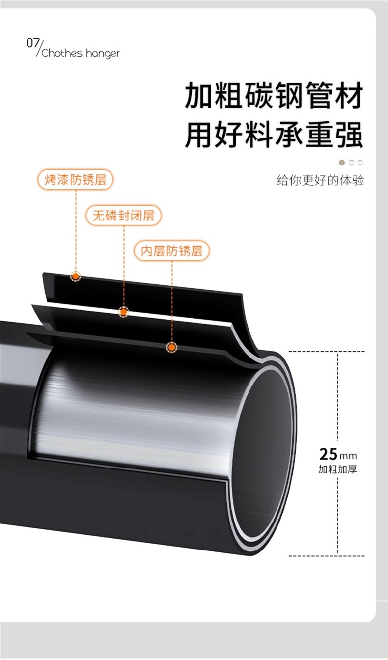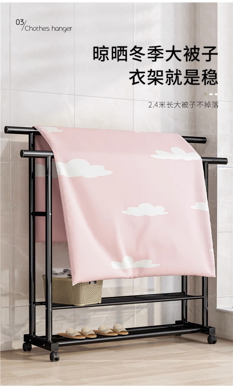1.5m 검정색 25 튜브 이중층 이중 극 두꺼운 도르래 이중 걸이 옷 내하중 100kg