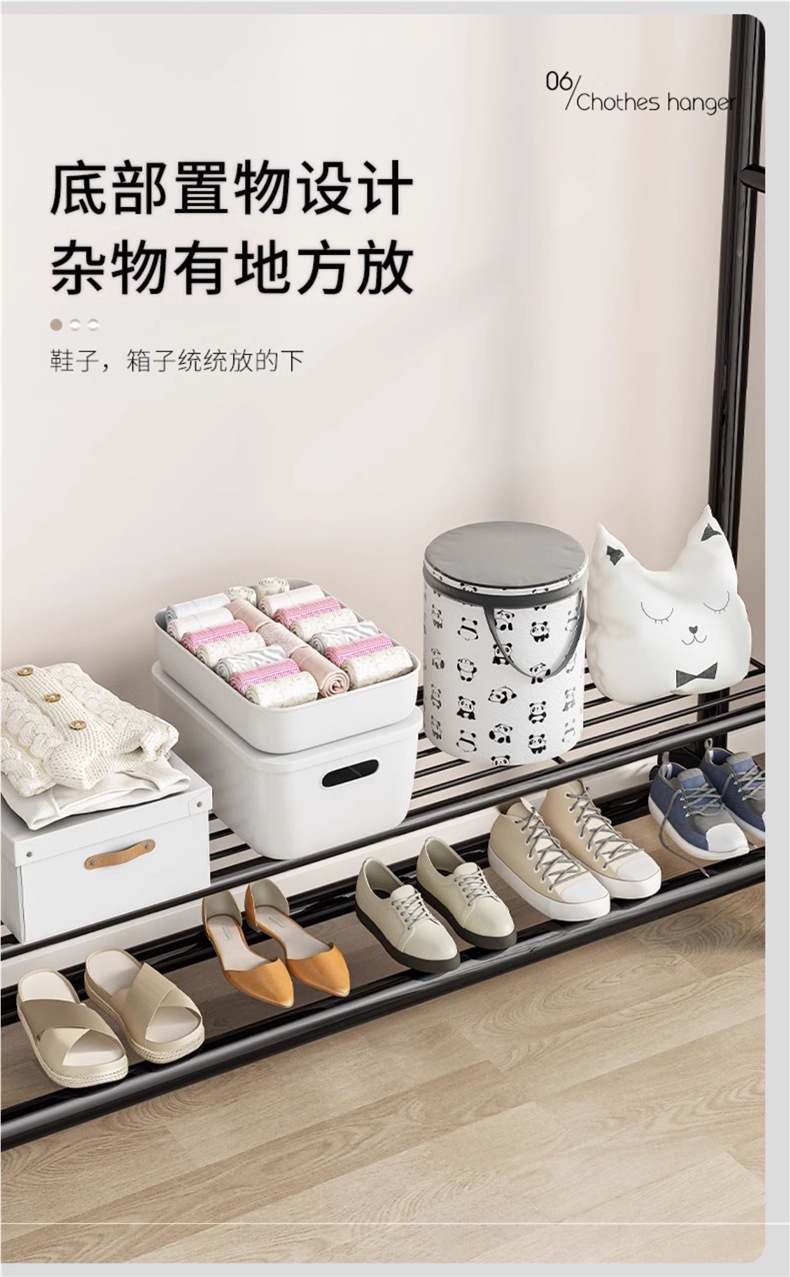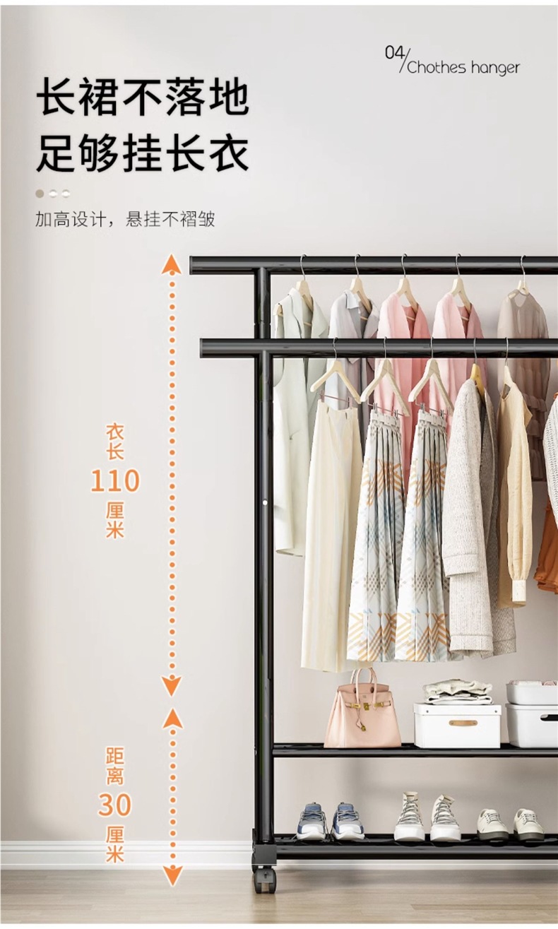 가정용 침실용 바닥형 옷걸이, 두껍고 두꺼운 옷걸이, 접이식 간이 실내 기숙사 이동식 옷걸이