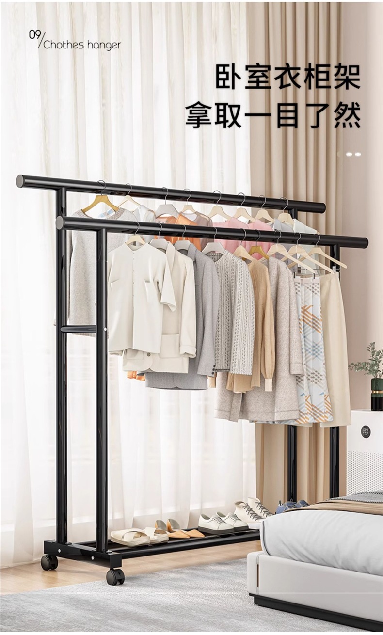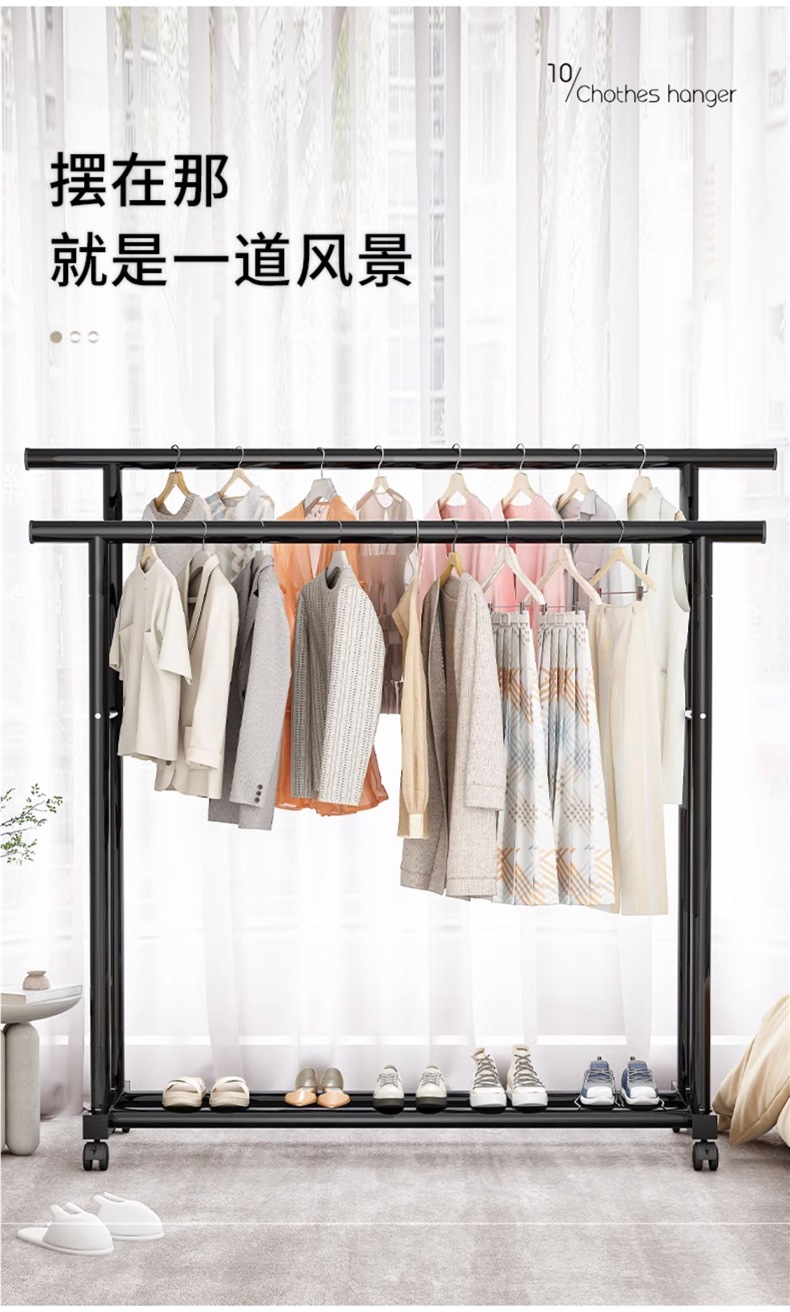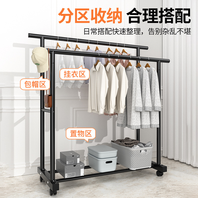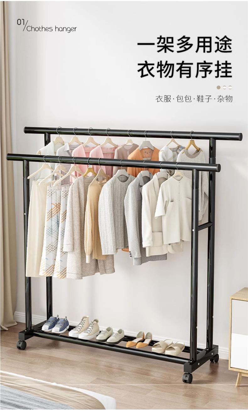 1m 검정색 25튜브 이중 극 두꺼운 도르래 이중 걸이 옷 내하중 90kg