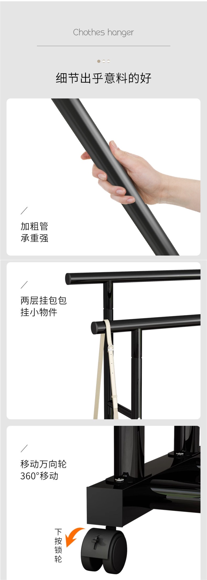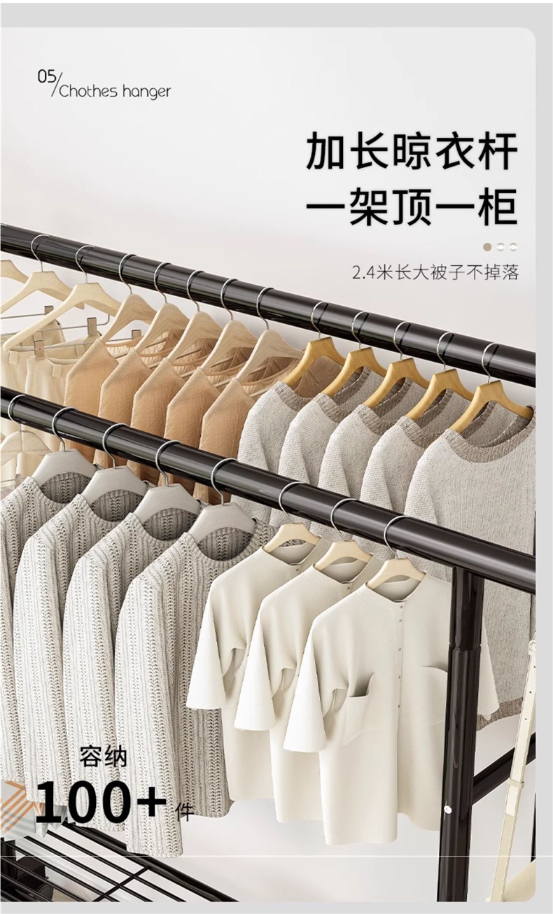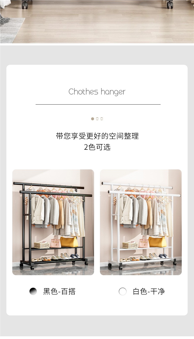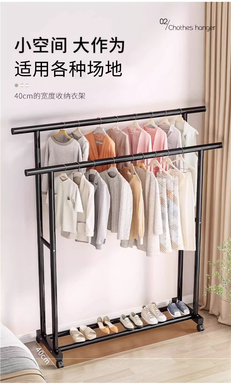 1m 검정색 25튜브 이중 극 두꺼운 도르래 이중 걸이 옷 내하중 90kg