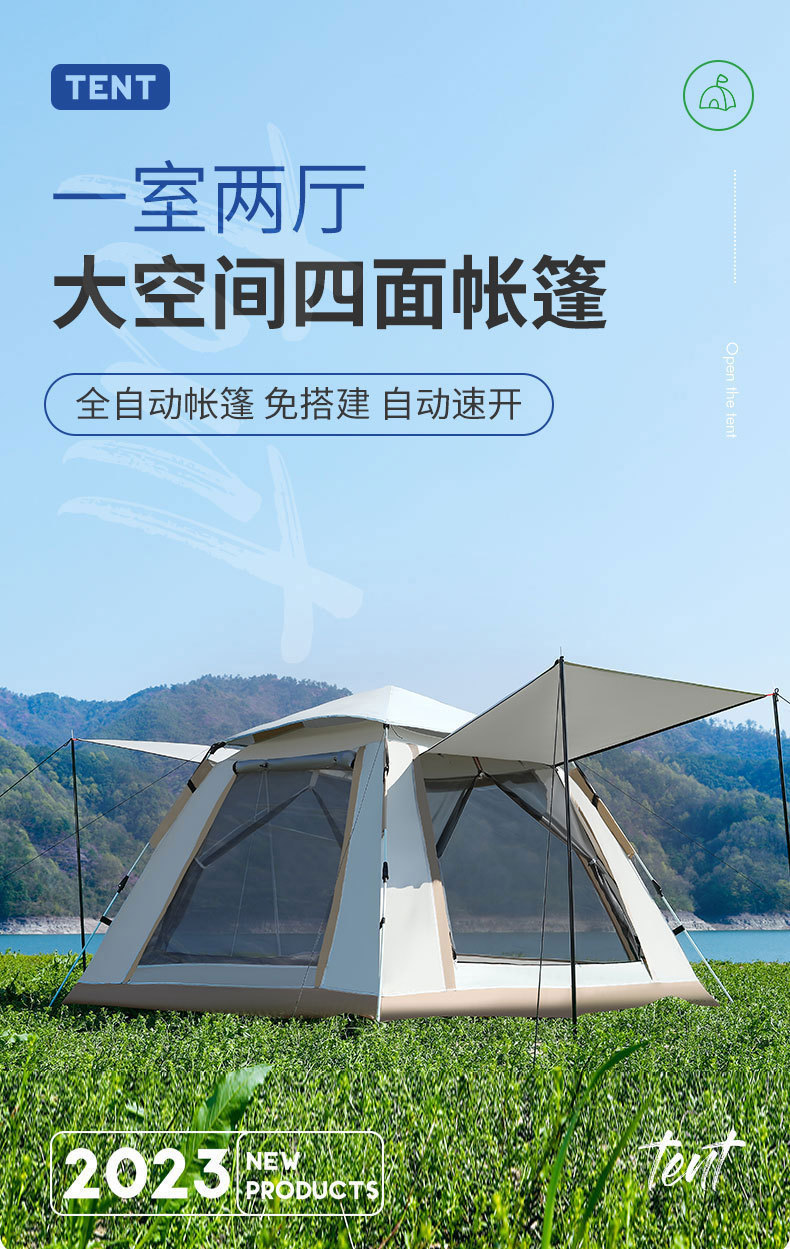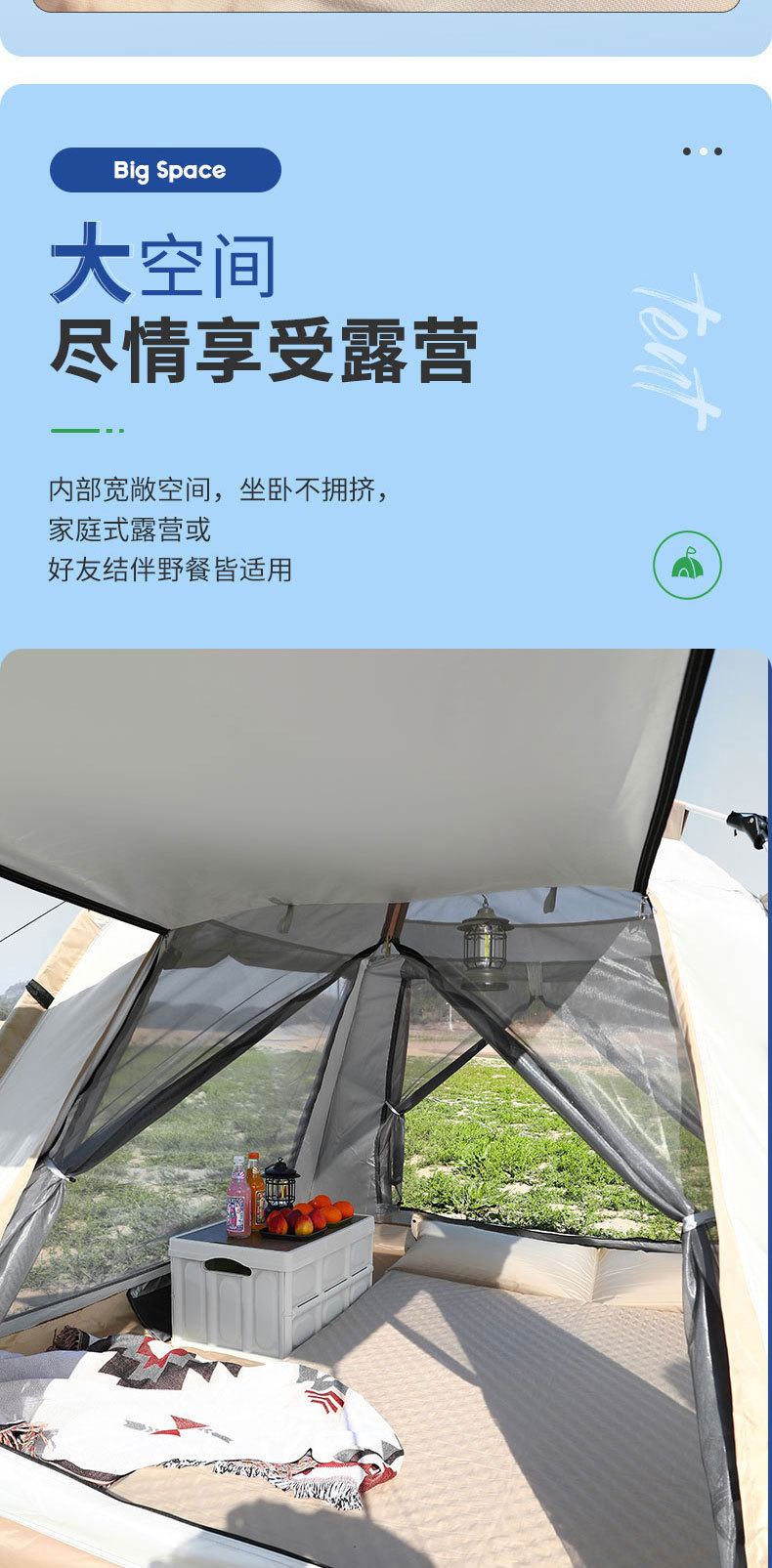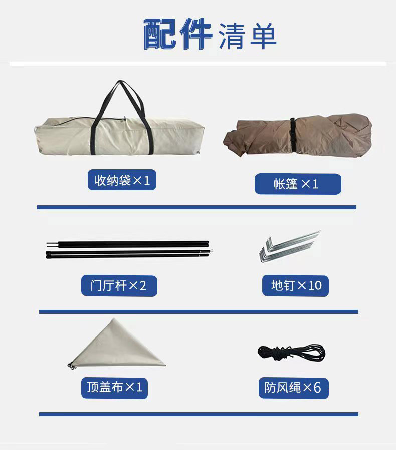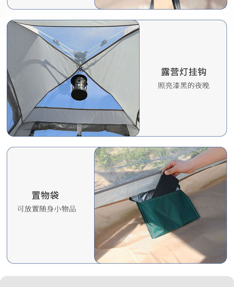 4면 텐트 + 방습 매트 + 공기주입식 베개*3 + 캠핑 조명