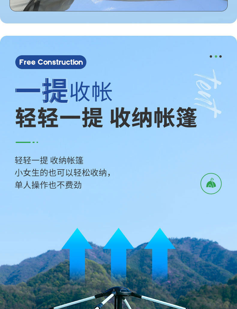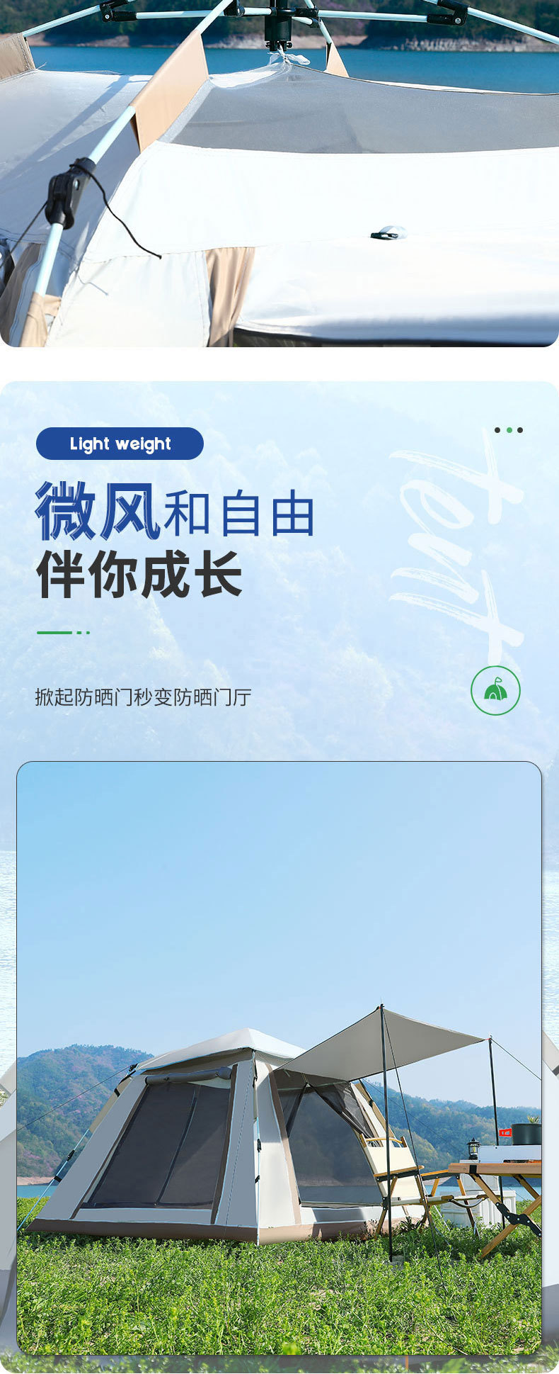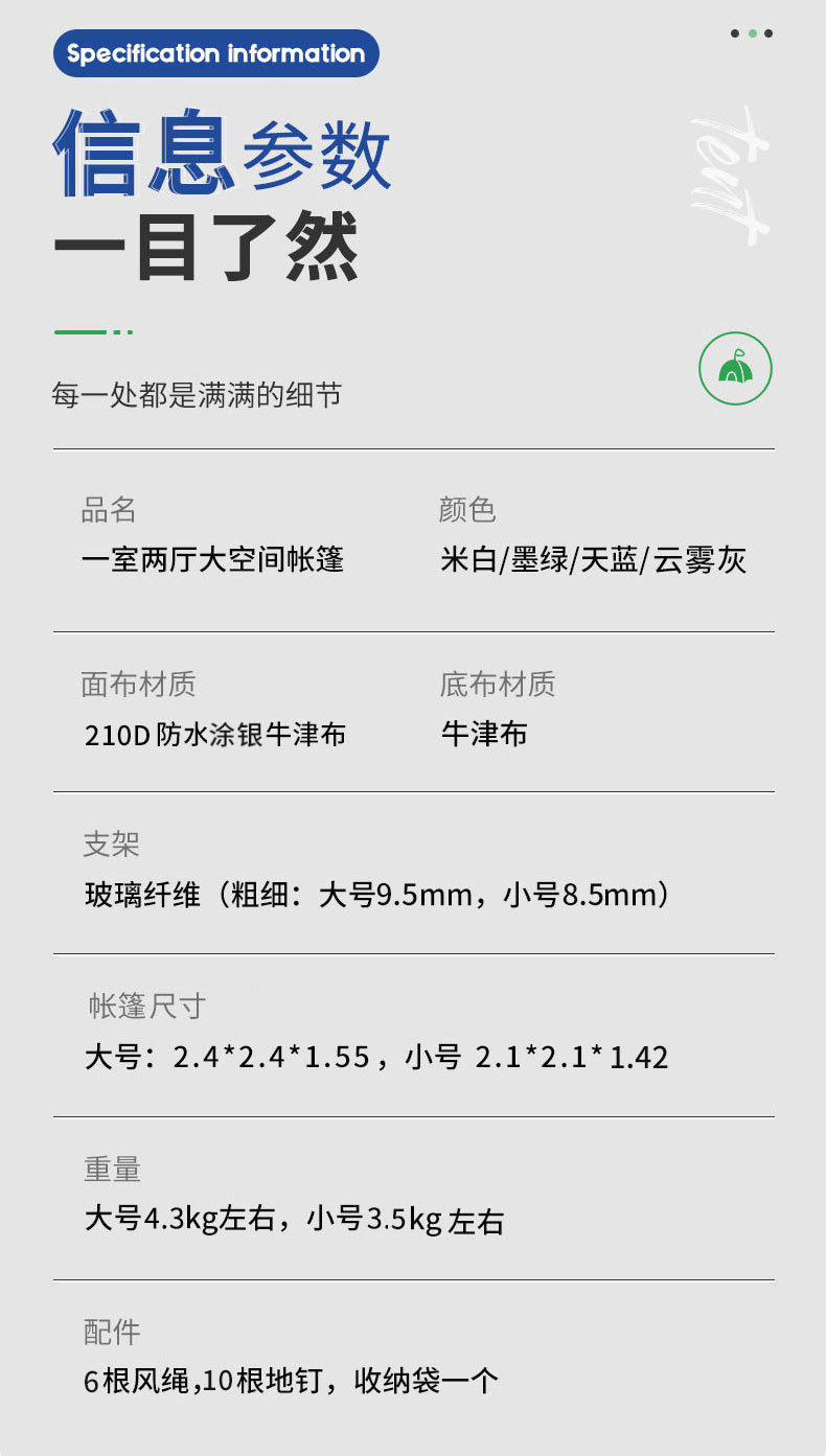 4면 텐트 + 방습 매트 + 공기주입식 베개*3 + 캠핑 조명