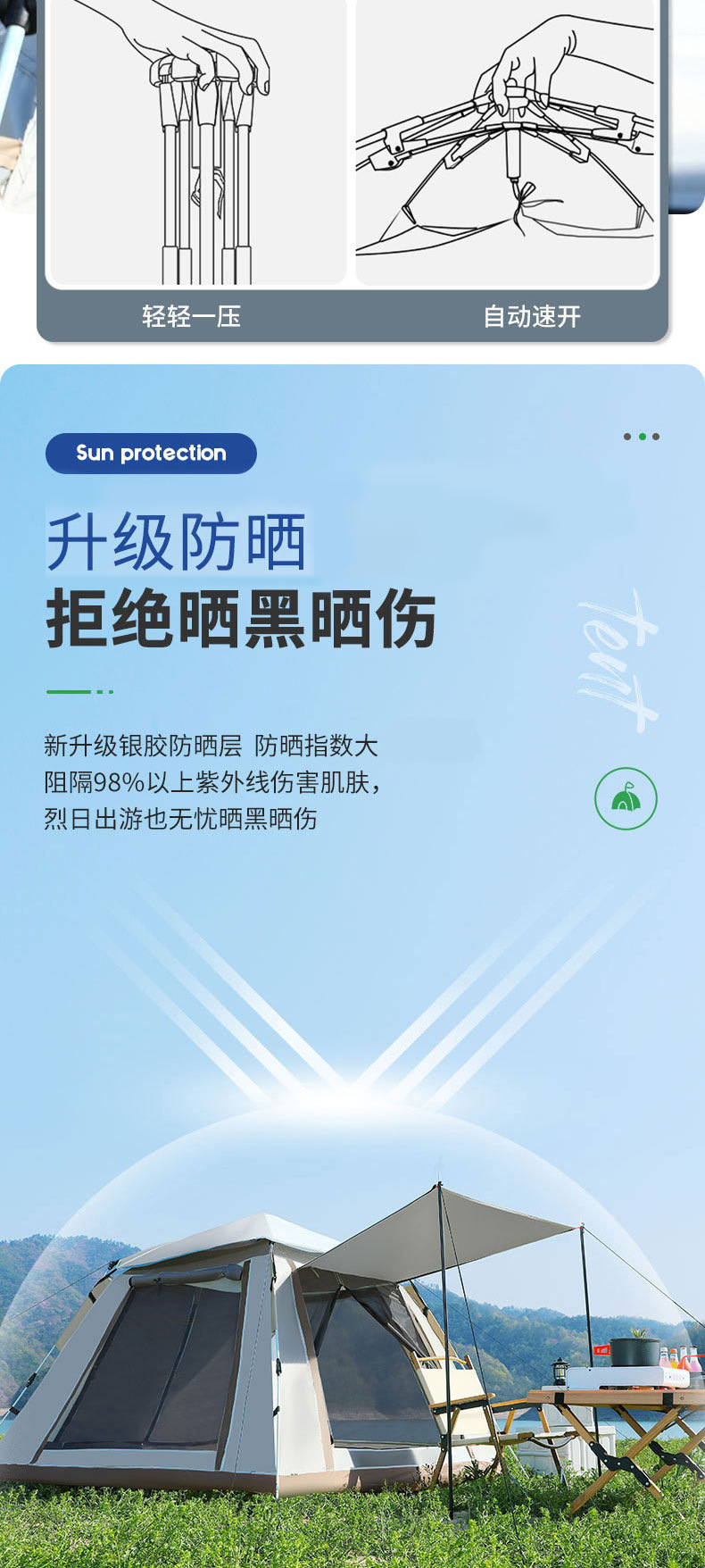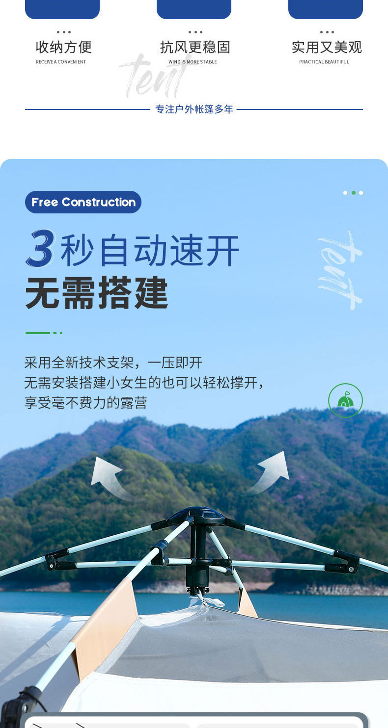 텐트 캐노피 캠핑 3-4인용 접이식 휴대용 완전 자동 빠른 개방형 차양 및 방수 공원 캠핑 야외 텐트