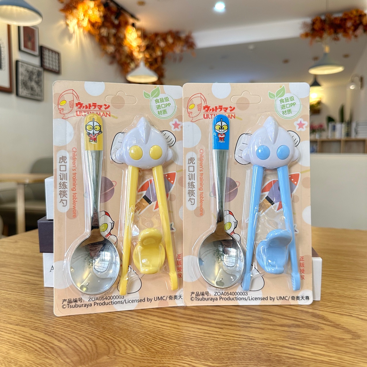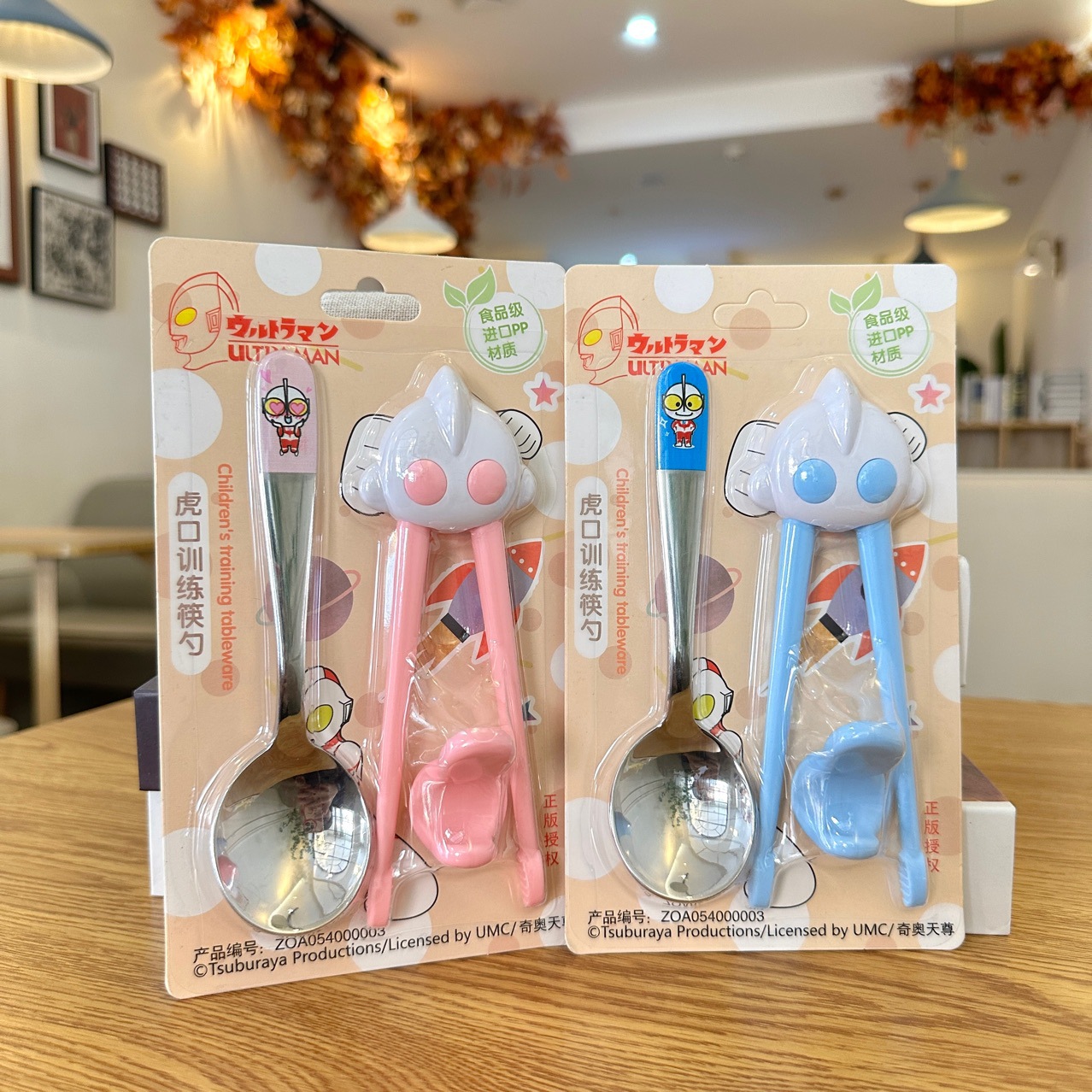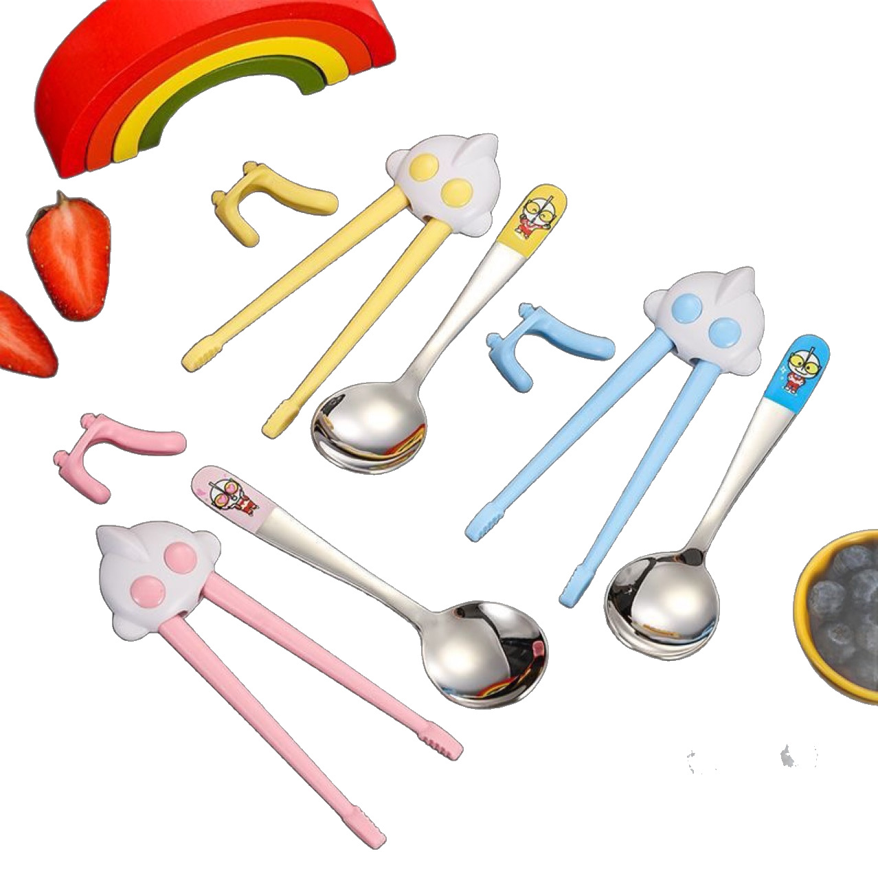 스테인레스 스틸 식기 304 아기 숟가락 훈련 젓가락 인기 도매 어린이 식기 세트 생일 선물