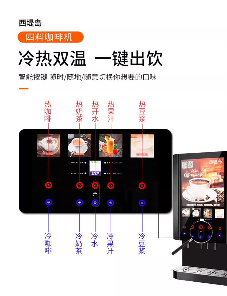 West Island 인스턴트 커피 머신 상업용 자동 주스 밀크티 올인원 머신 셀프 서비스 레스토랑 냉온 음료 머신 두유