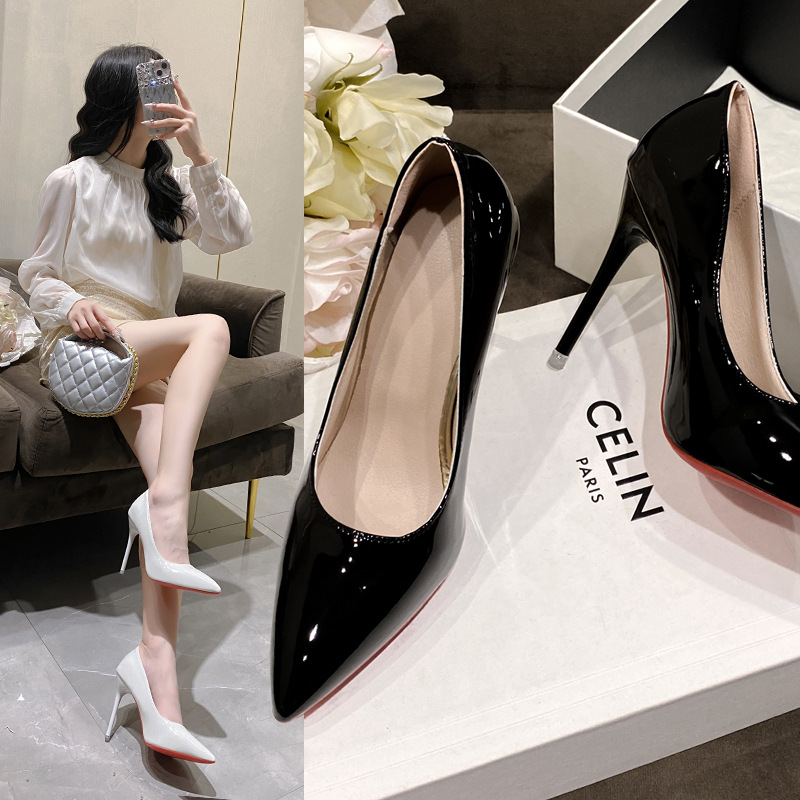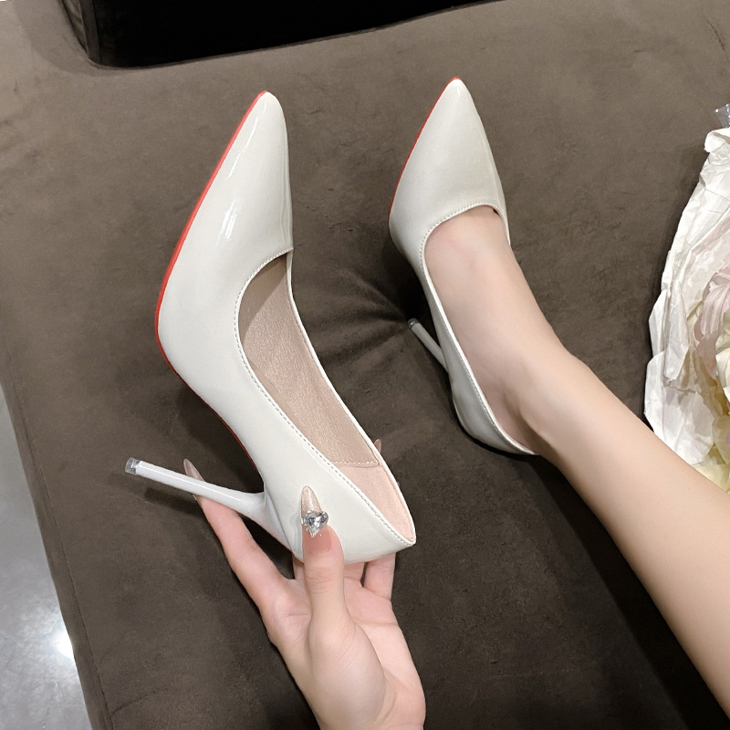 여성용 누드 하이힐, 새로운 스타일, 작은 향기, 뾰족한 발가락, 키가 큰 플랫 슈즈, 페이턴트 가죽 작업화