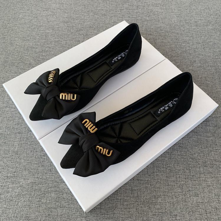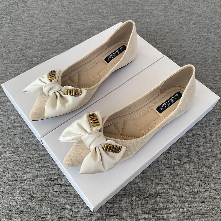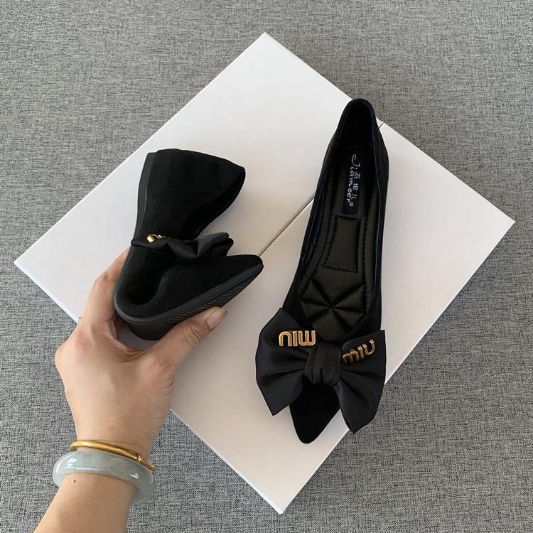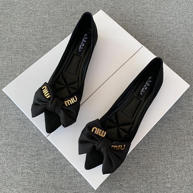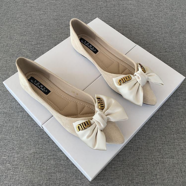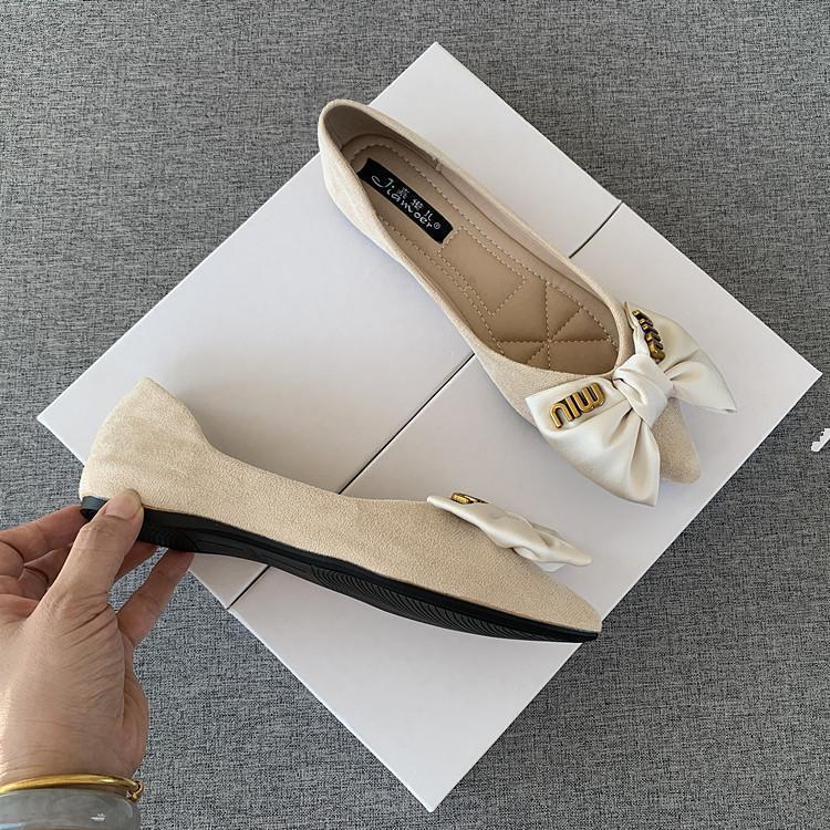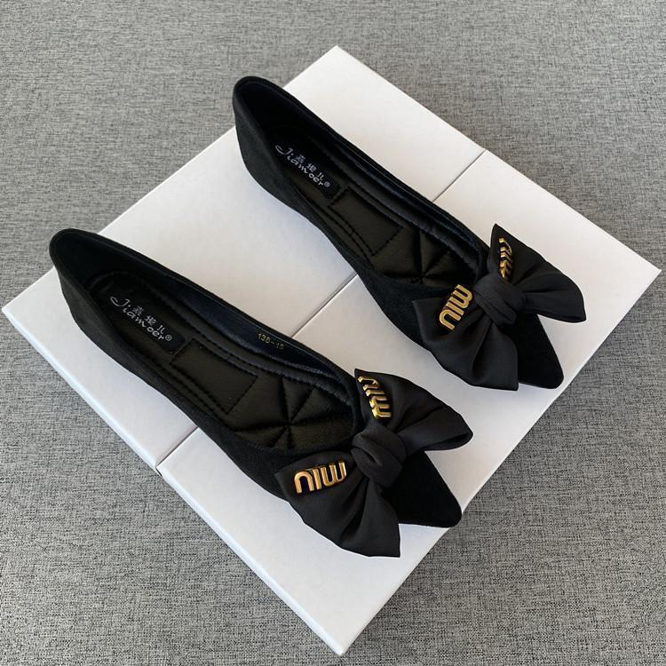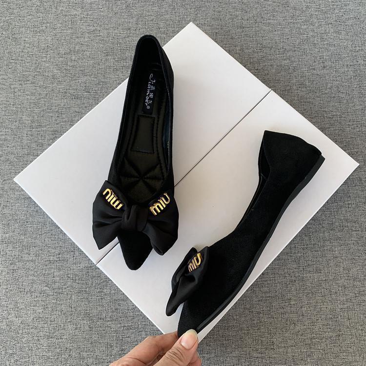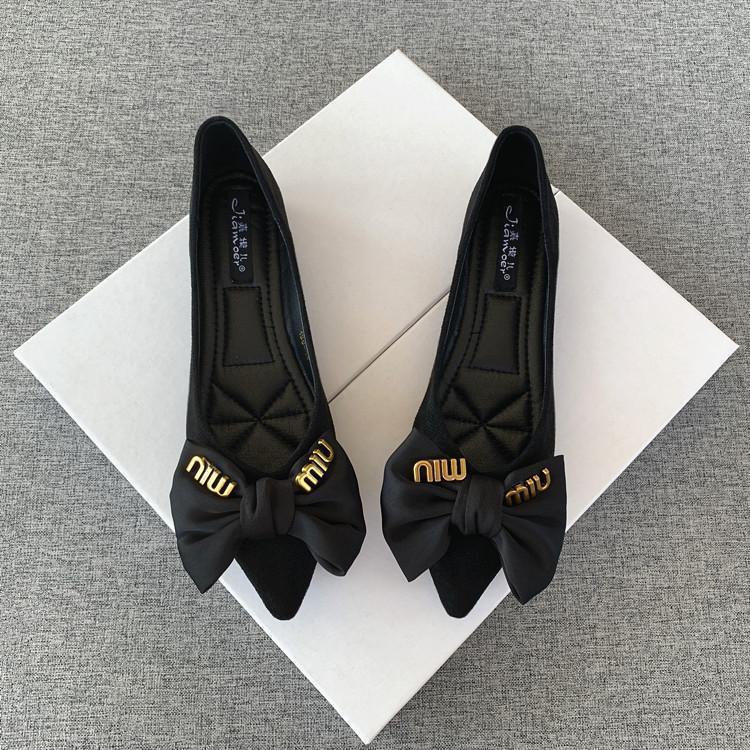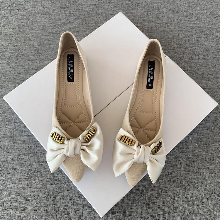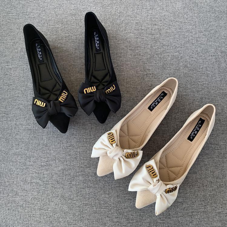 봄과 가을 새로운 스타일 뾰족한 마이크로 화이버 전문 여성 패션 신발 슬리브 플랫 신발 여성용 로우 힐 신발