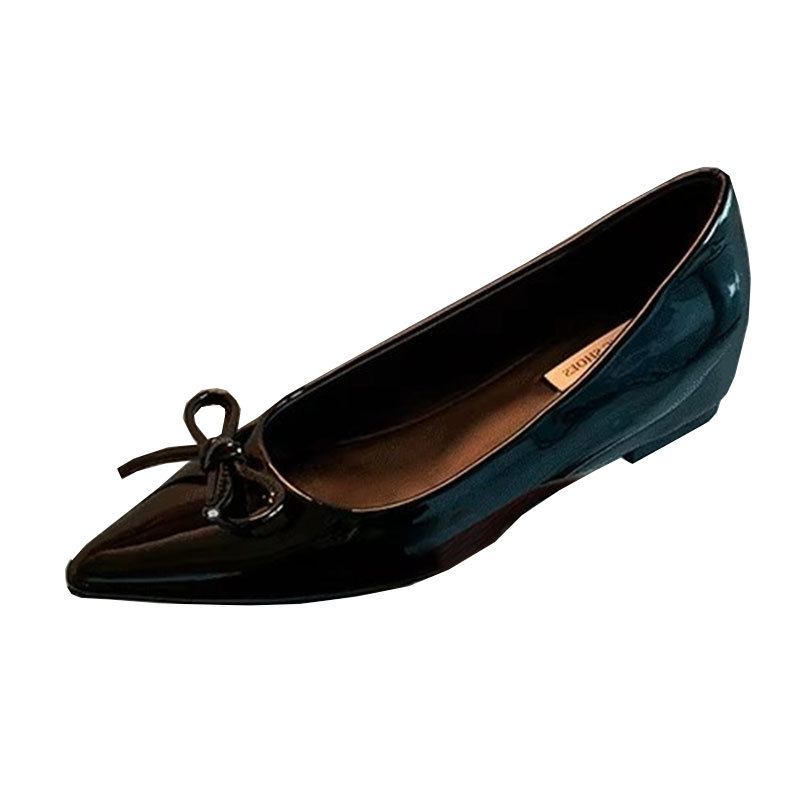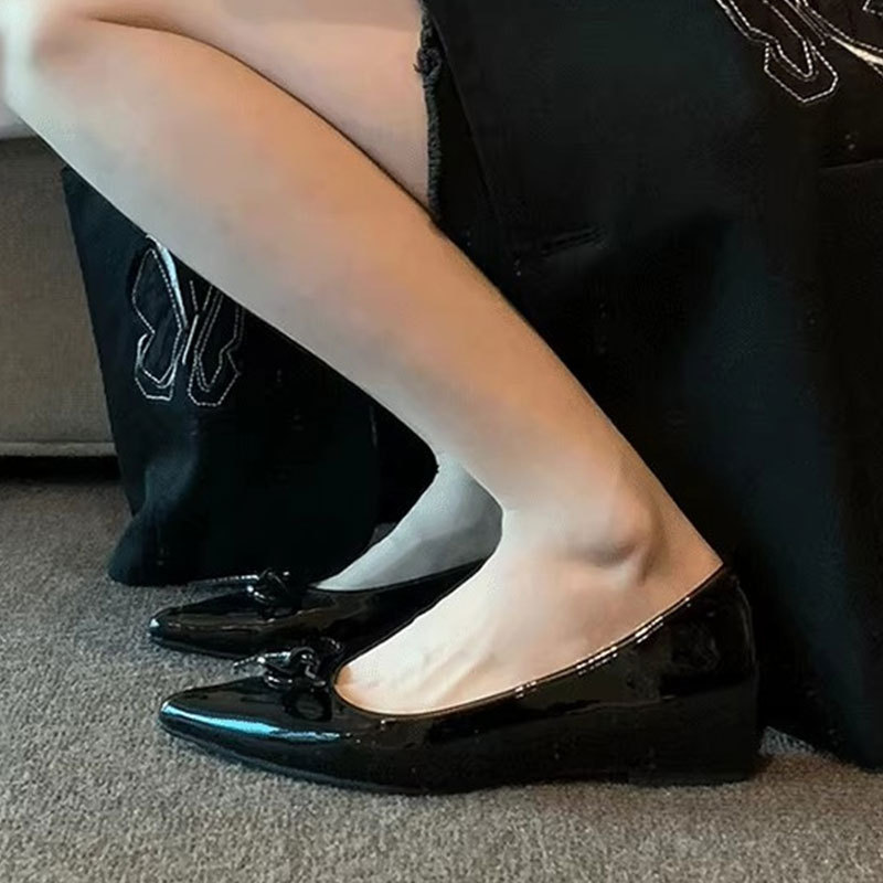 봄과 가을 누드 컬러 포인티드 토 보우 여성용 플랫 슈즈 2025 신상 펌프스 슈즈 젠틀 이브닝 슈즈