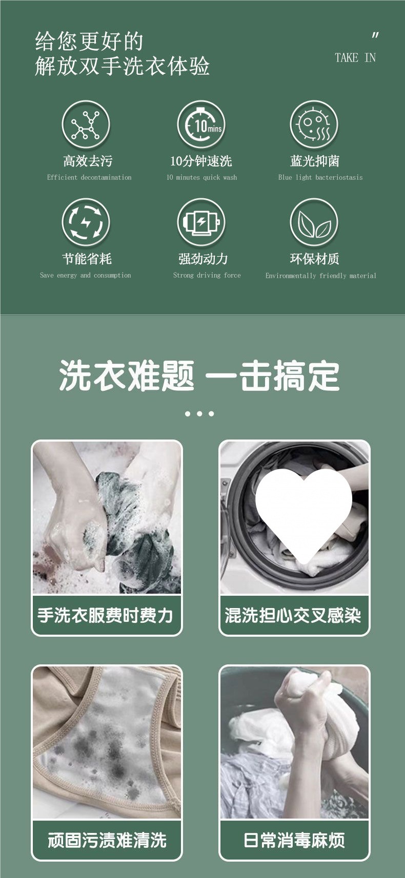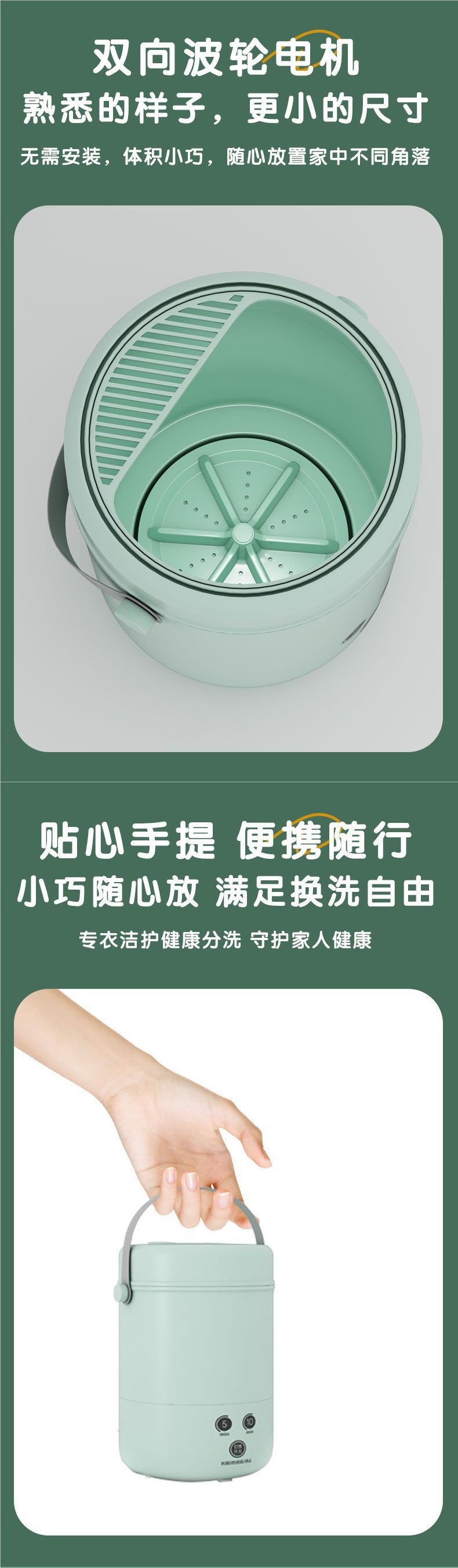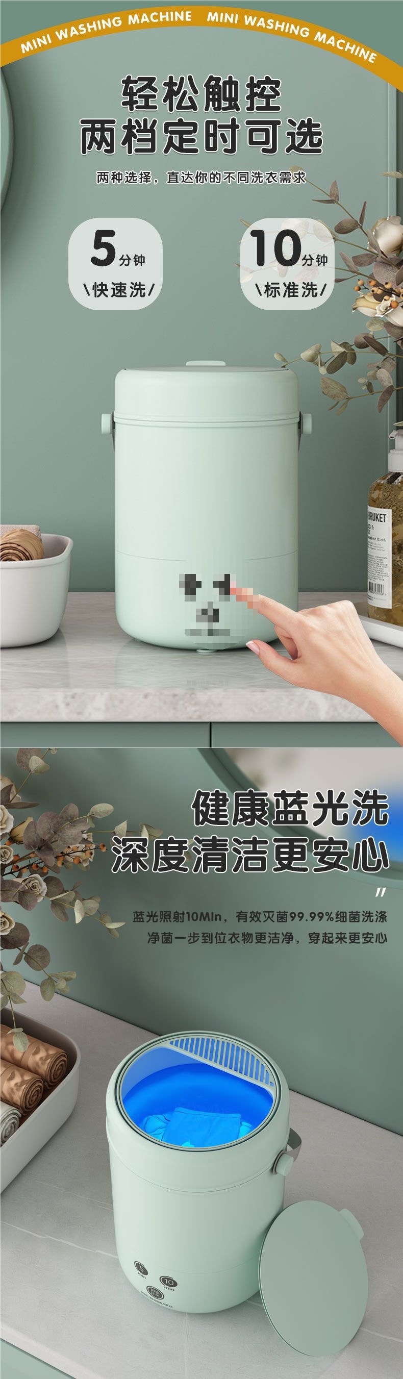 미니 소형 세탁기 블루 라이트 휴대용 엄마와 아기 속옷, 양말 및 속옷 세탁 소형 세탁기 고정 주파수