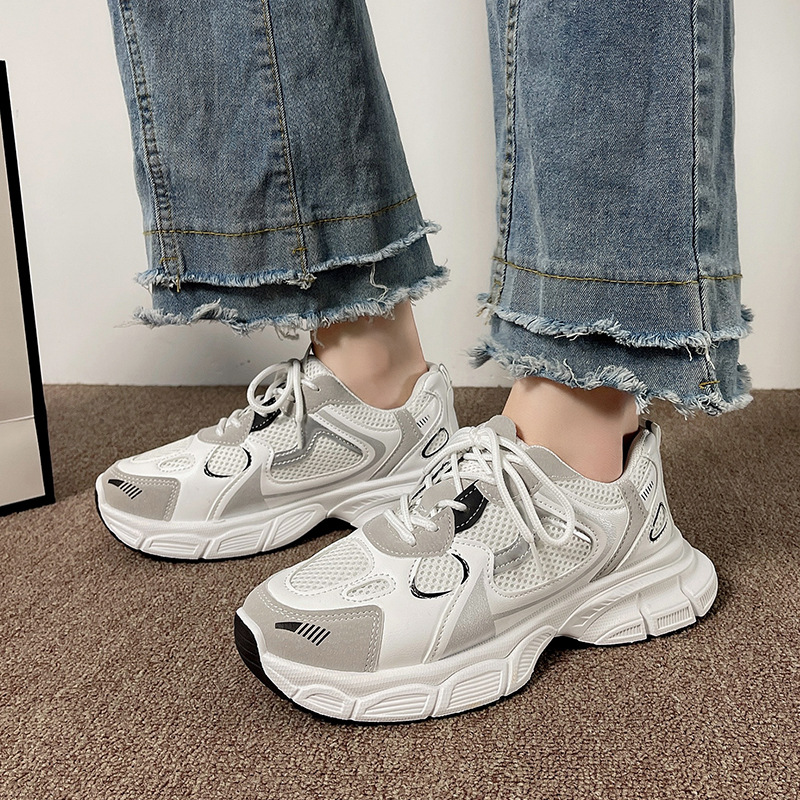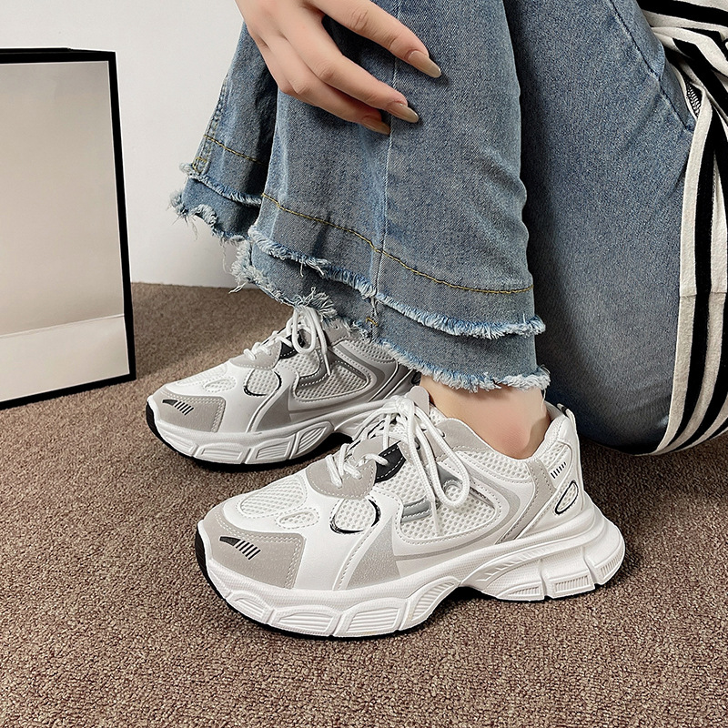 여성을위한 아빠 신발 2025 새로운 봄 통기성 메쉬 스포츠 신발 여성을위한 한국어 버전 여성을위한 다목적 두꺼운 밑창 캐주얼 운동화