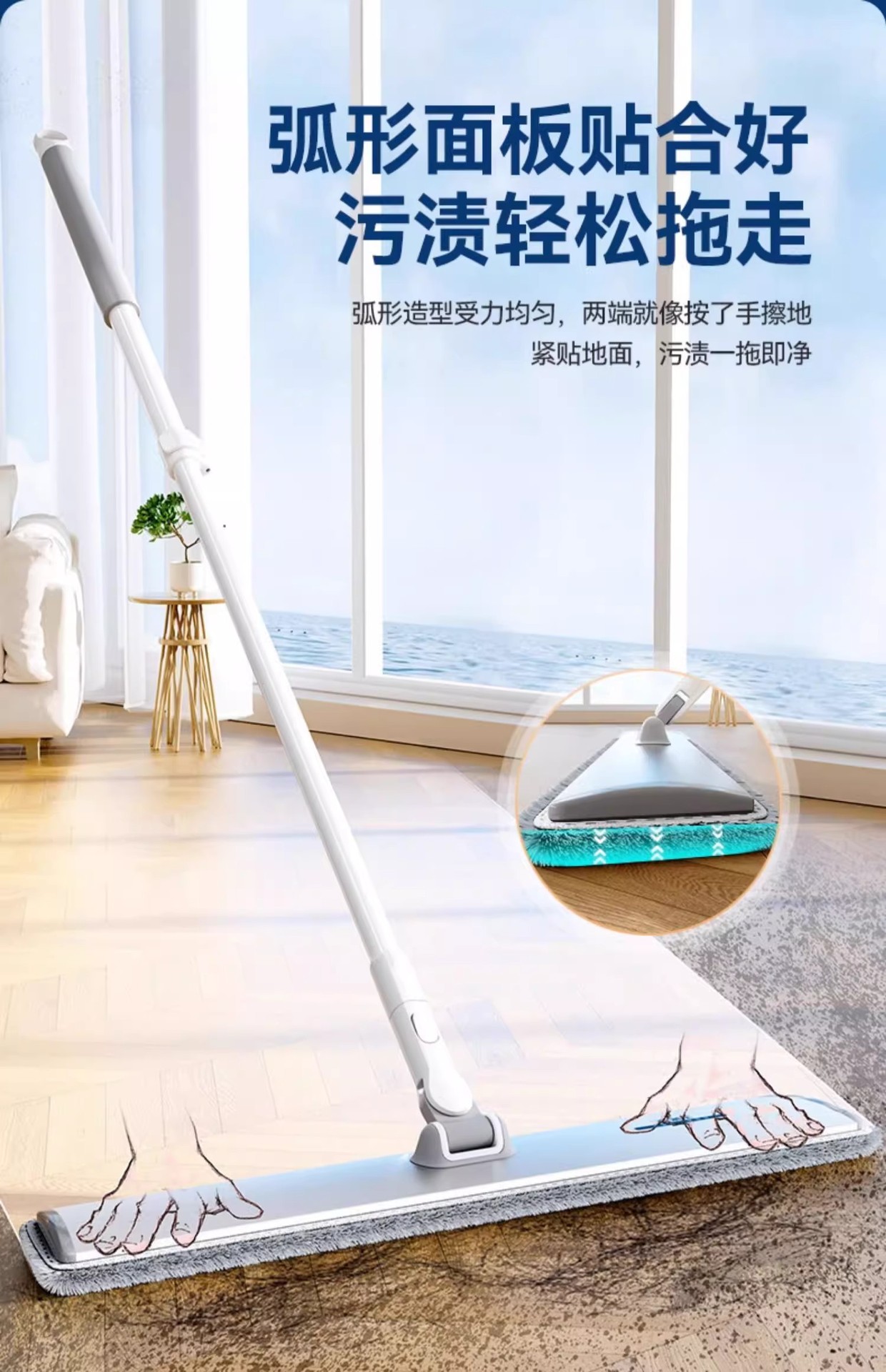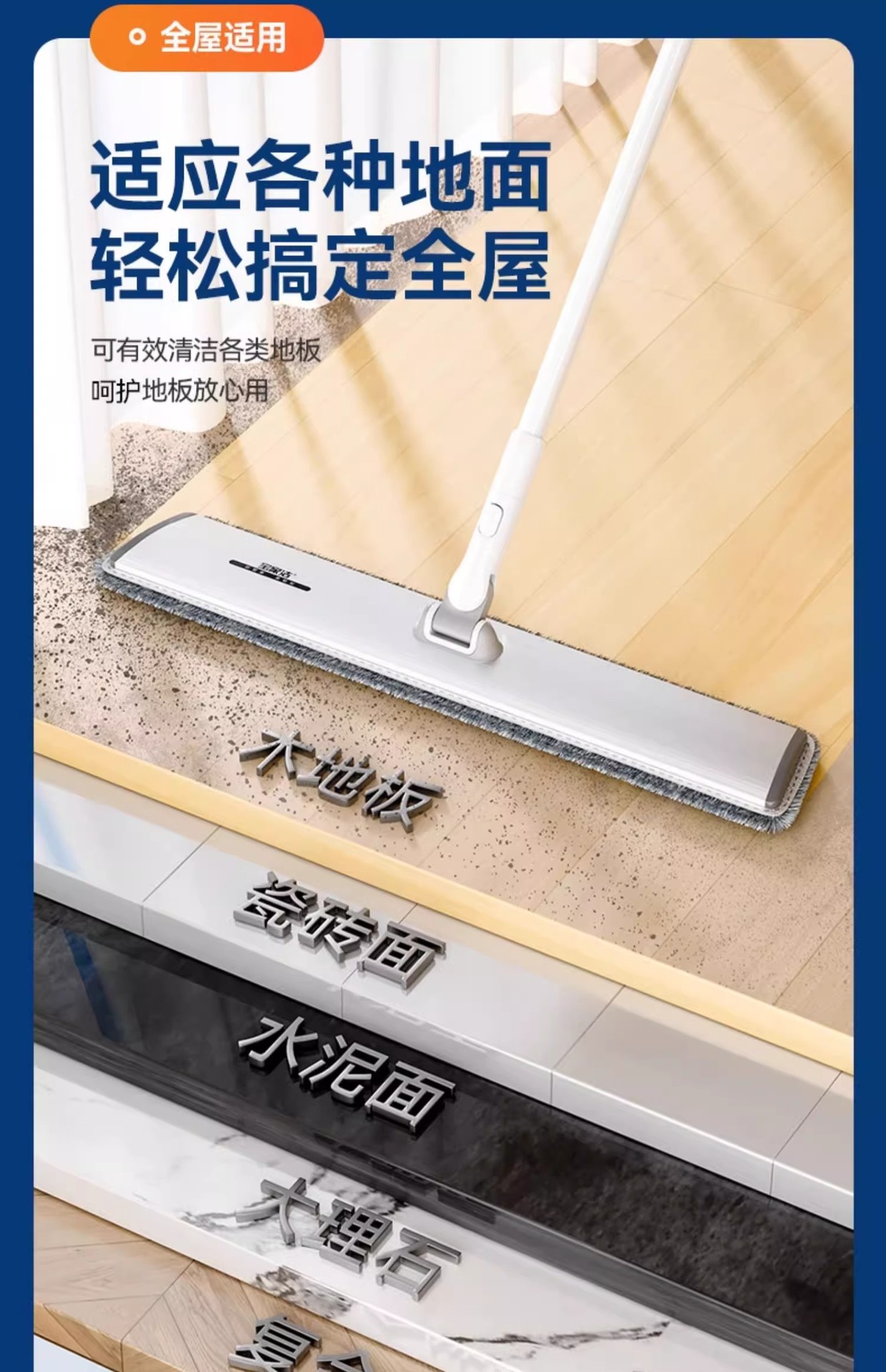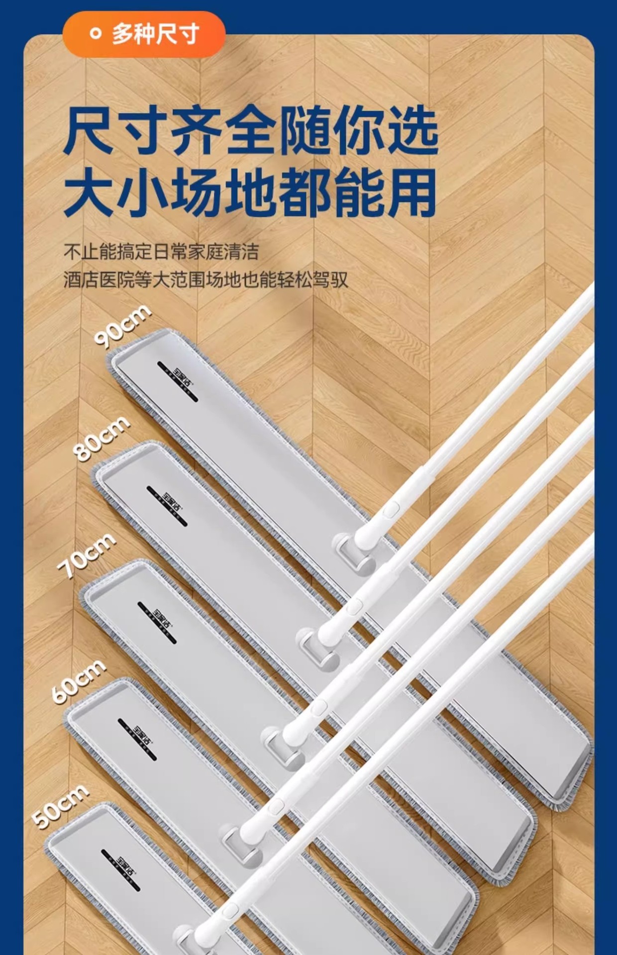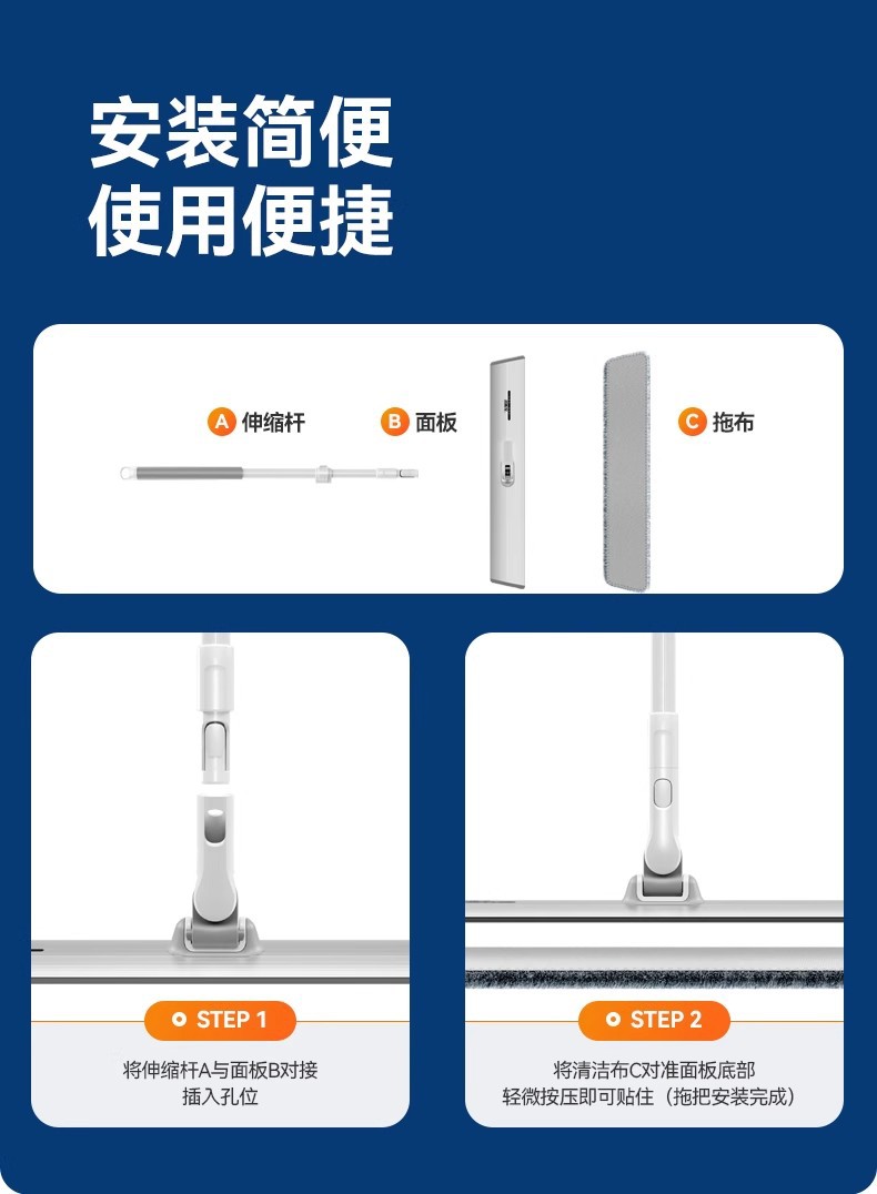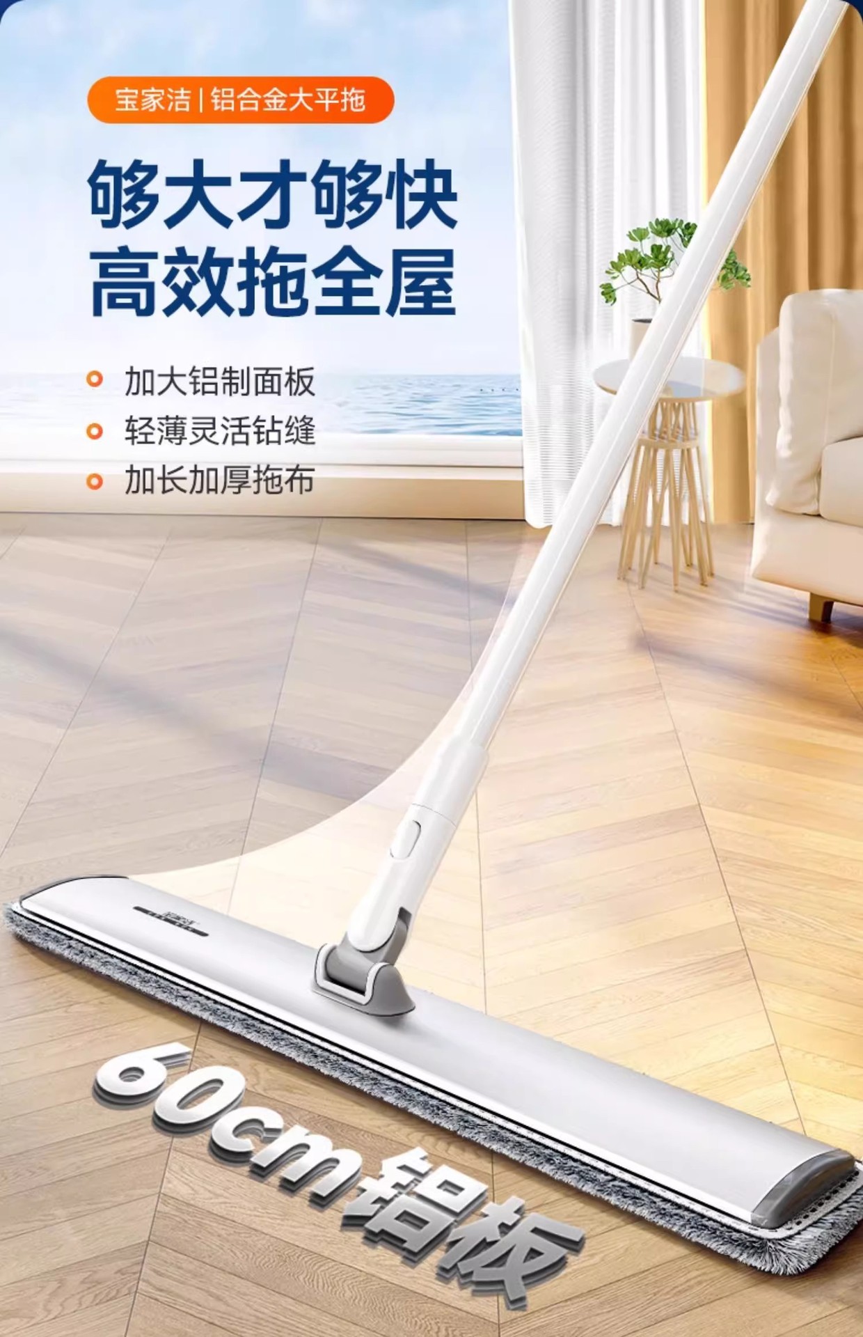 [차세대 70CM 업그레이드 알루미늄 합금 평걸레(총 3장) 대가족의 노력을 줄여줍니다.