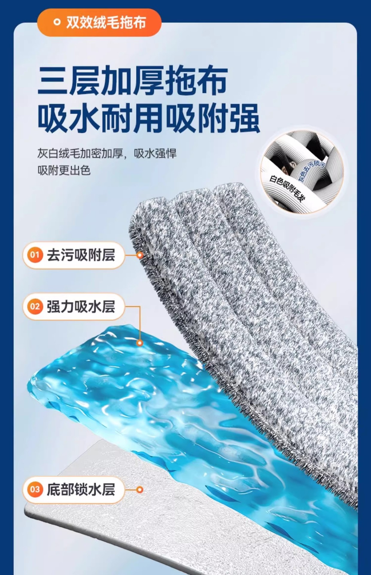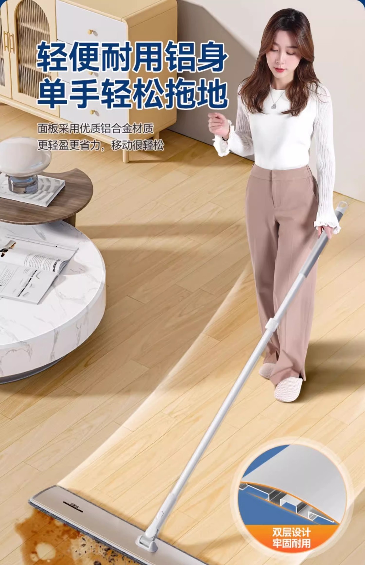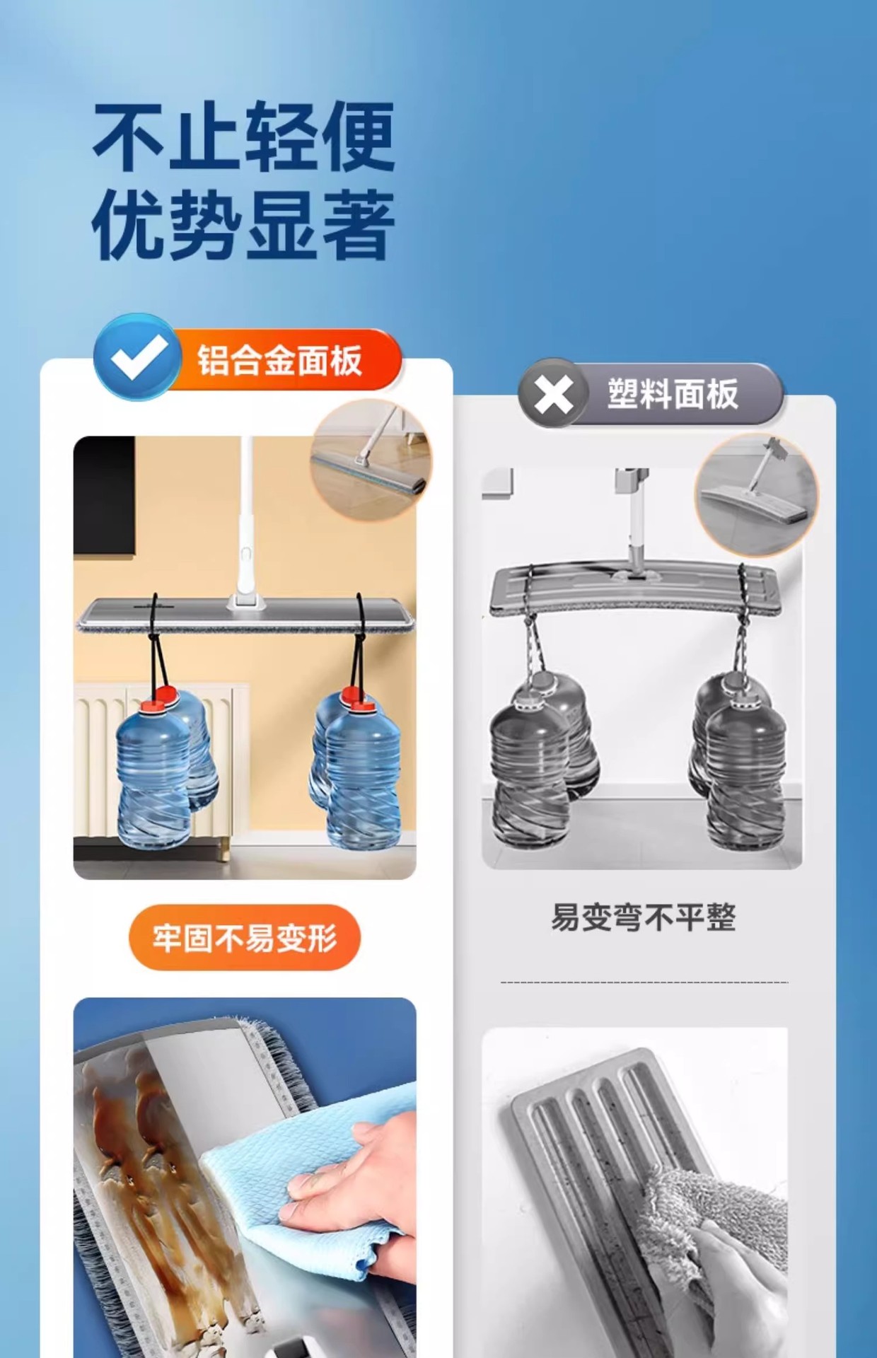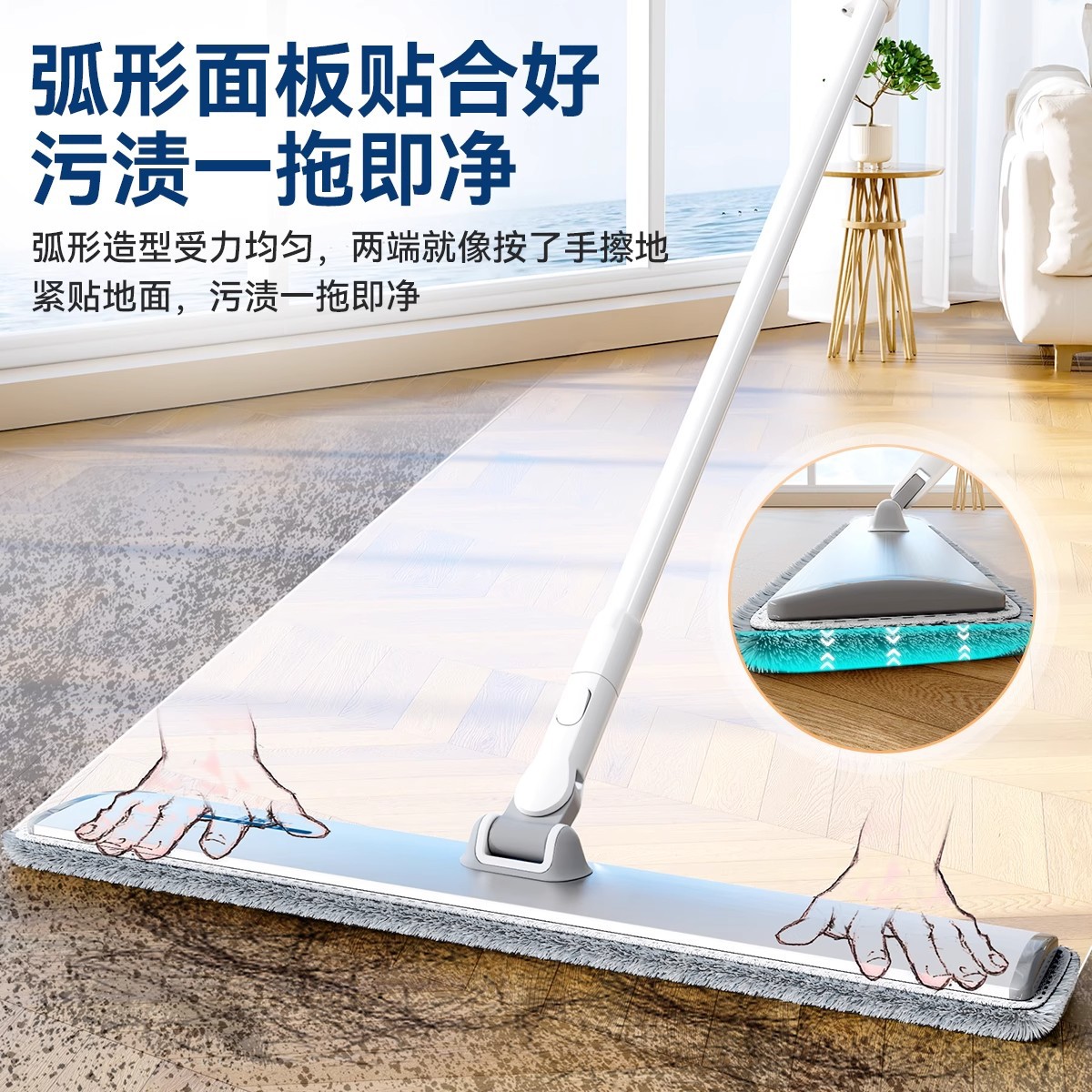 [차세대 70CM 업그레이드 알루미늄 합금 평걸레(총 3장) 대가족의 노력을 줄여줍니다.