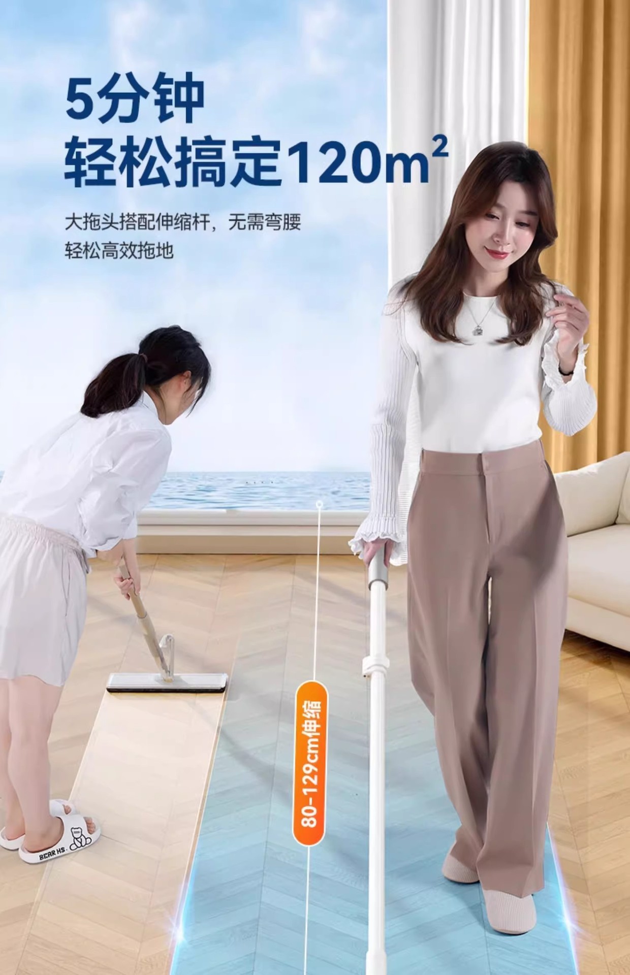 [고정봉] 90CM 알루미늄 걸레 (총 2장) 대가족을 위한 노동력 절약