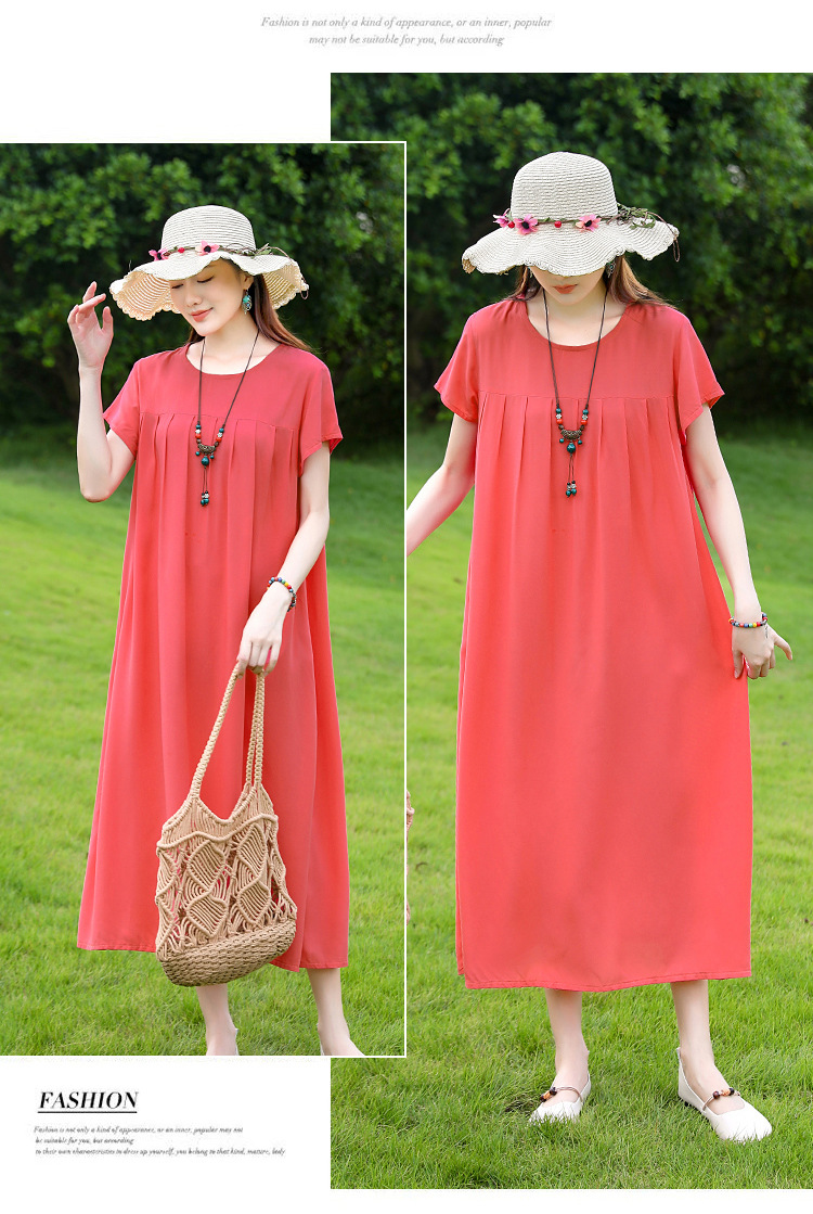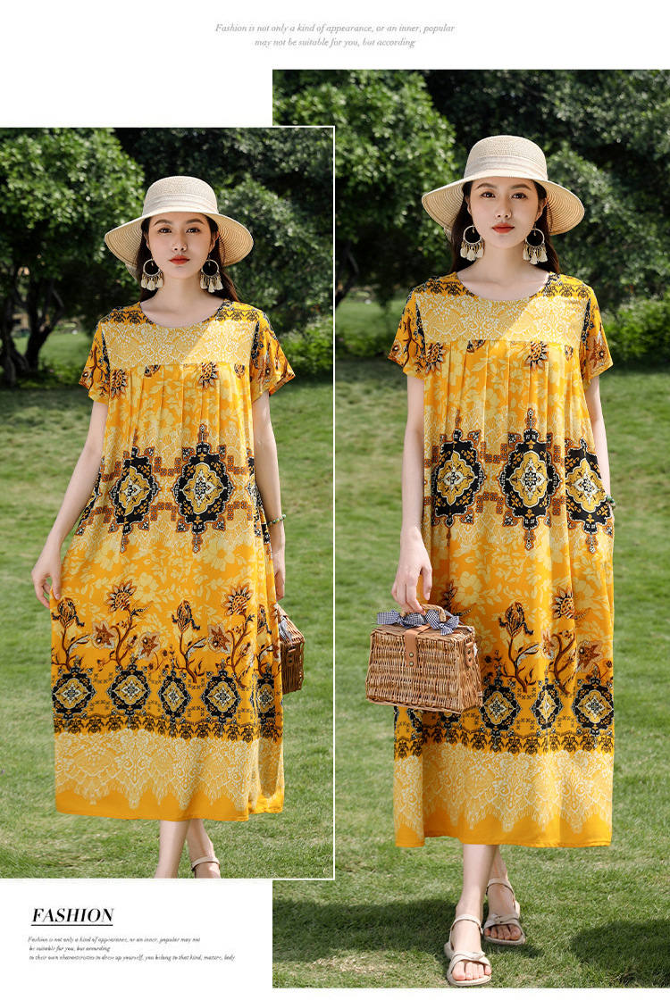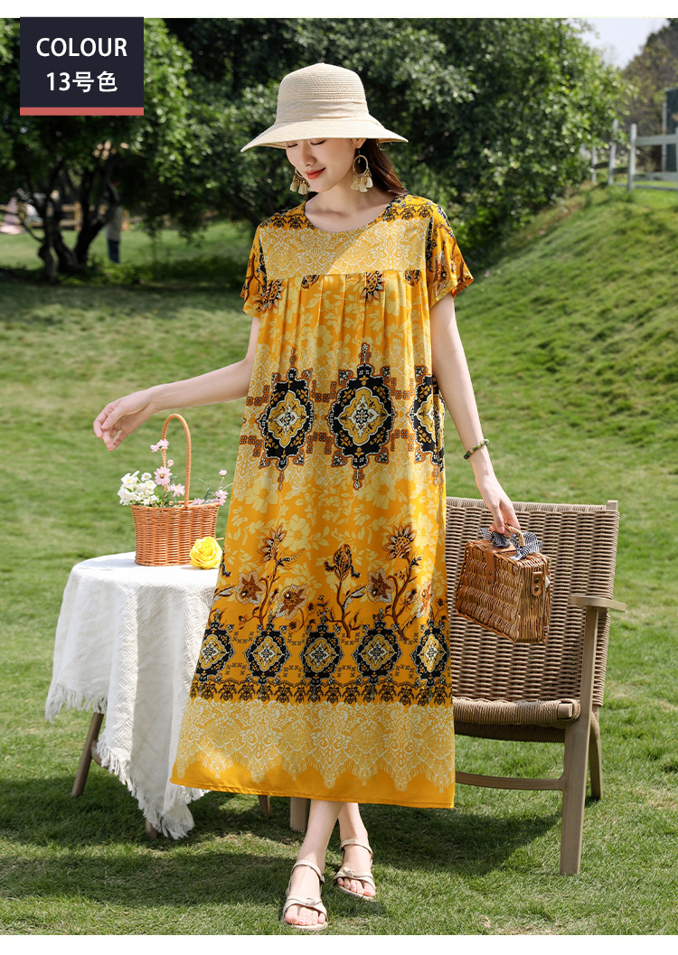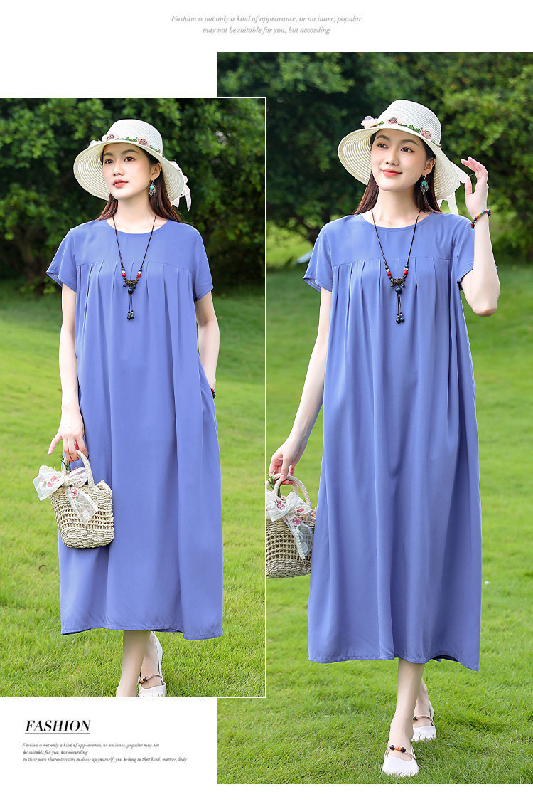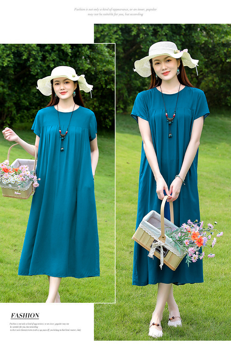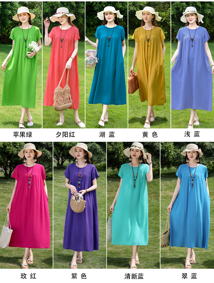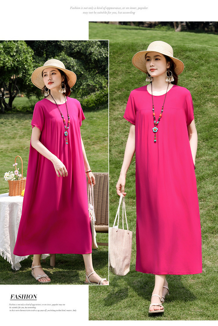 중년 및 노년 여성을 위한 면 실크 플러스 사이즈 배를 덮는 외부 드레스 여름 엄마 포켓 대형 루즈 솔리드 컬러 잠옷