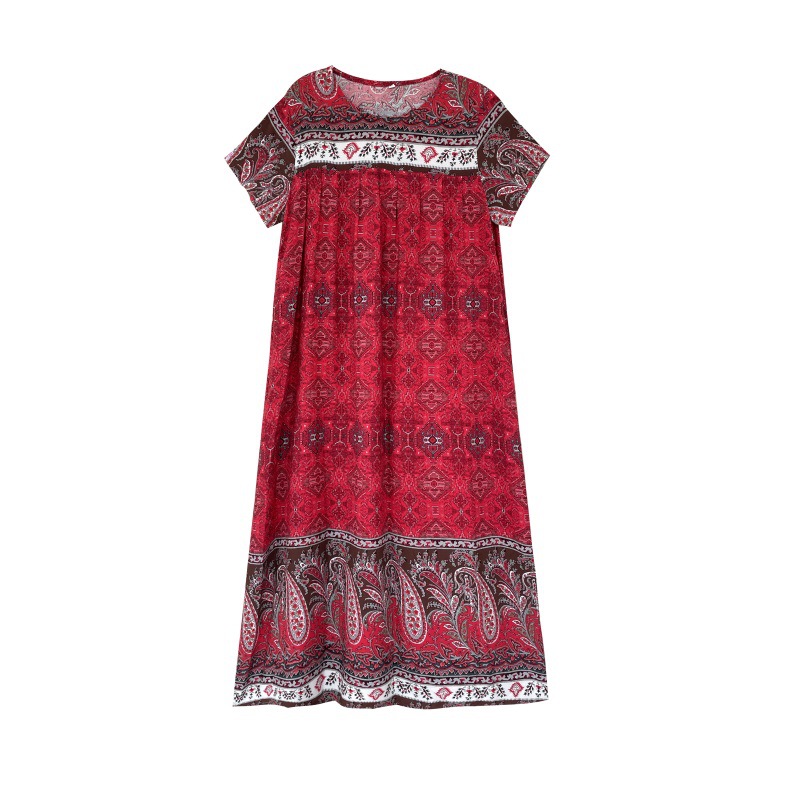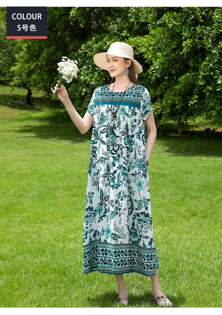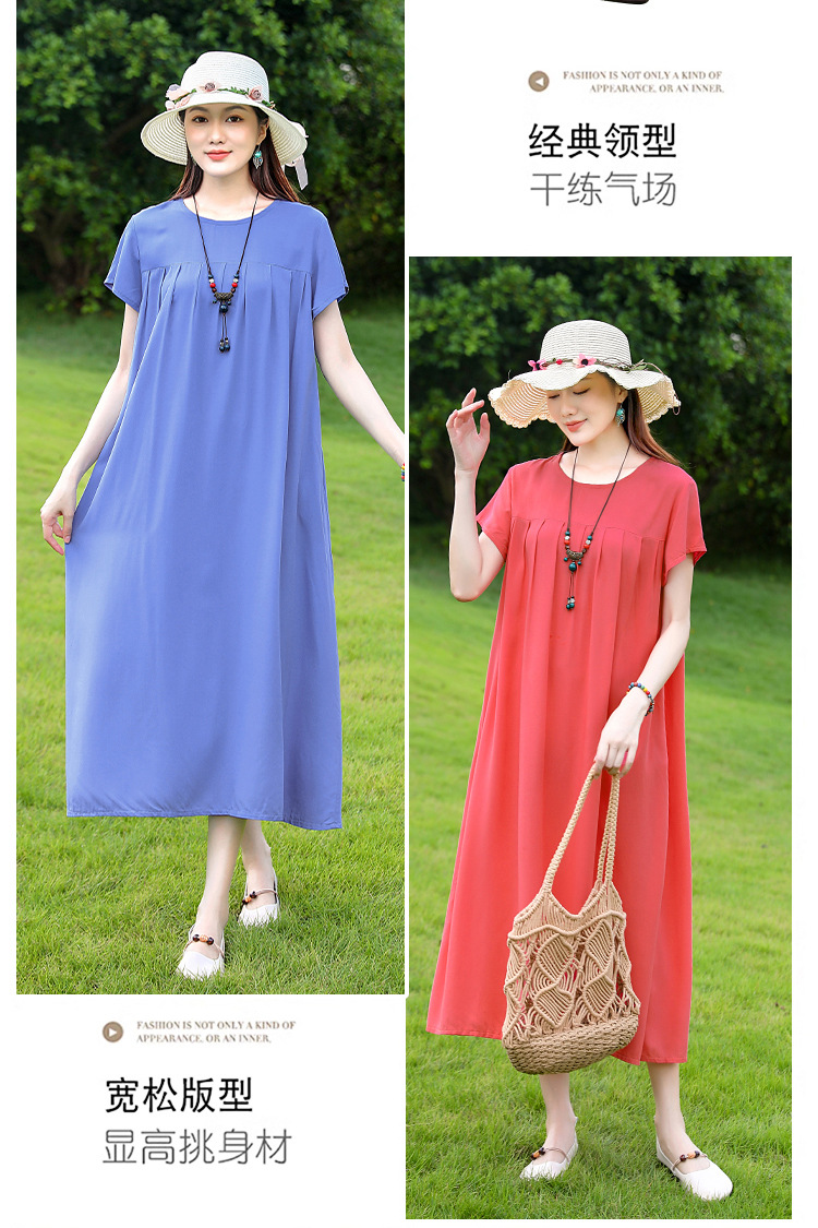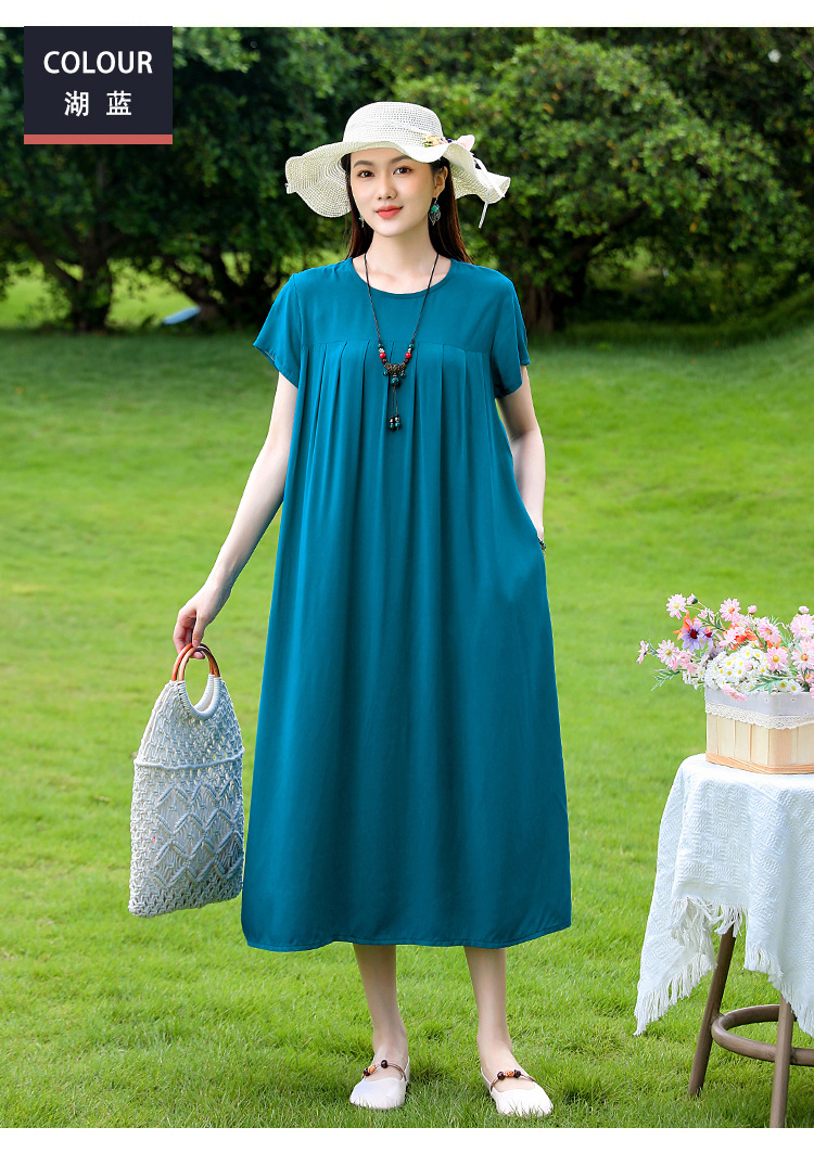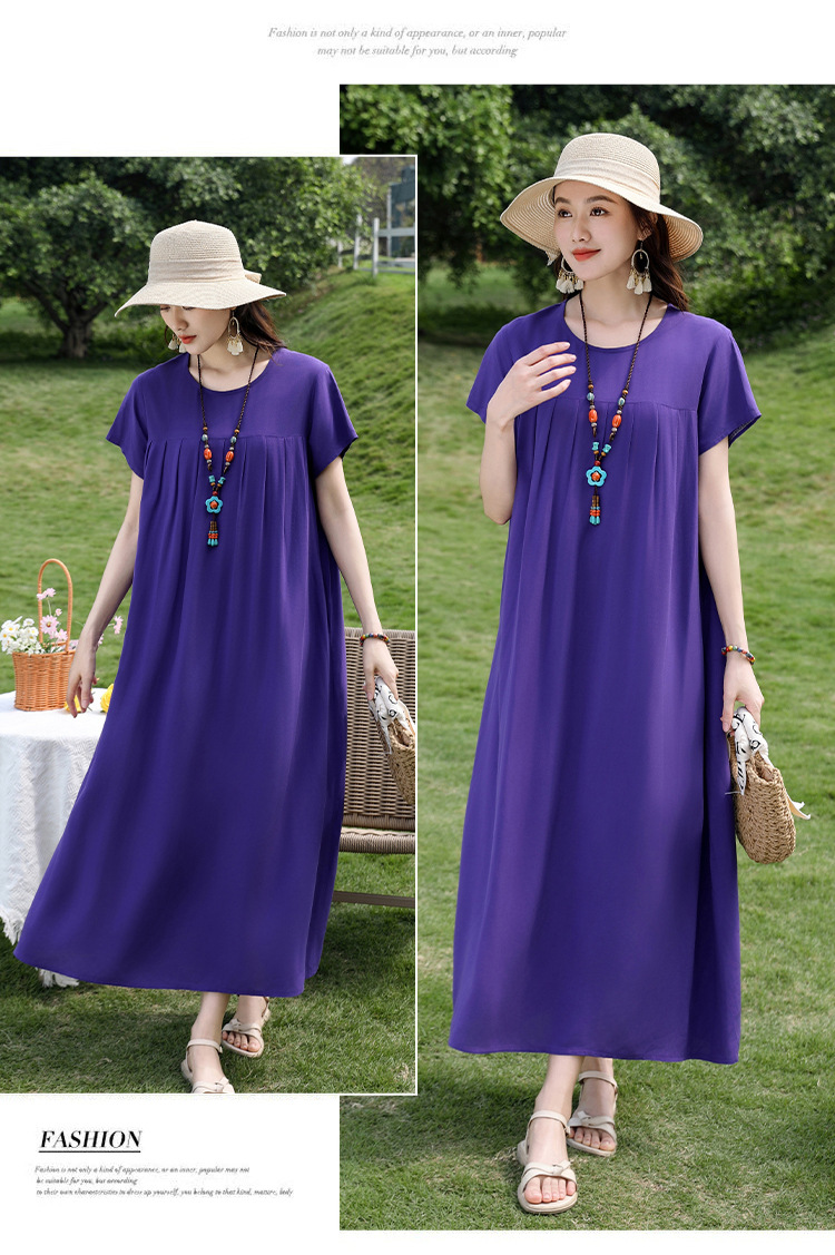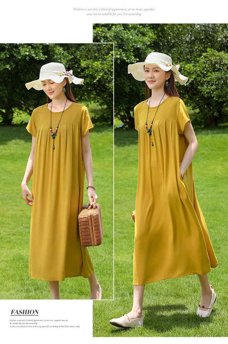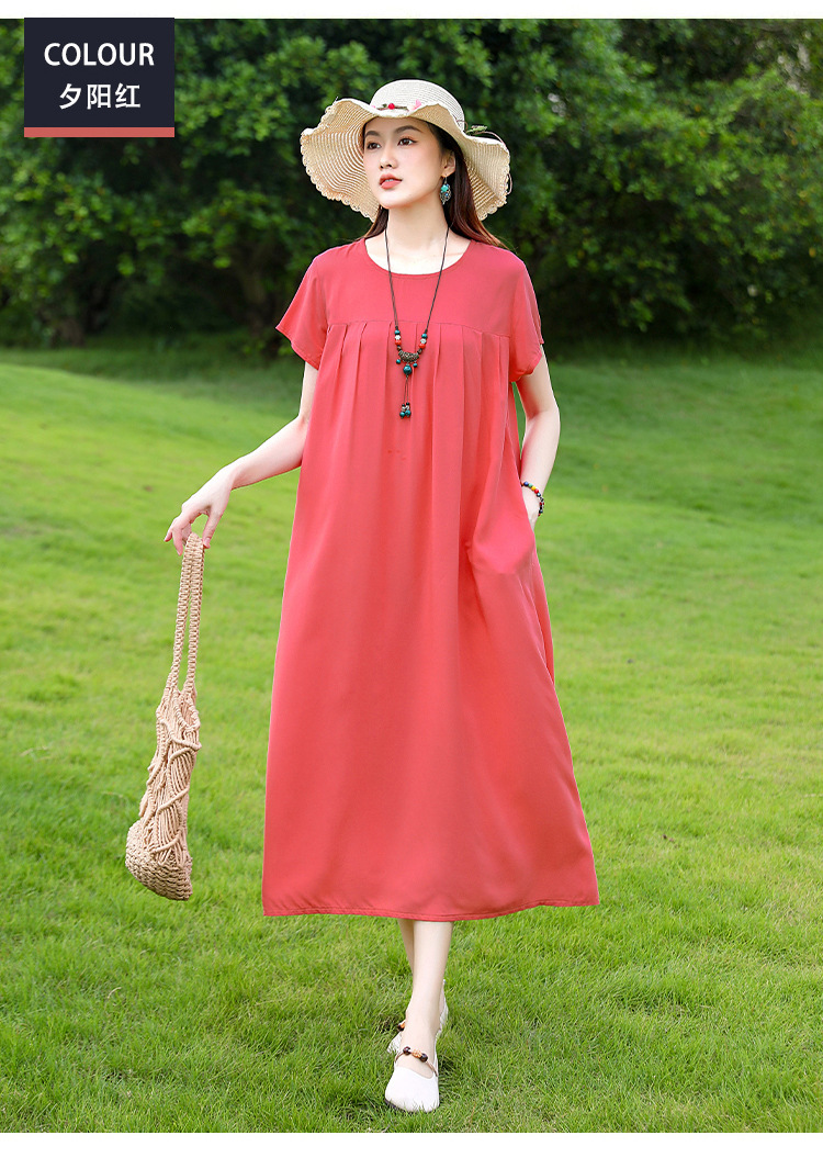 중년 및 노년 여성을 위한 면 실크 플러스 사이즈 배를 덮는 외부 드레스 여름 엄마 포켓 대형 루즈 솔리드 컬러 잠옷