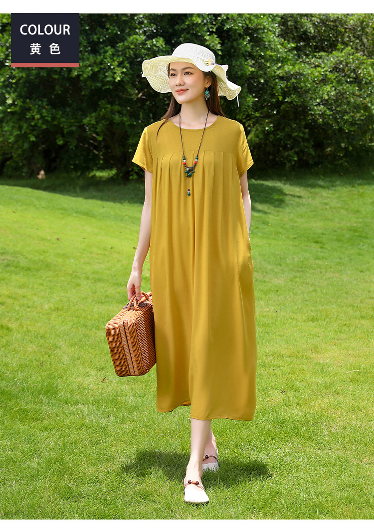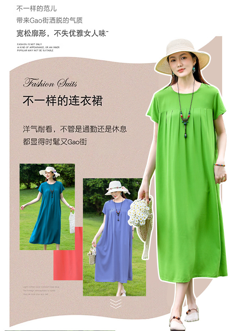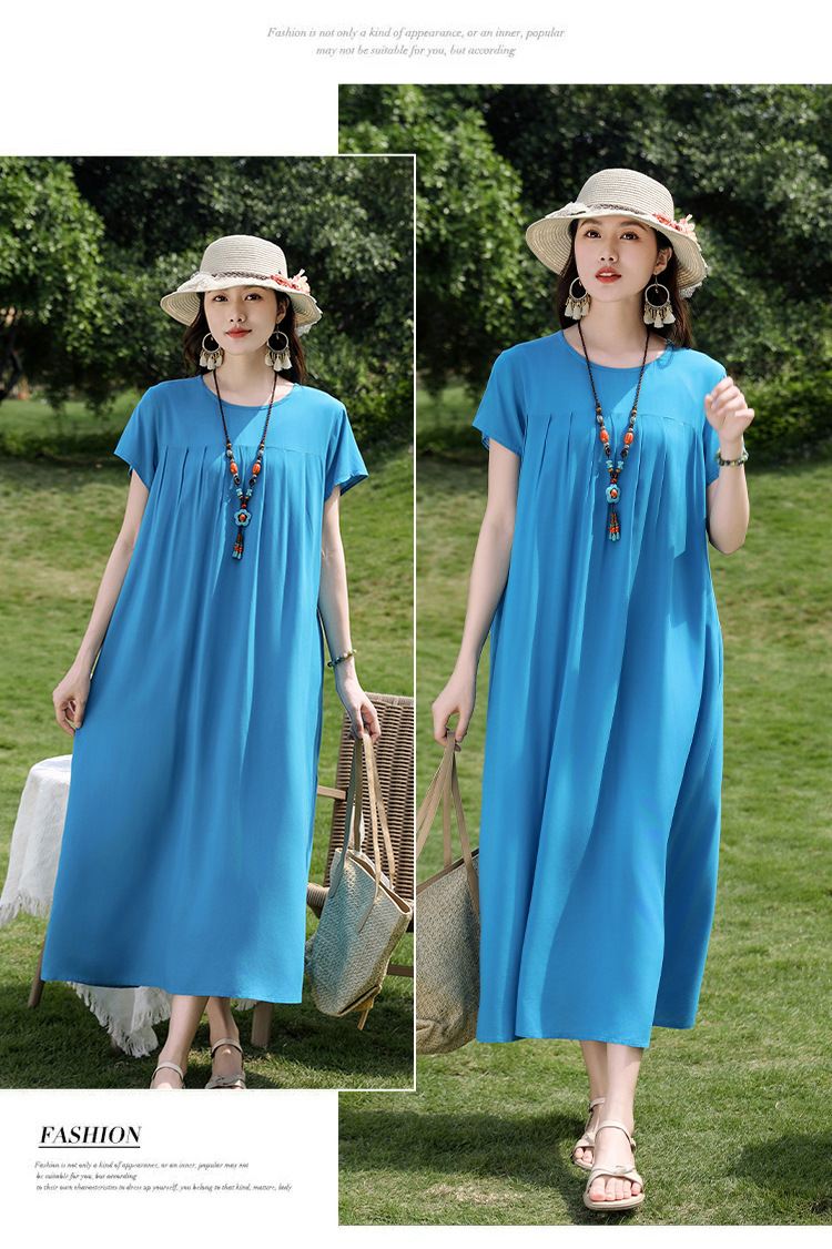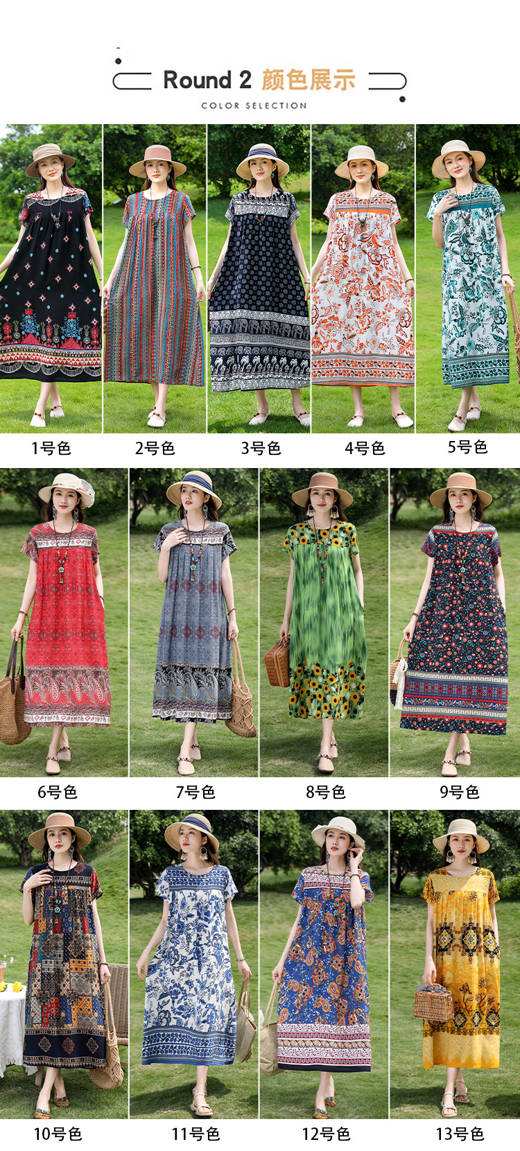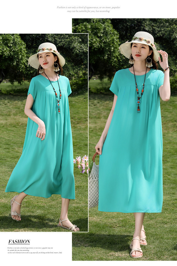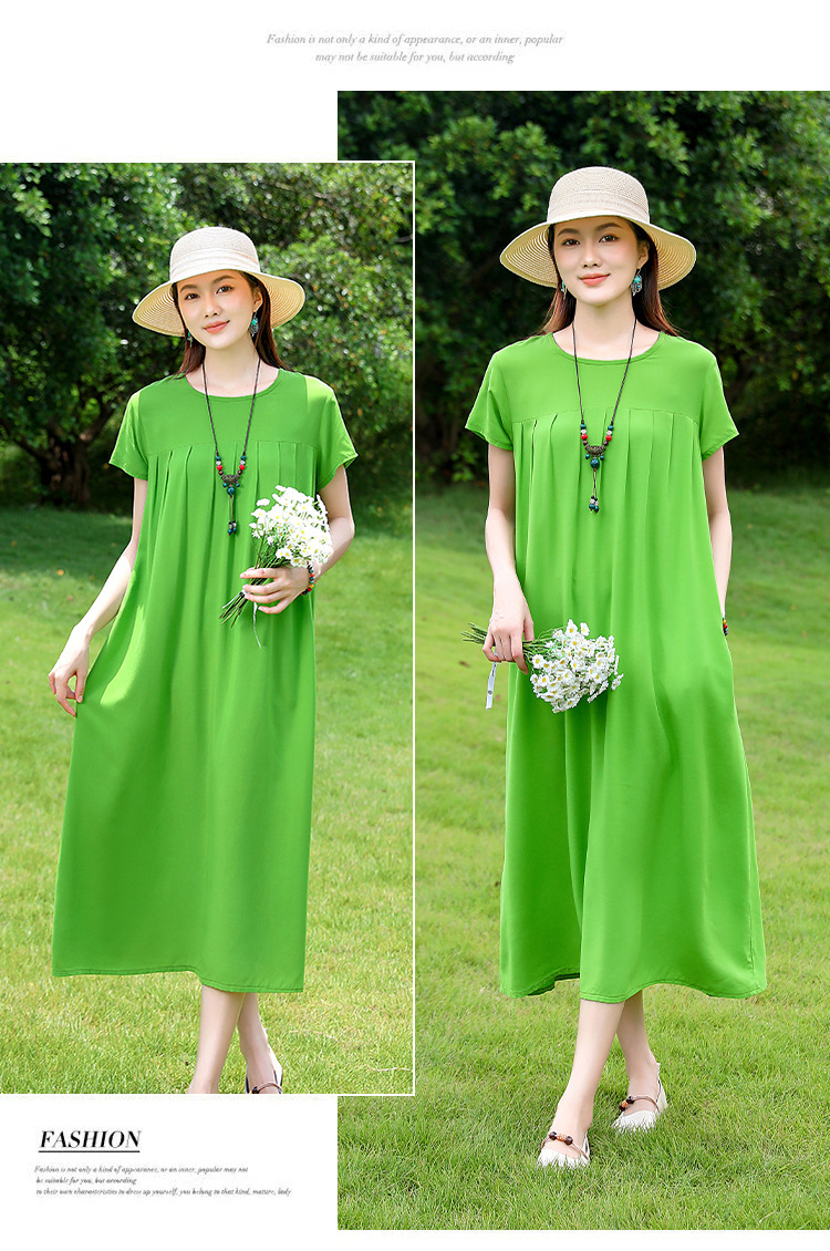중년 및 노년 여성을 위한 면 실크 플러스 사이즈 배를 덮는 외부 드레스 여름 엄마 포켓 대형 루즈 솔리드 컬러 잠옷