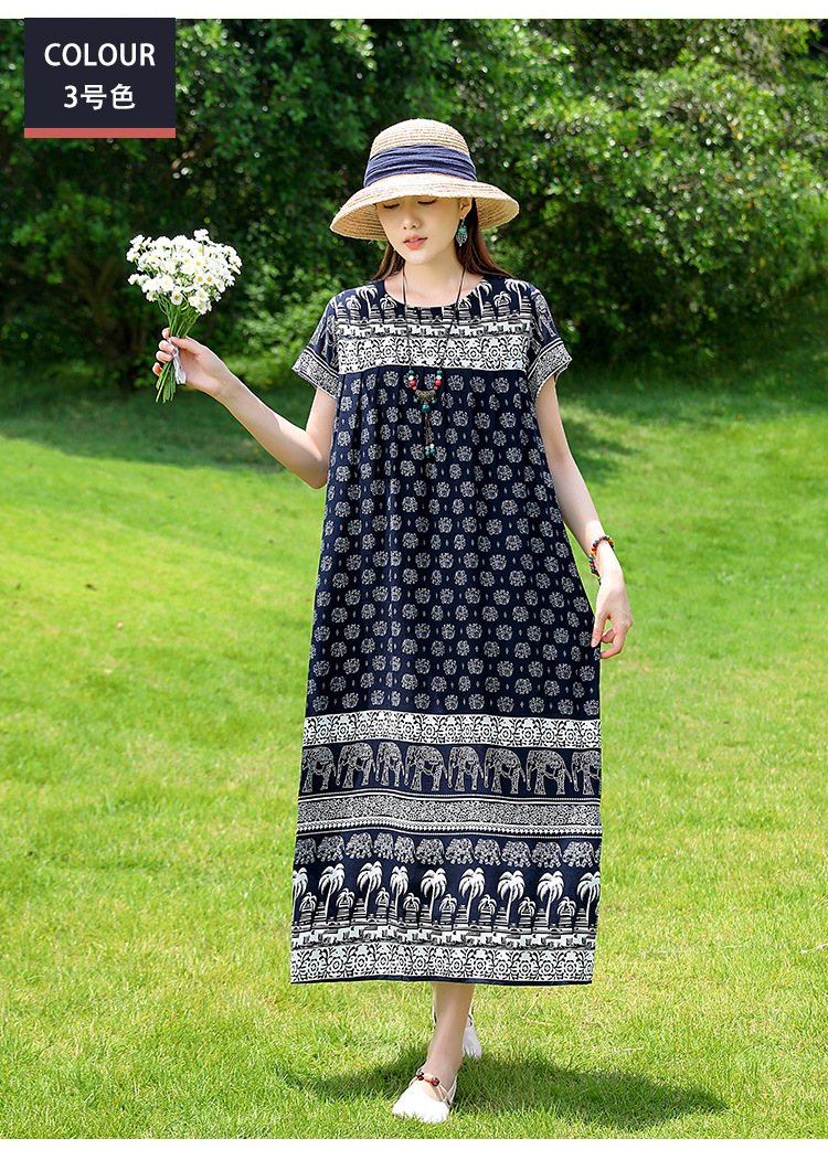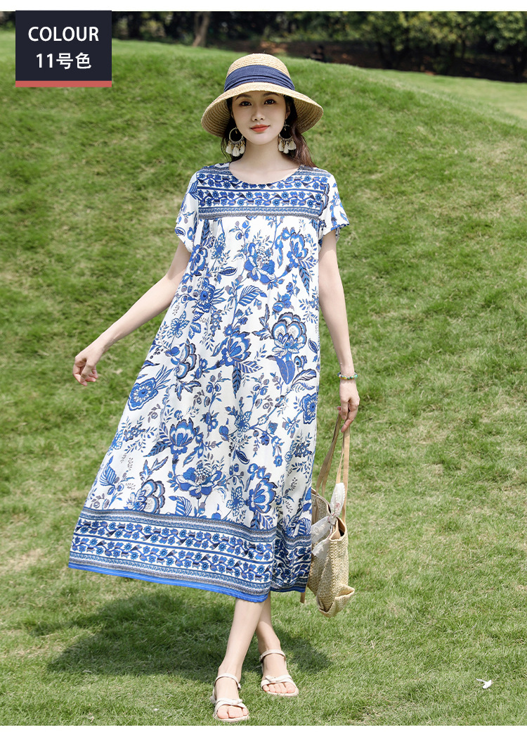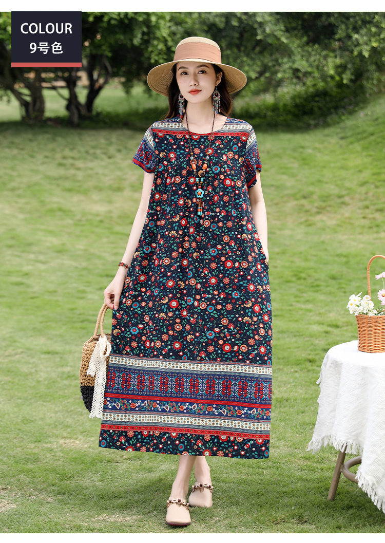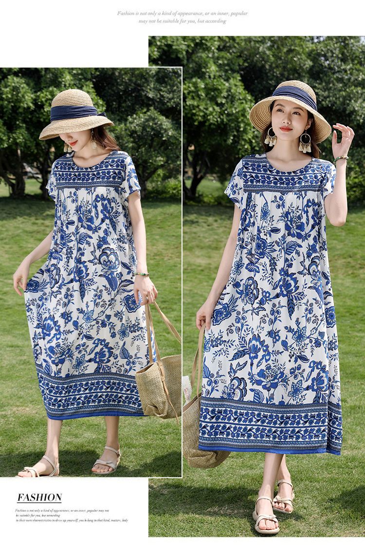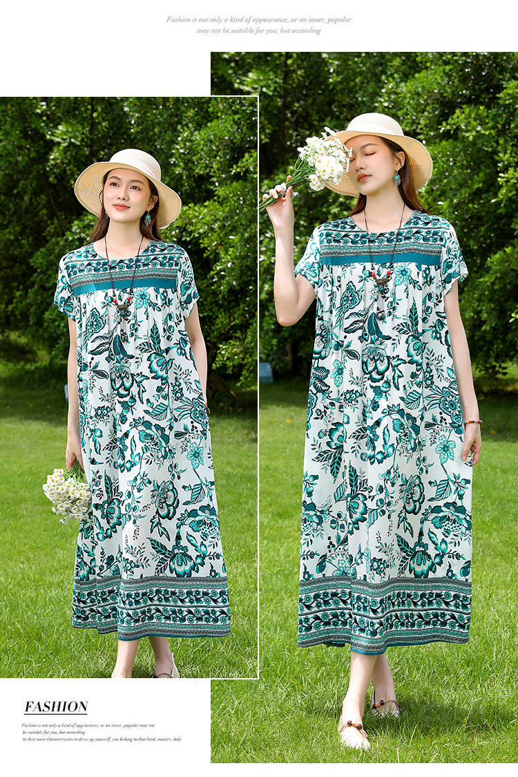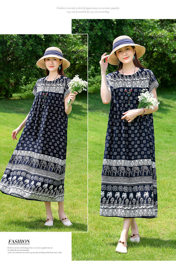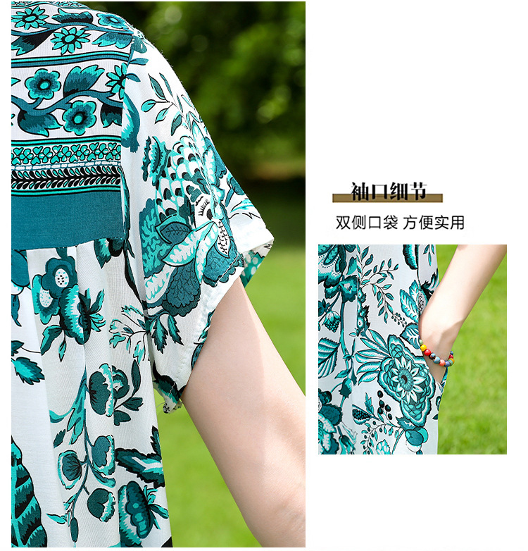 중년 및 노년 여성을 위한 면 실크 플러스 사이즈 배를 덮는 외부 드레스 여름 엄마 포켓 대형 루즈 솔리드 컬러 잠옷