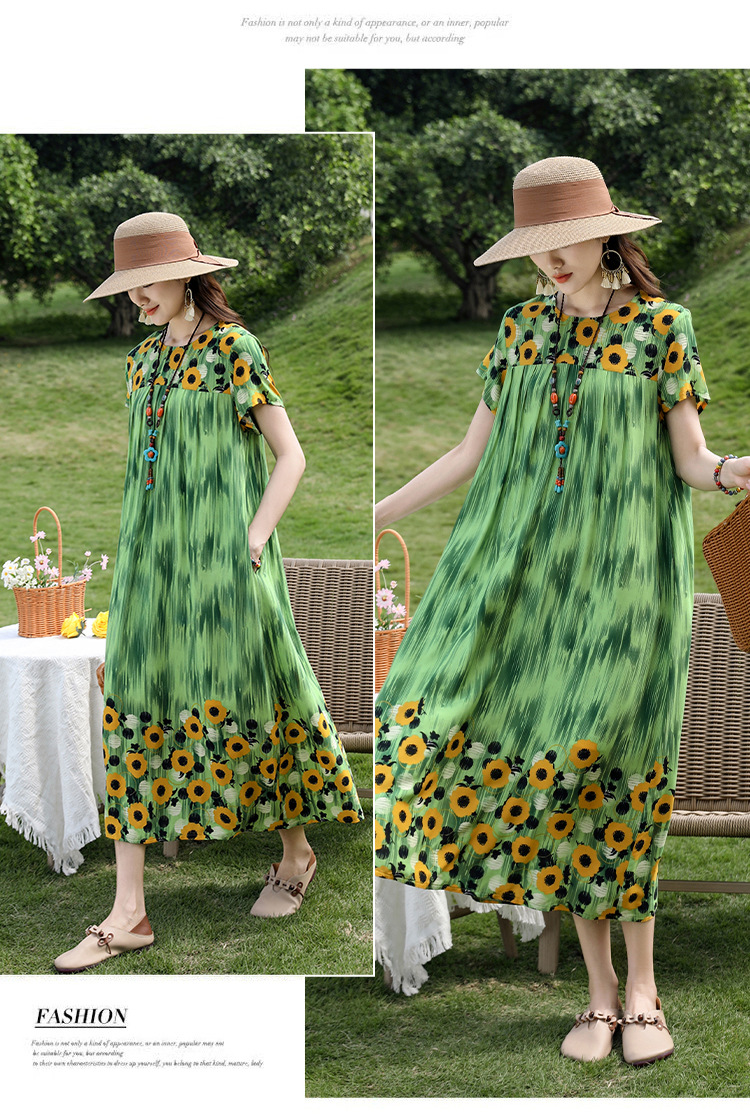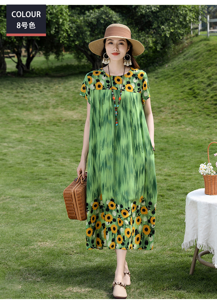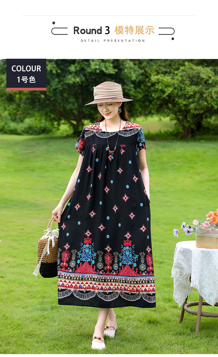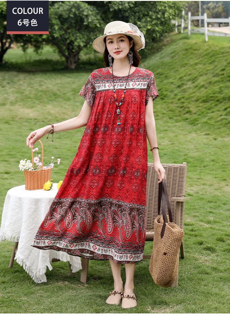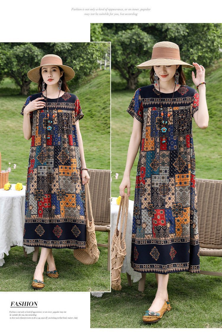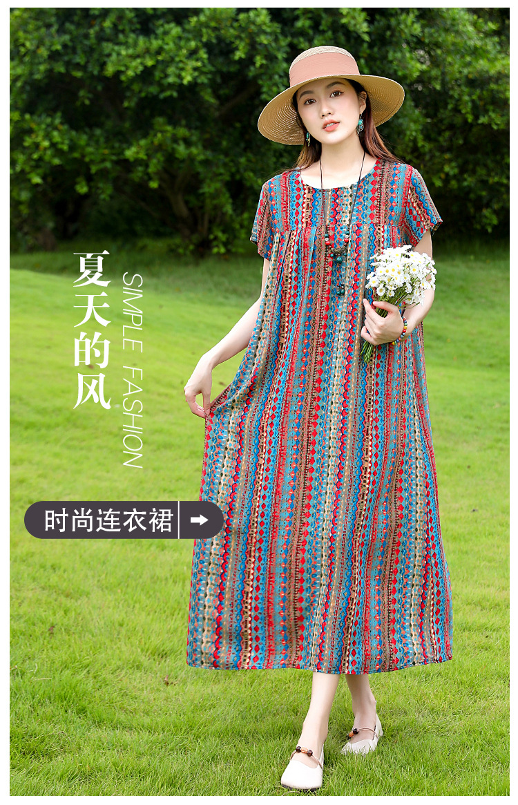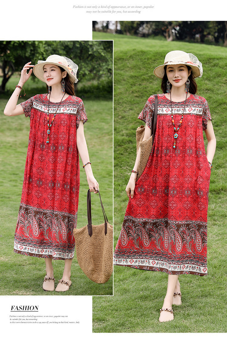 중년 및 노년 여성을 위한 면 실크 플러스 사이즈 배를 덮는 외부 드레스 여름 엄마 포켓 대형 루즈 솔리드 컬러 잠옷