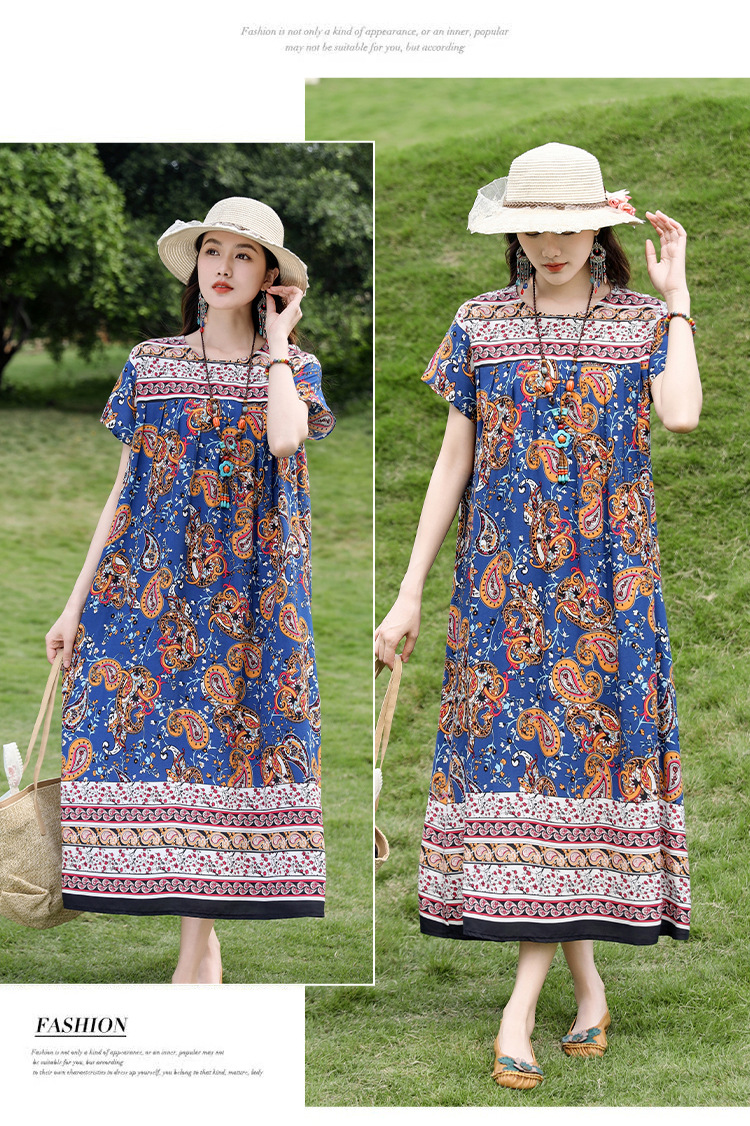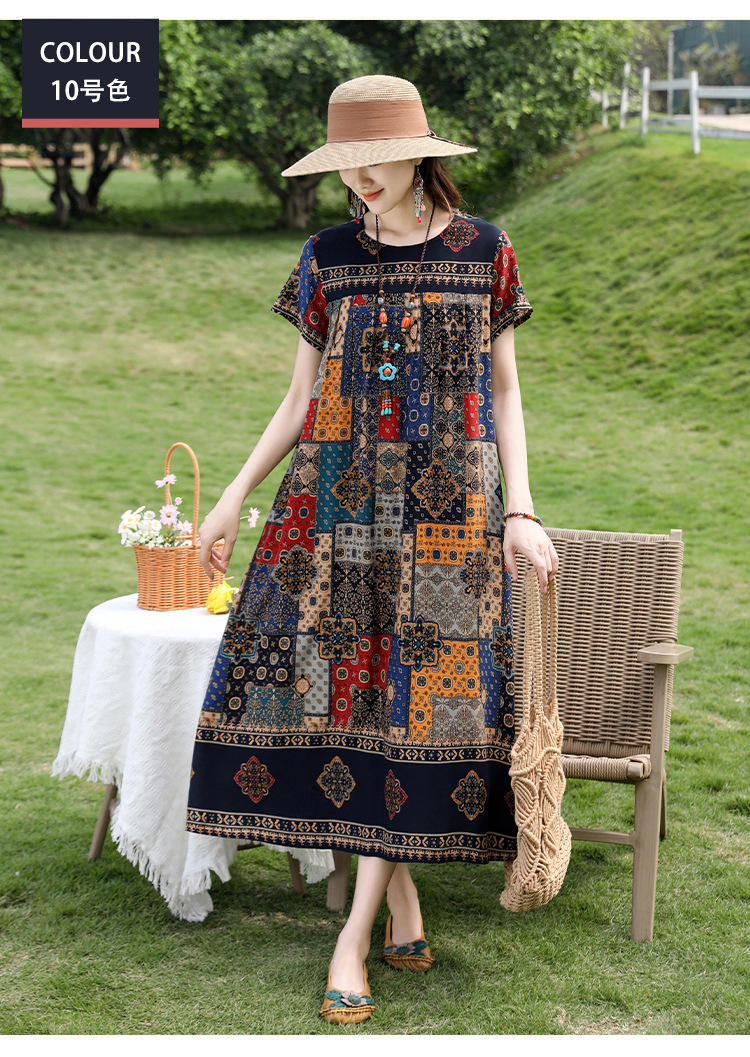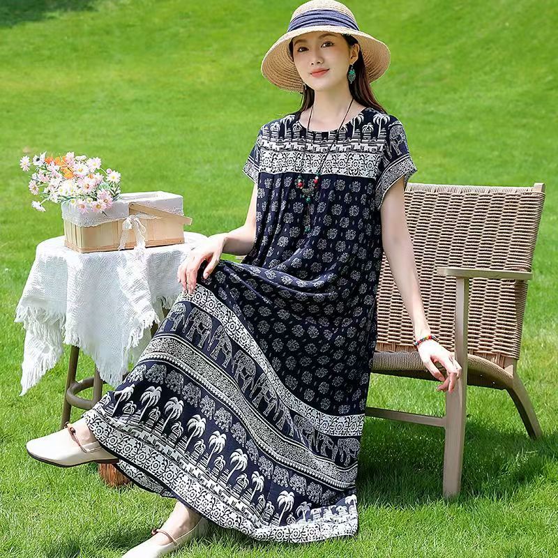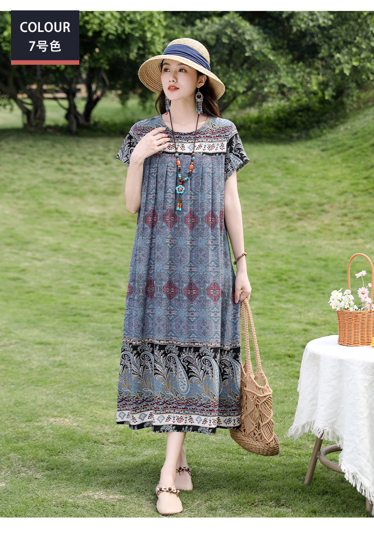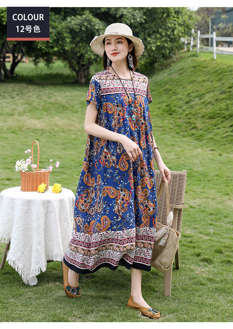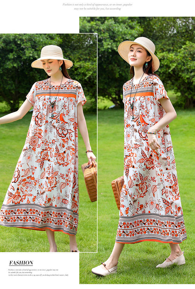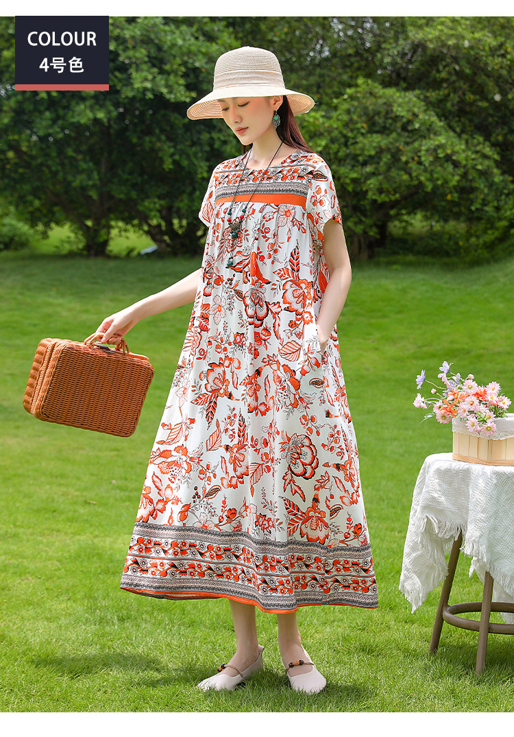 중년 및 노년 여성을 위한 면 실크 플러스 사이즈 배를 덮는 외부 드레스 여름 엄마 포켓 대형 루즈 솔리드 컬러 잠옷