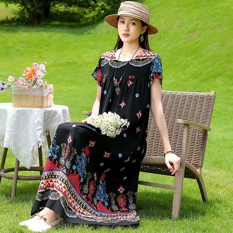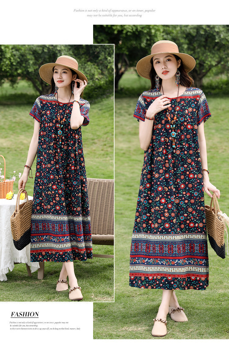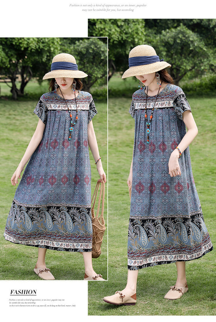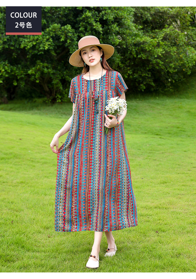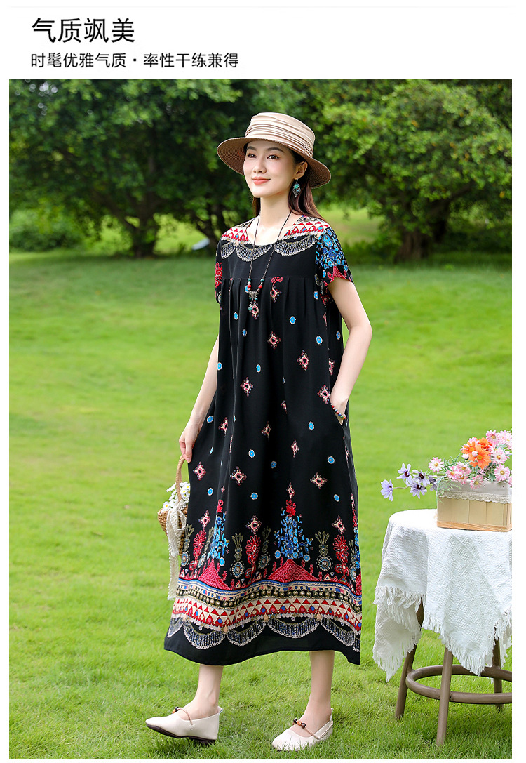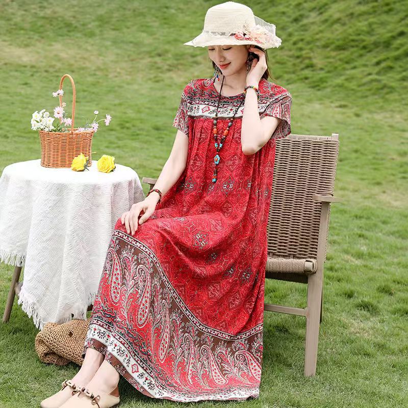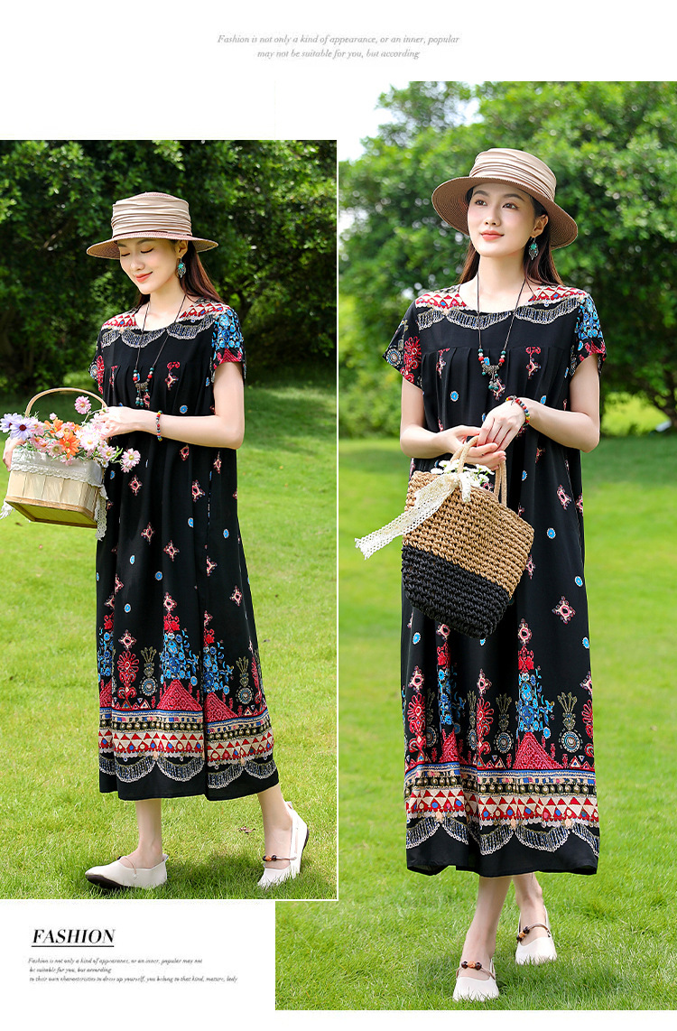 중년 및 노년 여성을 위한 면 실크 플러스 사이즈 배를 덮는 외부 드레스 여름 엄마 포켓 대형 루즈 솔리드 컬러 잠옷