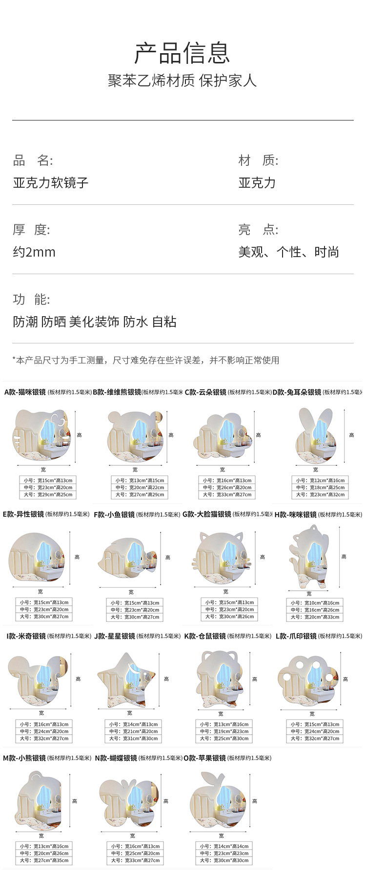 아크릴 특수 모양의 만화 팬더 동물 벽 스티커 자체 접착 침실 욕실 크리 에이 티브 소프트 거울 전신 거울 화장품 거울