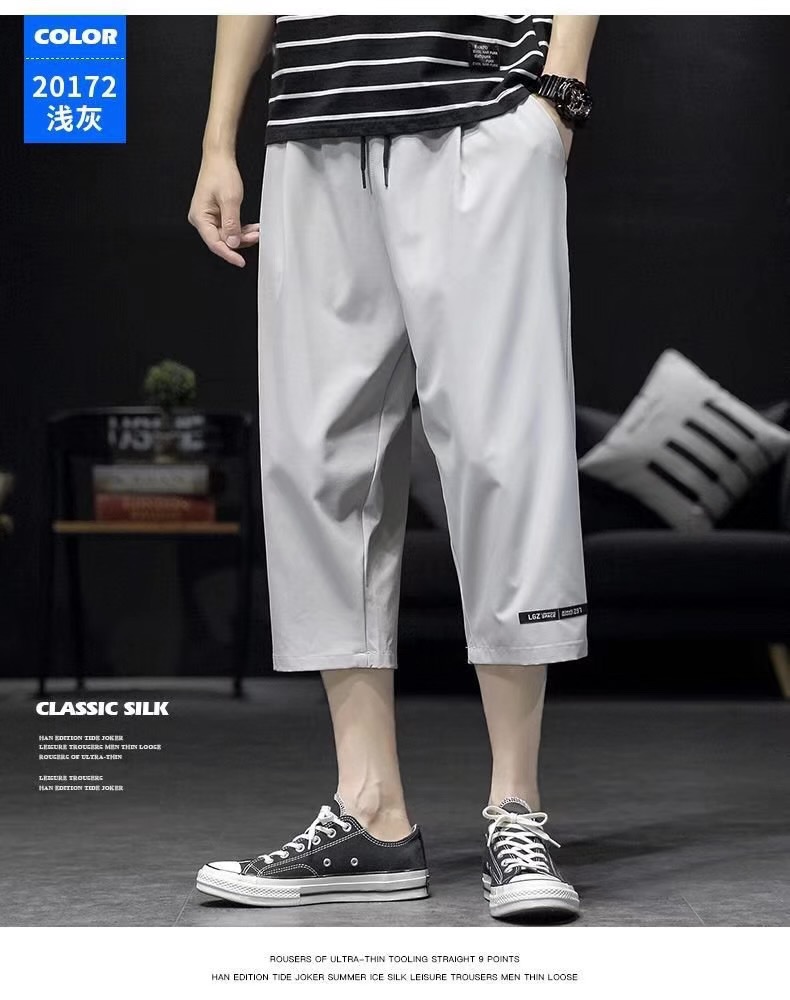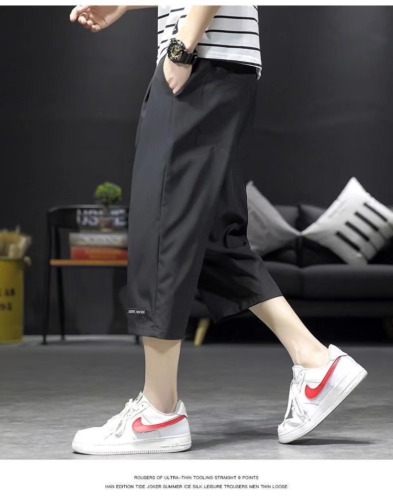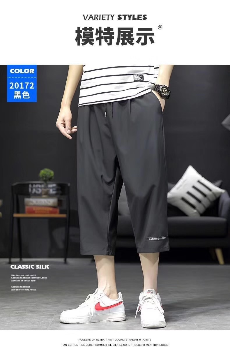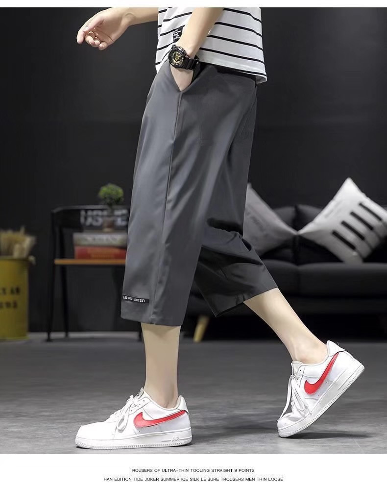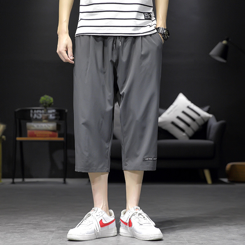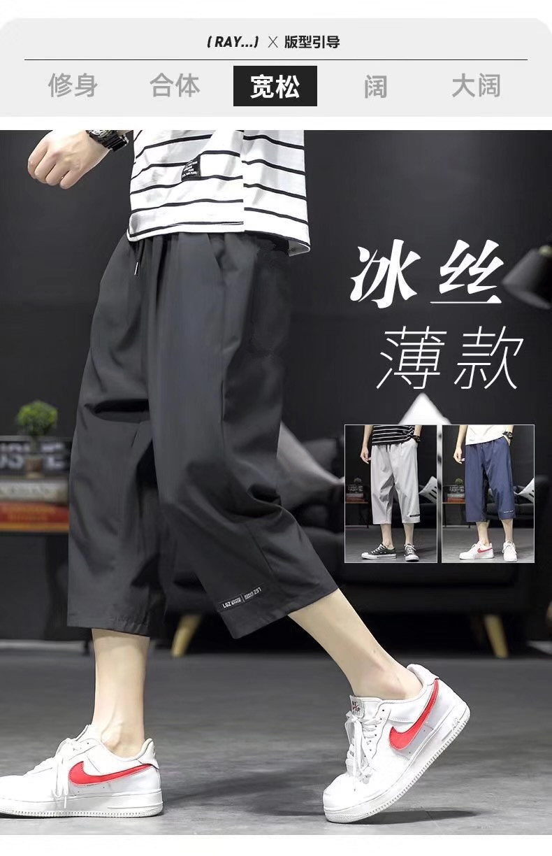 남성용 크롭 팬츠, 여름용 얇은 아이스 실크 캐주얼 팬츠, 남성용 루즈한 스포츠 반바지, 작업복, 트렌디한 7부 팬츠