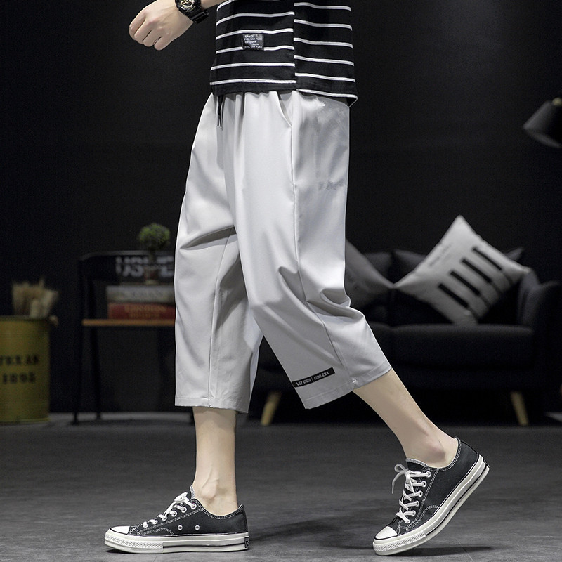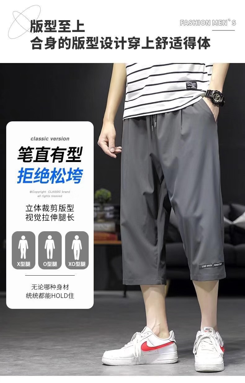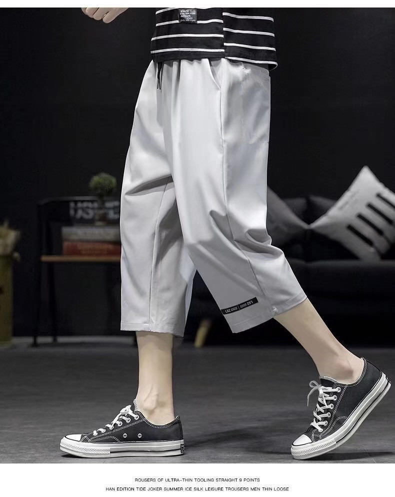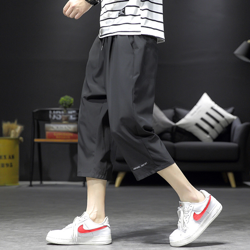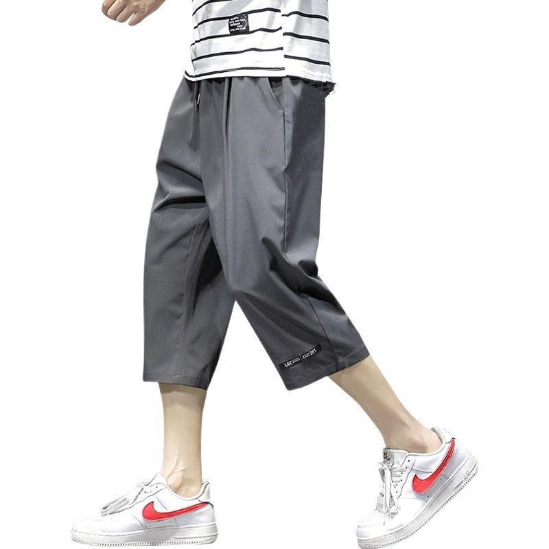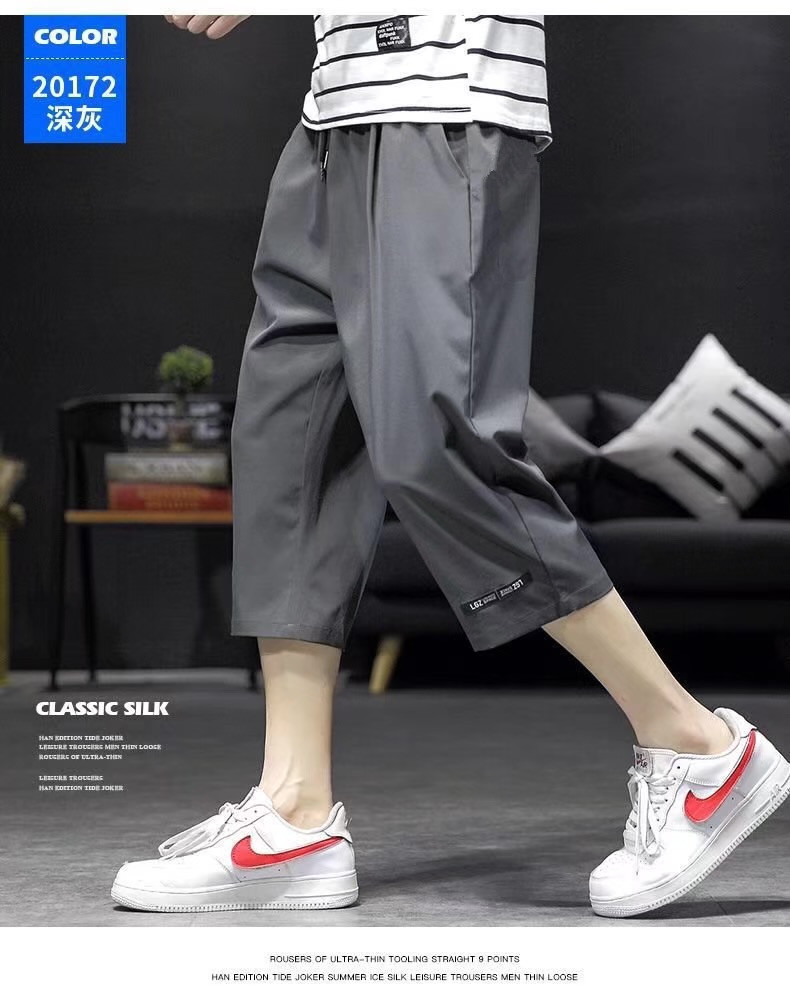 남성용 크롭 팬츠, 여름용 얇은 아이스 실크 캐주얼 팬츠, 남성용 루즈한 스포츠 반바지, 작업복, 트렌디한 7부 팬츠