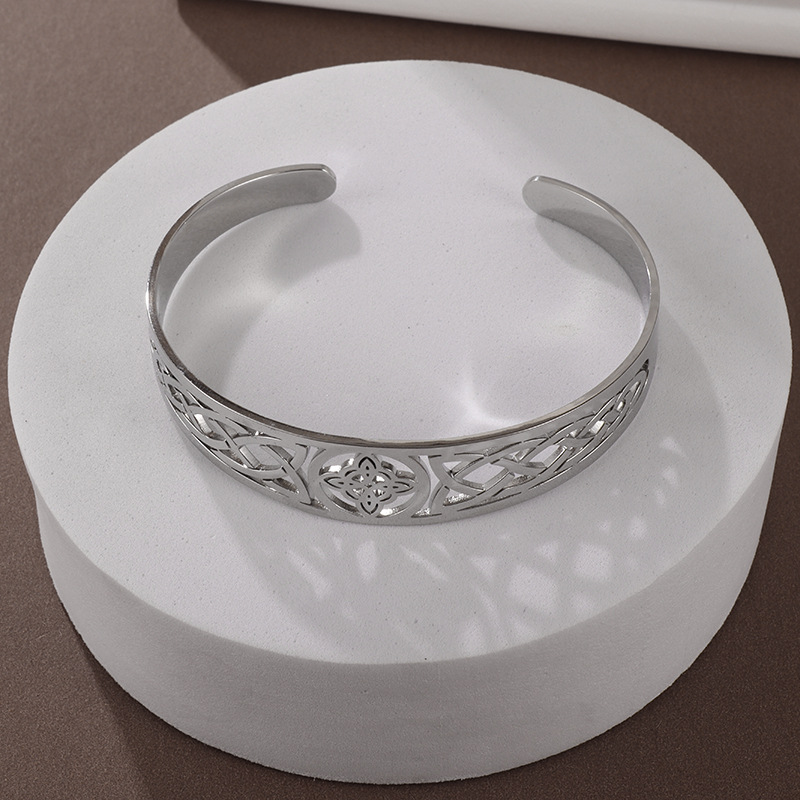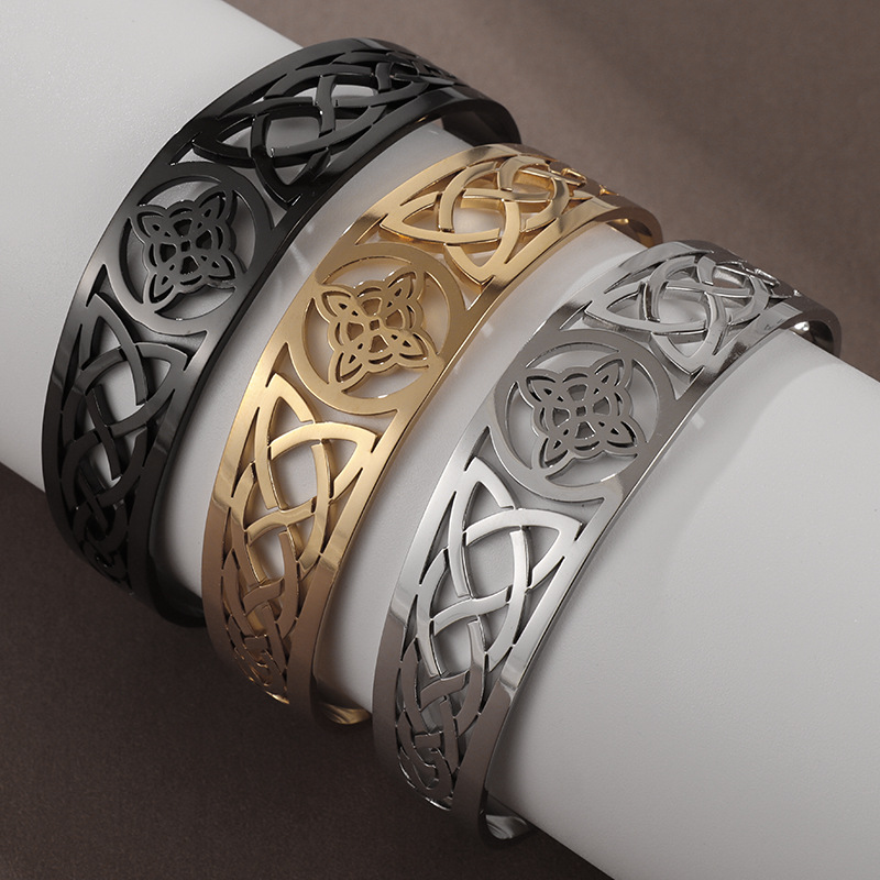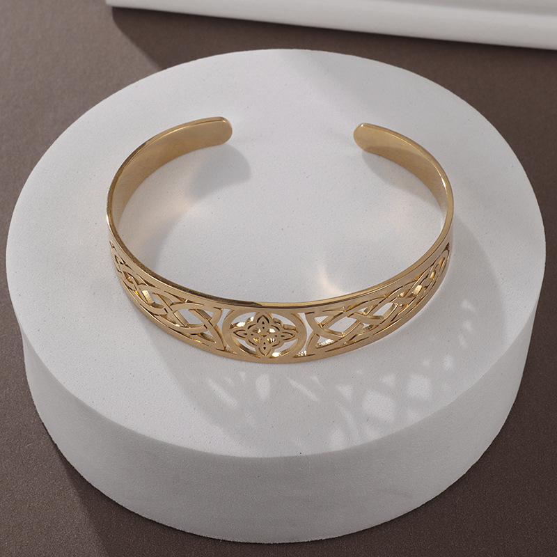 유럽과 미국의 인기 판매 보석, 맞춤형 간단한 스테인레스 스틸 팔찌, 복고풍 패션 중공 C 자형 오픈 팔찌, 제조업체 직접 판매