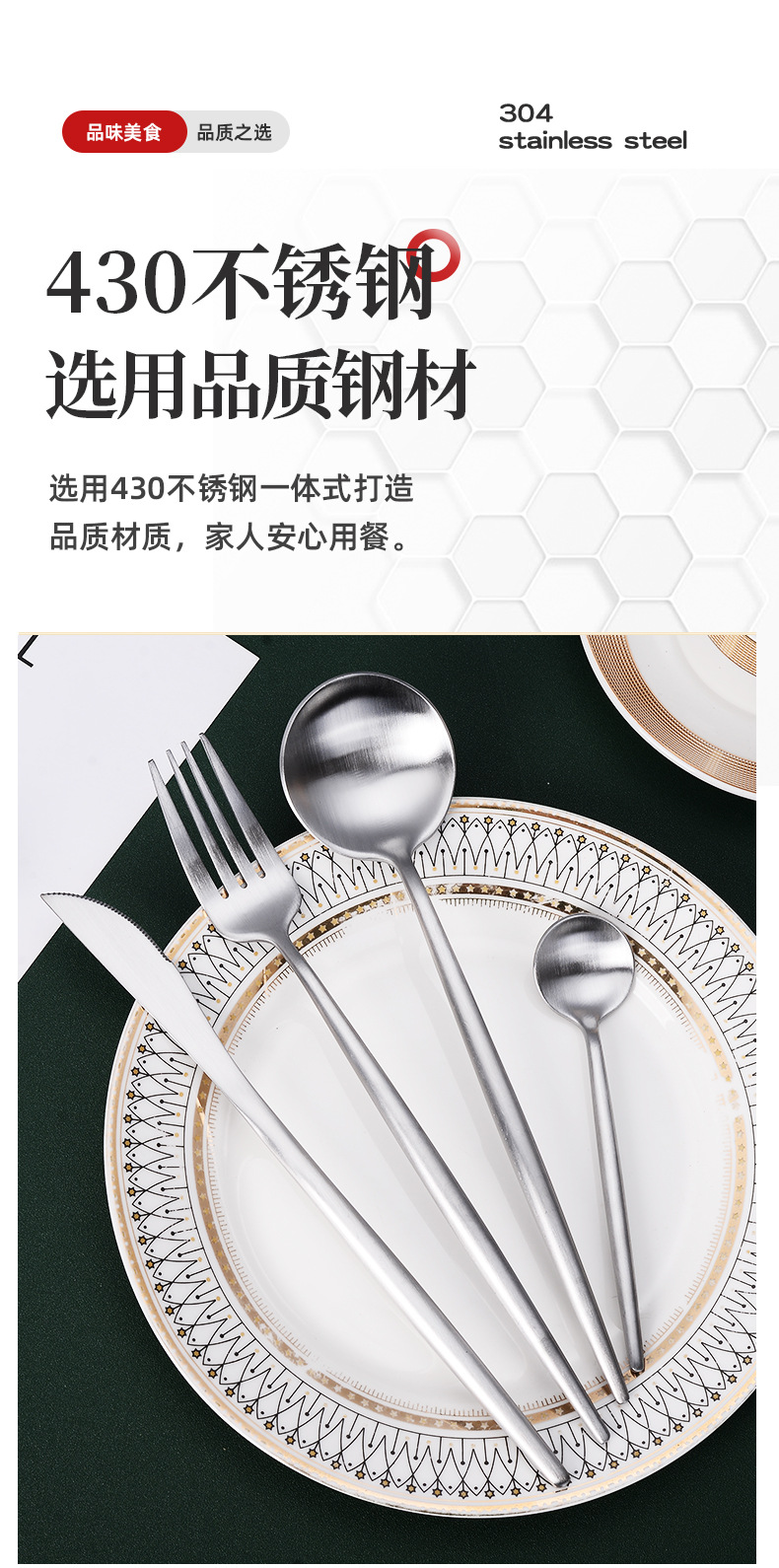 스테이크 나이프, 포크, 스푼 430 스테인리스 스틸 서양식 식기류, 호텔 레스토랑 및 가정용 세트, 북유럽 스타일