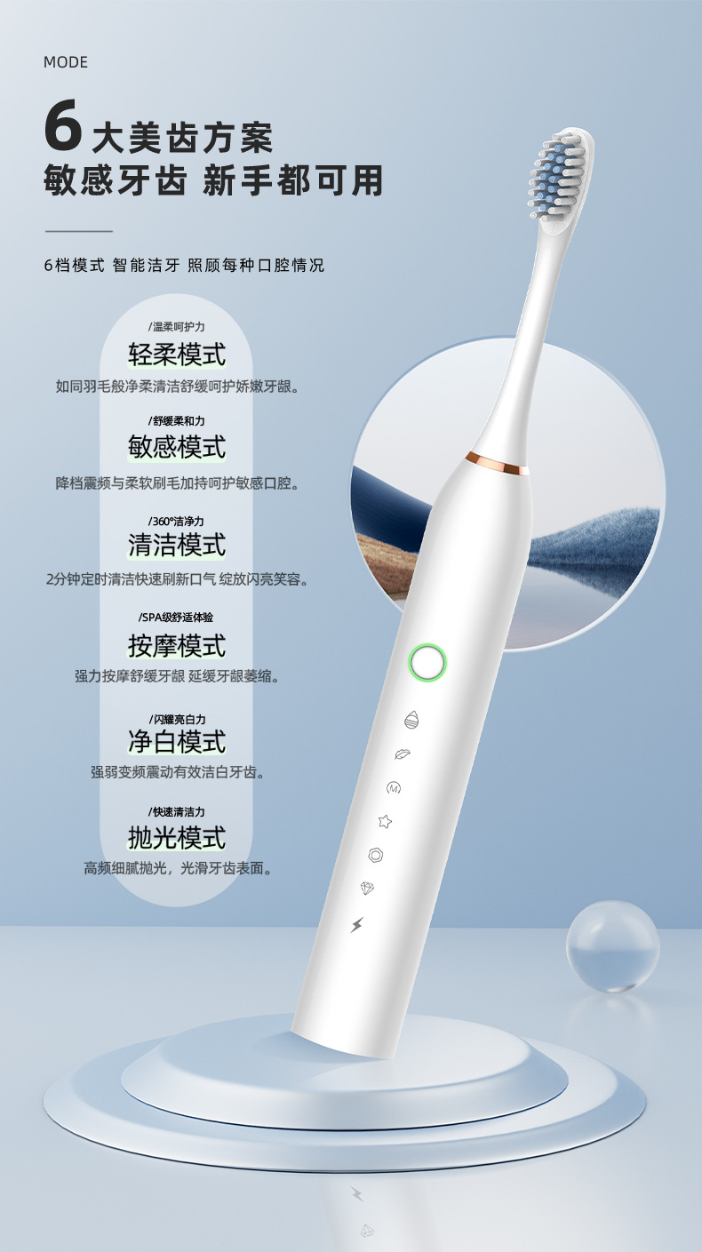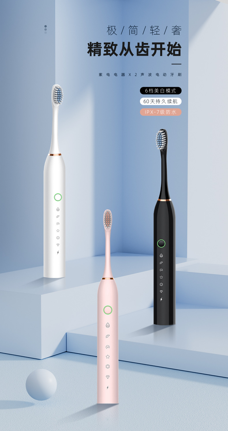 전동 칫솔 충전식 크로스보더 성인용 부드러운 강모 자동 음파 충전식 스마트 치아 청소 도구 커플 모델