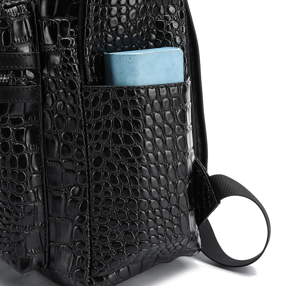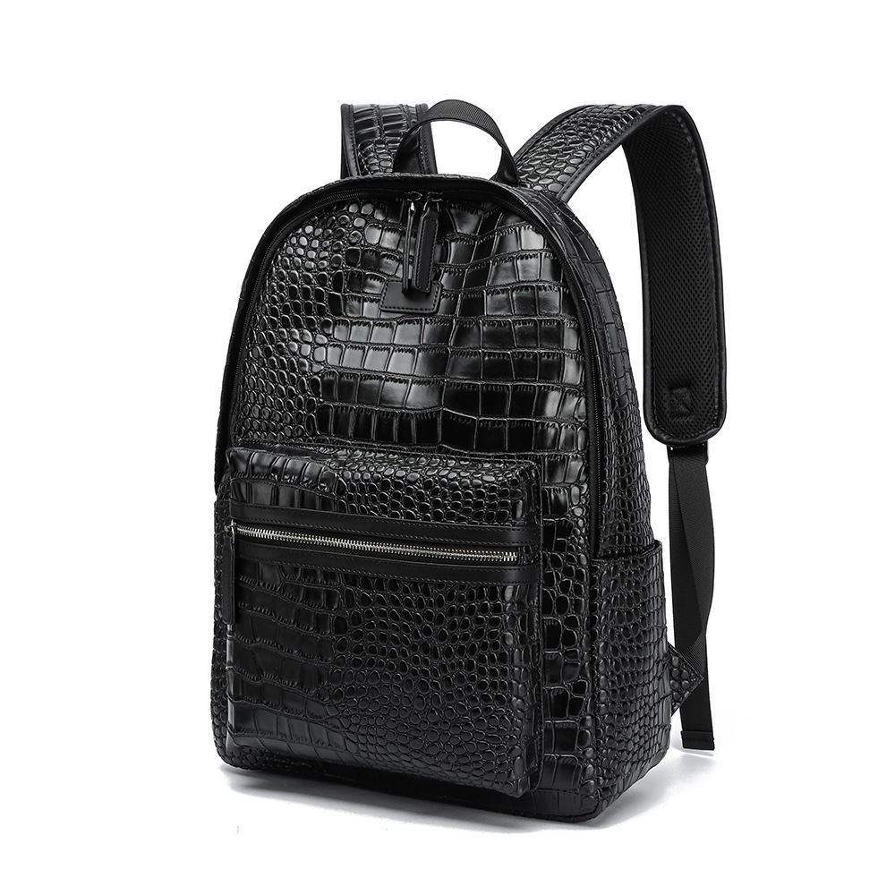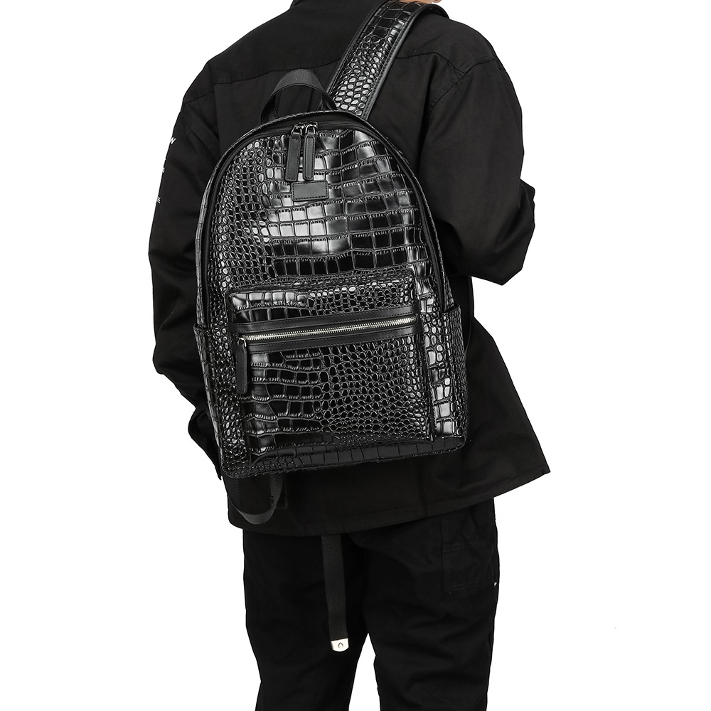2025 새로운 한국어 스타일 악어 패턴 리벳 배낭 유행 배낭 컴퓨터 가방 학생 학교 가방 남자 배낭 도매