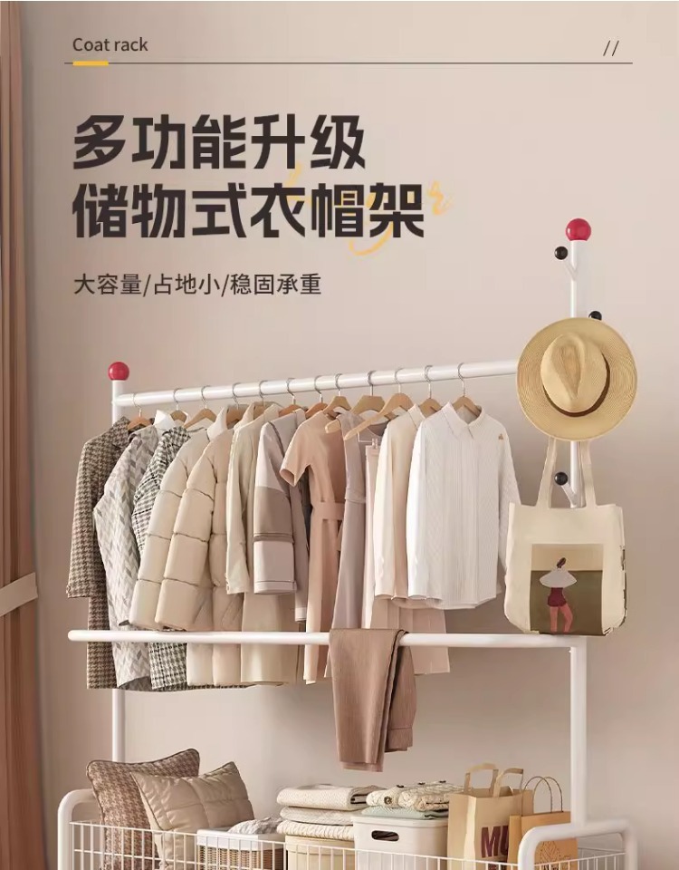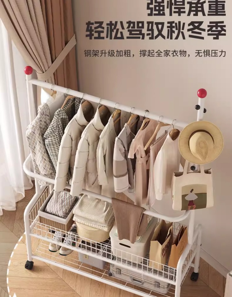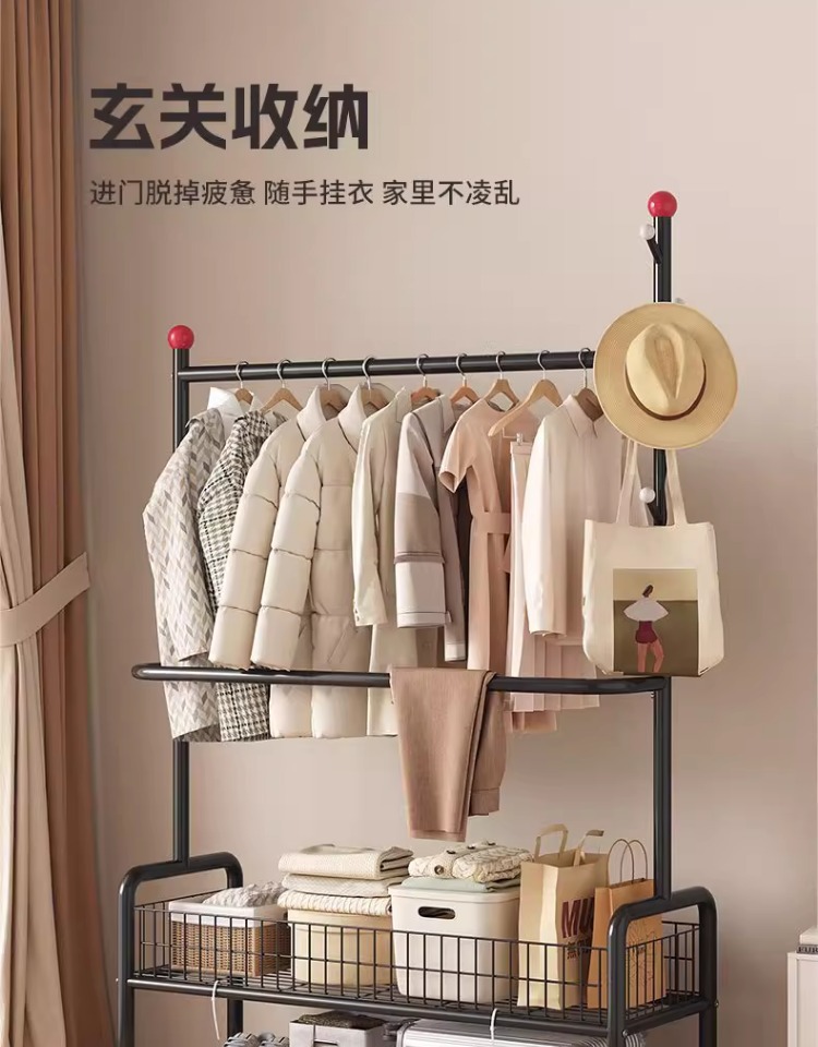 가정용 침실 옷걸이용 바닥 스탠딩 옷 건조대 실내 기숙사 이동식 옷 건조대 및 모자 걸이 간단한 옷 걸이