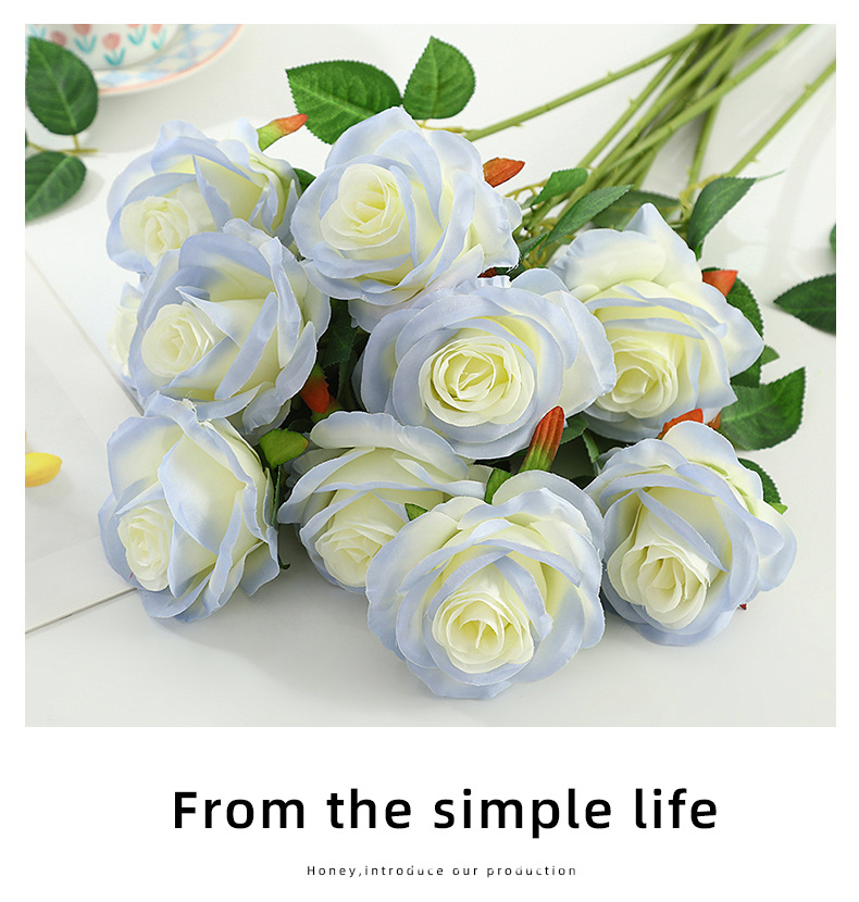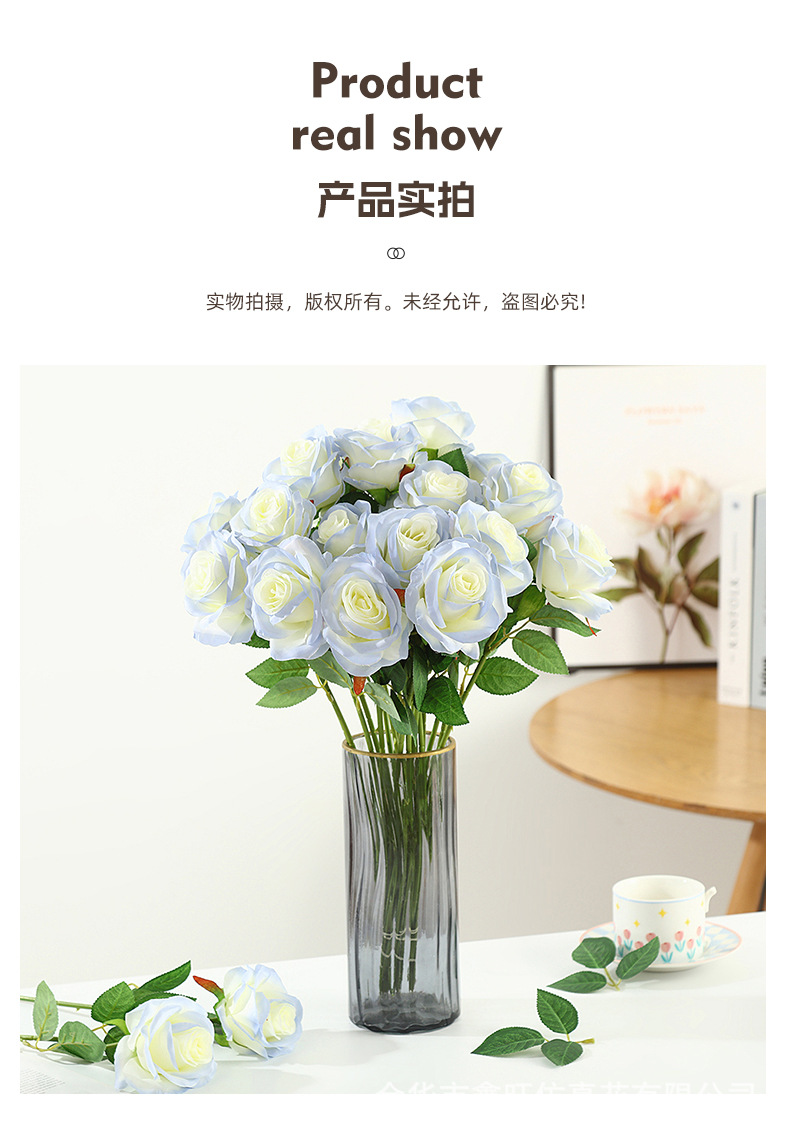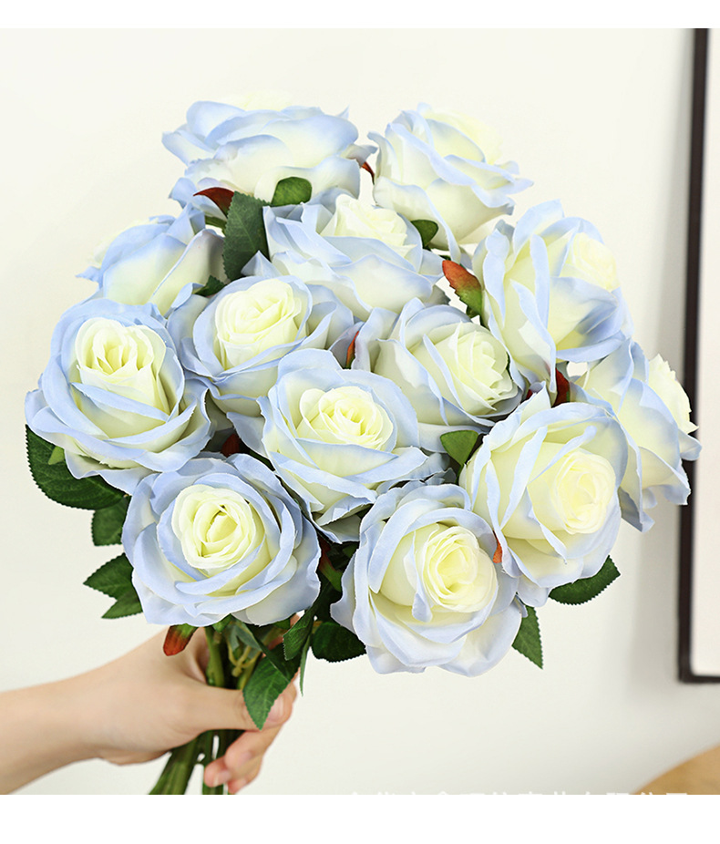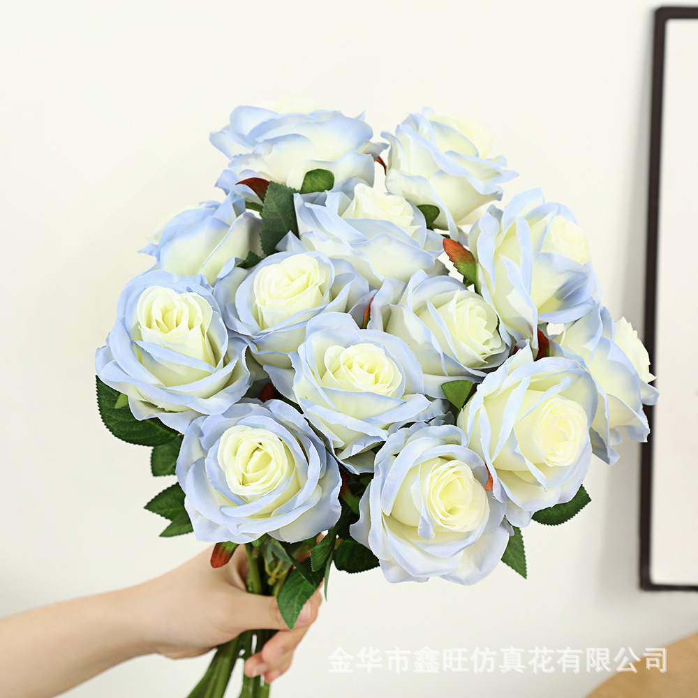 인공 꽃 얼음 파쇄 블루 장미 야외 촬영 사진 소품 가짜 꽃 홈 꽃병 꽃꽂이 장식 영원한 꽃
