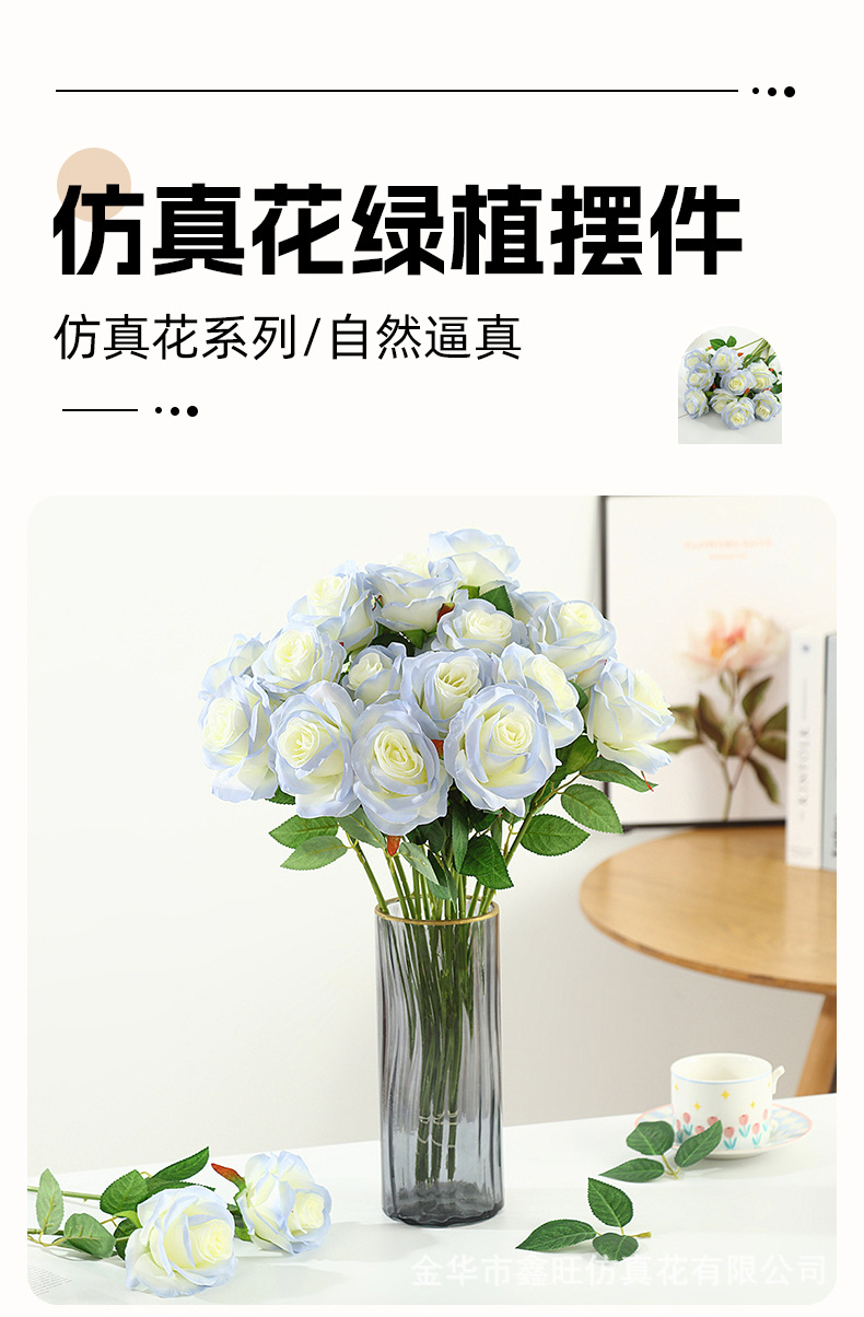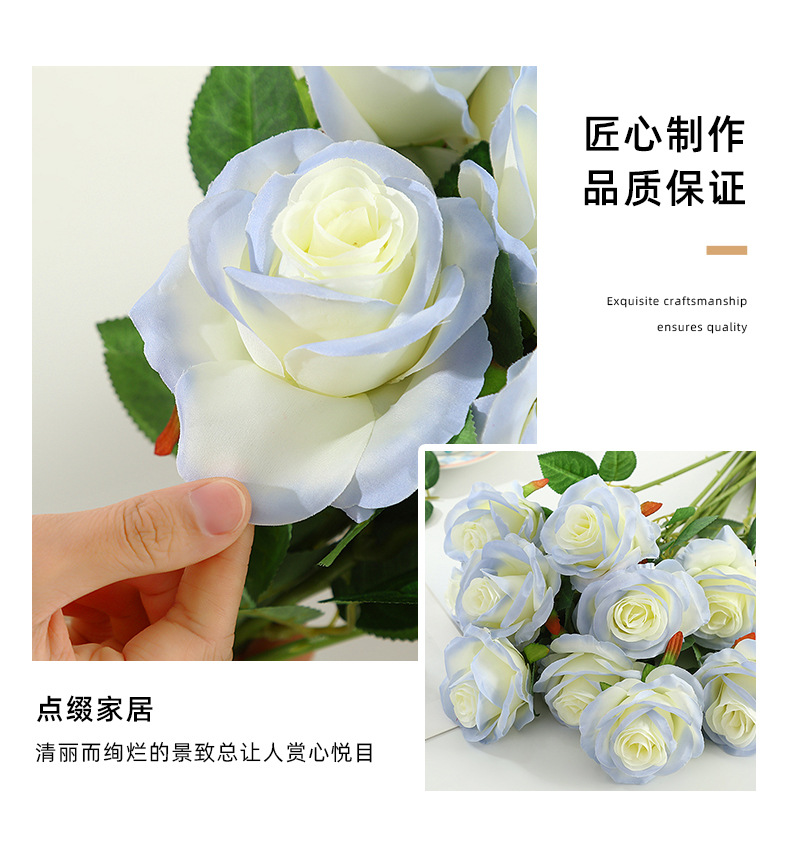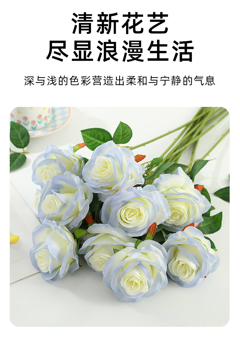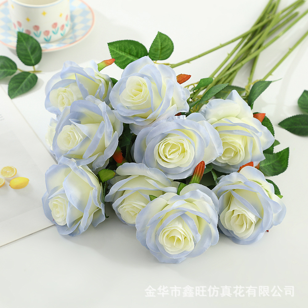 인공 꽃 얼음 파쇄 블루 장미 야외 촬영 사진 소품 가짜 꽃 홈 꽃병 꽃꽂이 장식 영원한 꽃