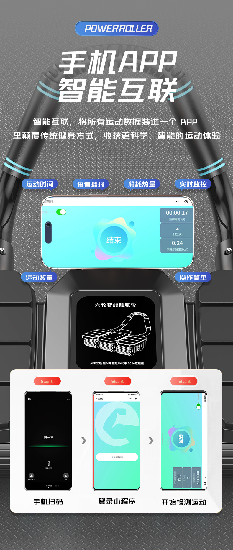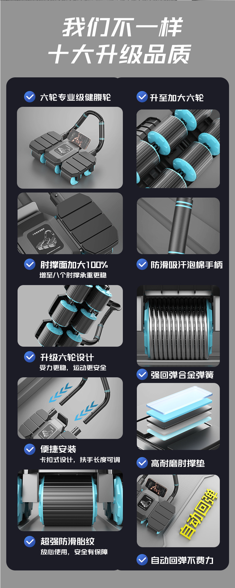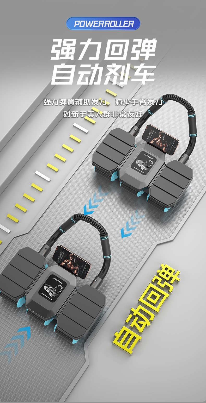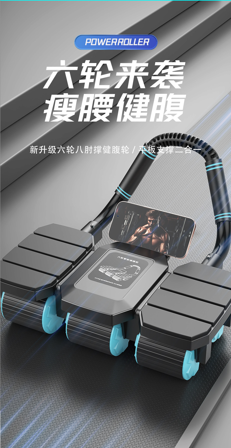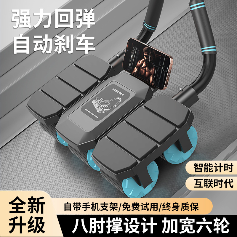 새로운 6륜 복부 휠, 자동 리바운드 복부 근육 트레이너, 슬리밍 배, 스마트 휴대폰 홀더
