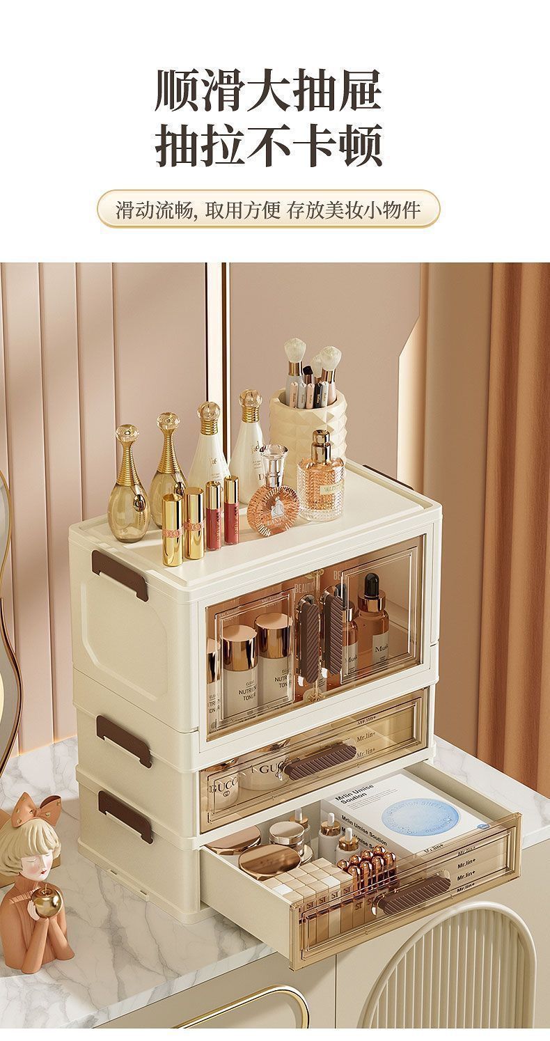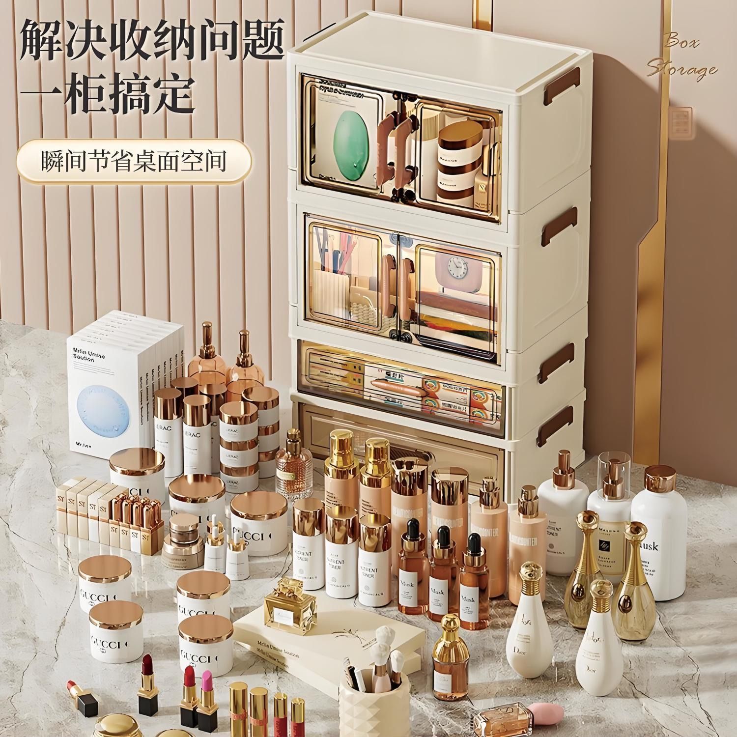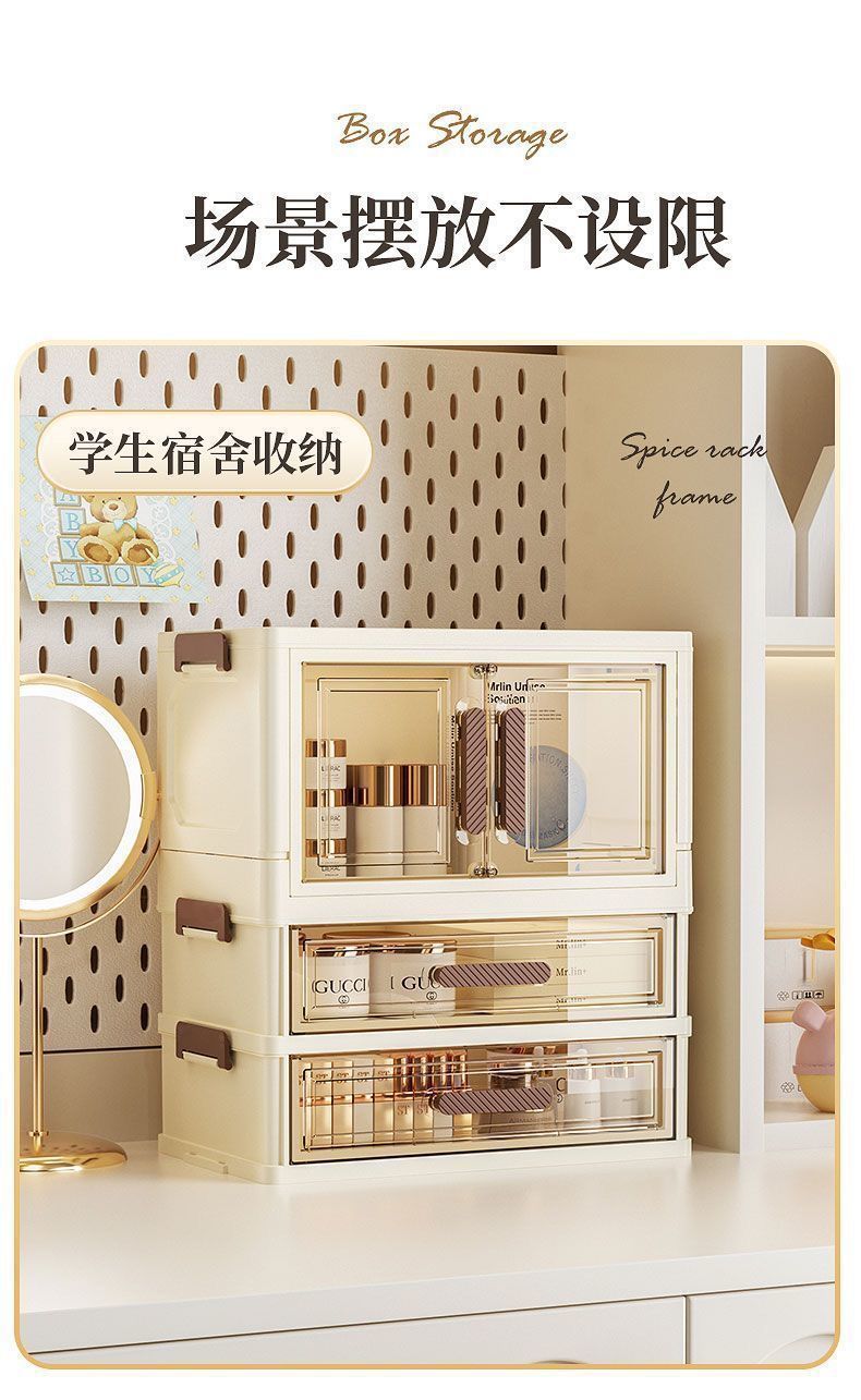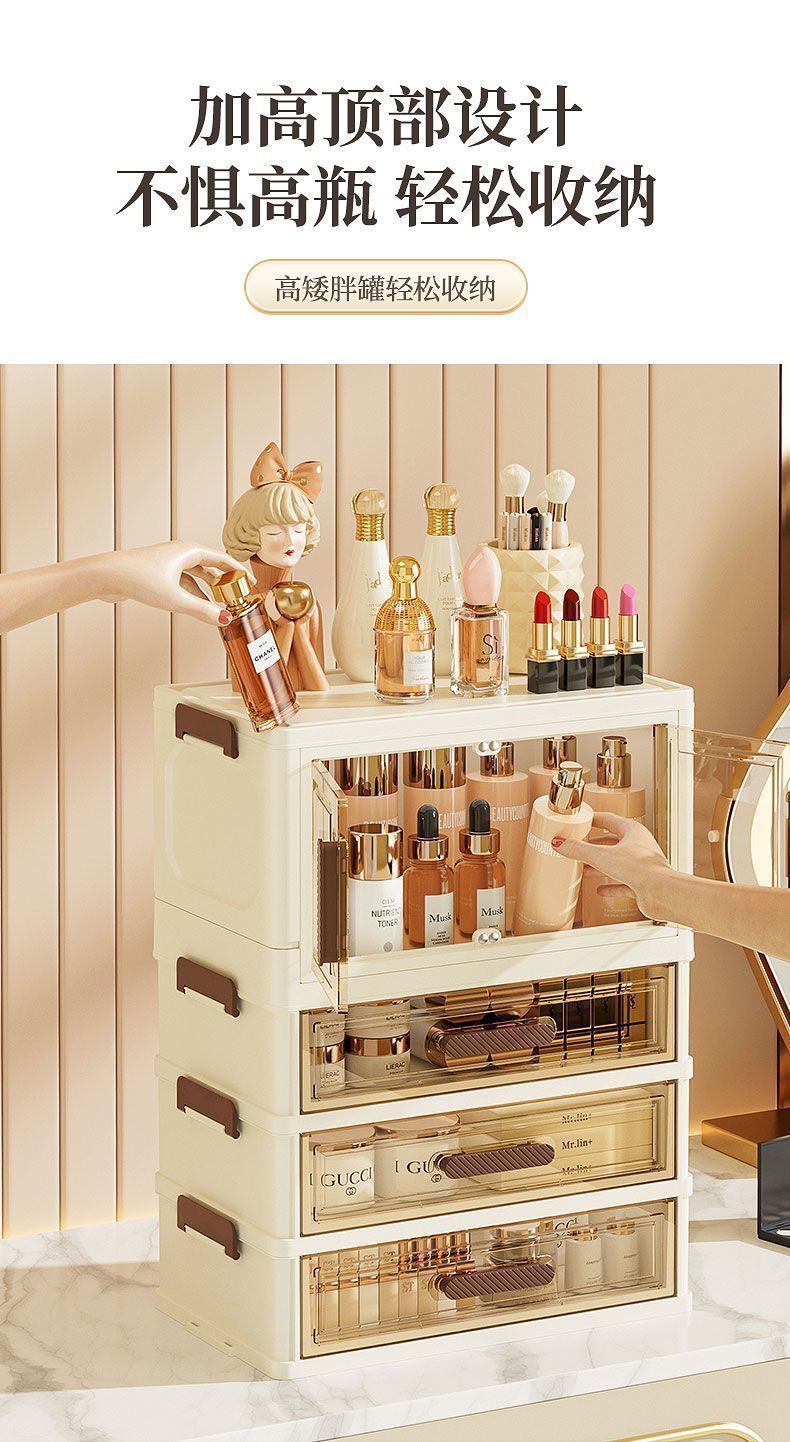 화장품 보관함 데스크탑 화장대 방진 보관함 접이식 설치 투명 서랍형 다층 보관 캐비닛