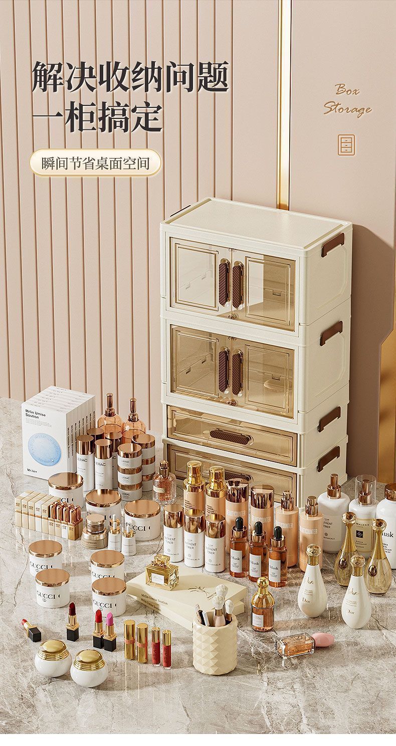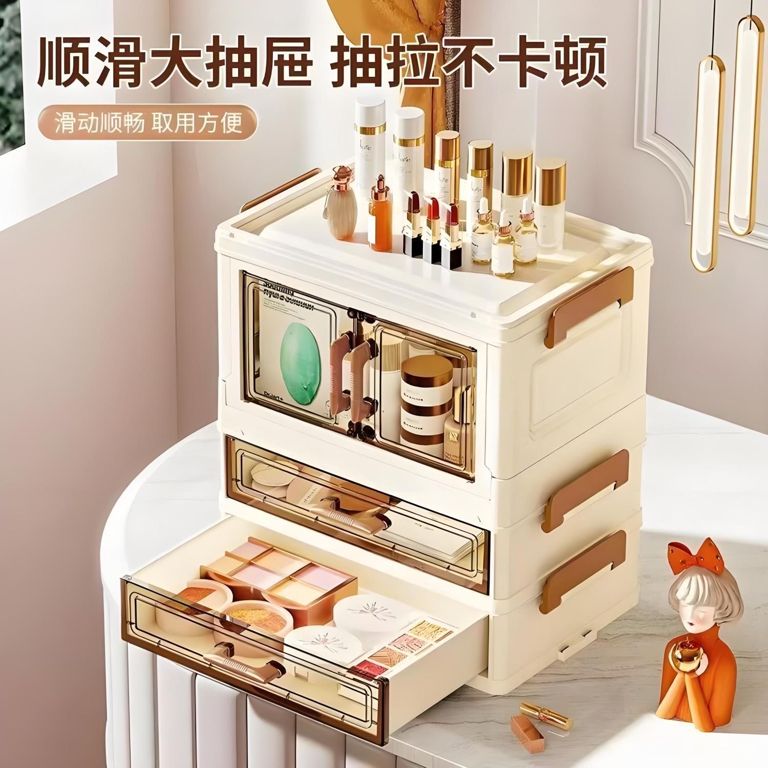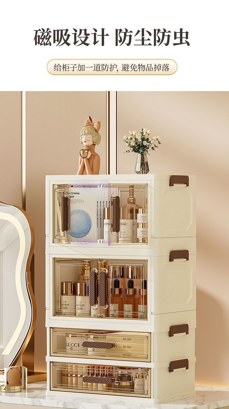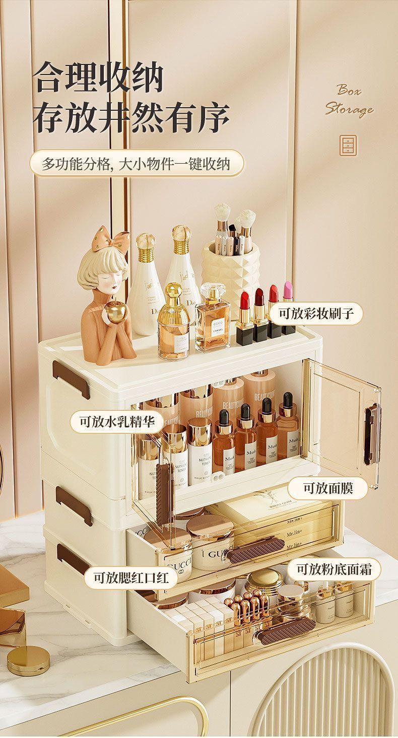 화장품 보관함 데스크탑 화장대 방진 보관함 접이식 설치 투명 서랍형 다층 보관 캐비닛