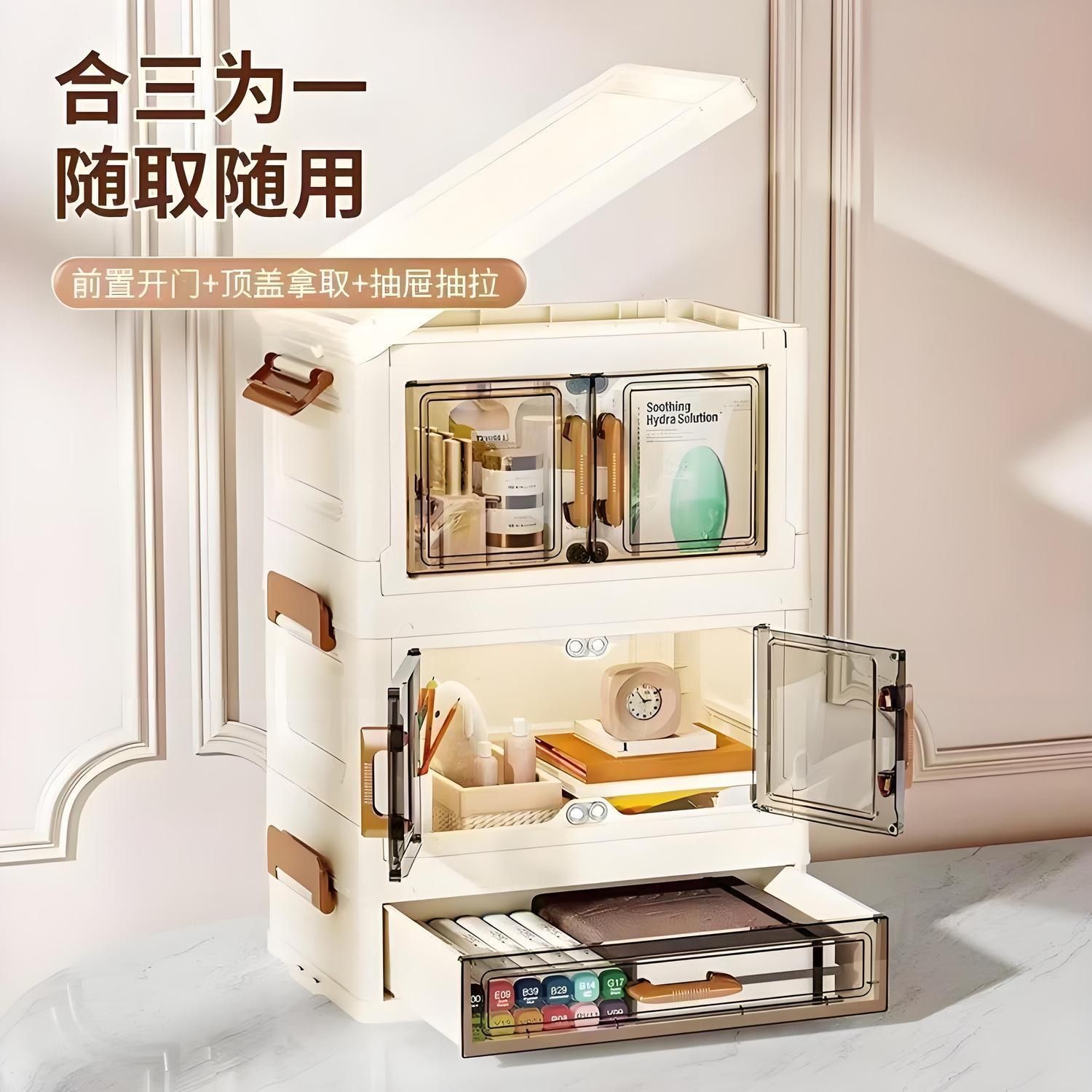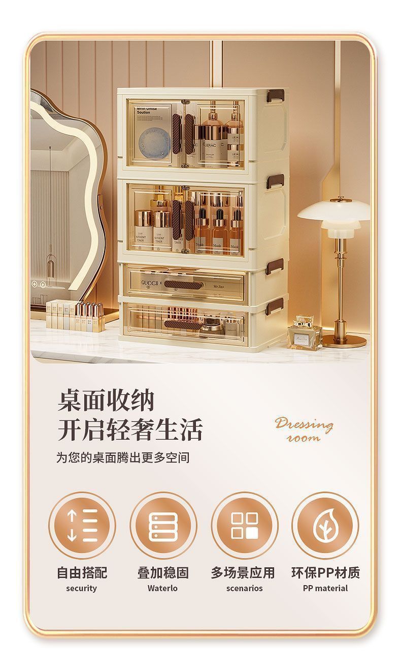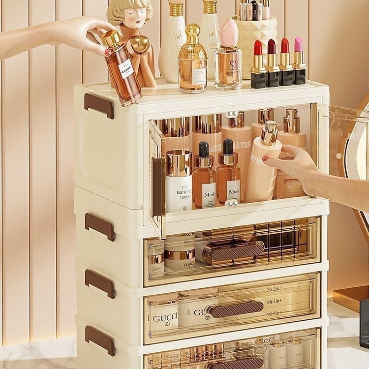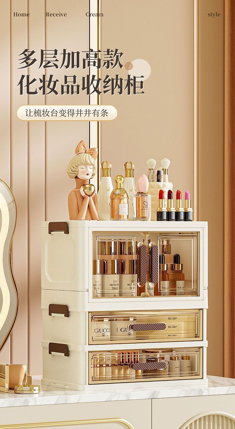 화장품 보관함 데스크탑 화장대 방진 보관함 접이식 설치 투명 서랍형 다층 보관 캐비닛