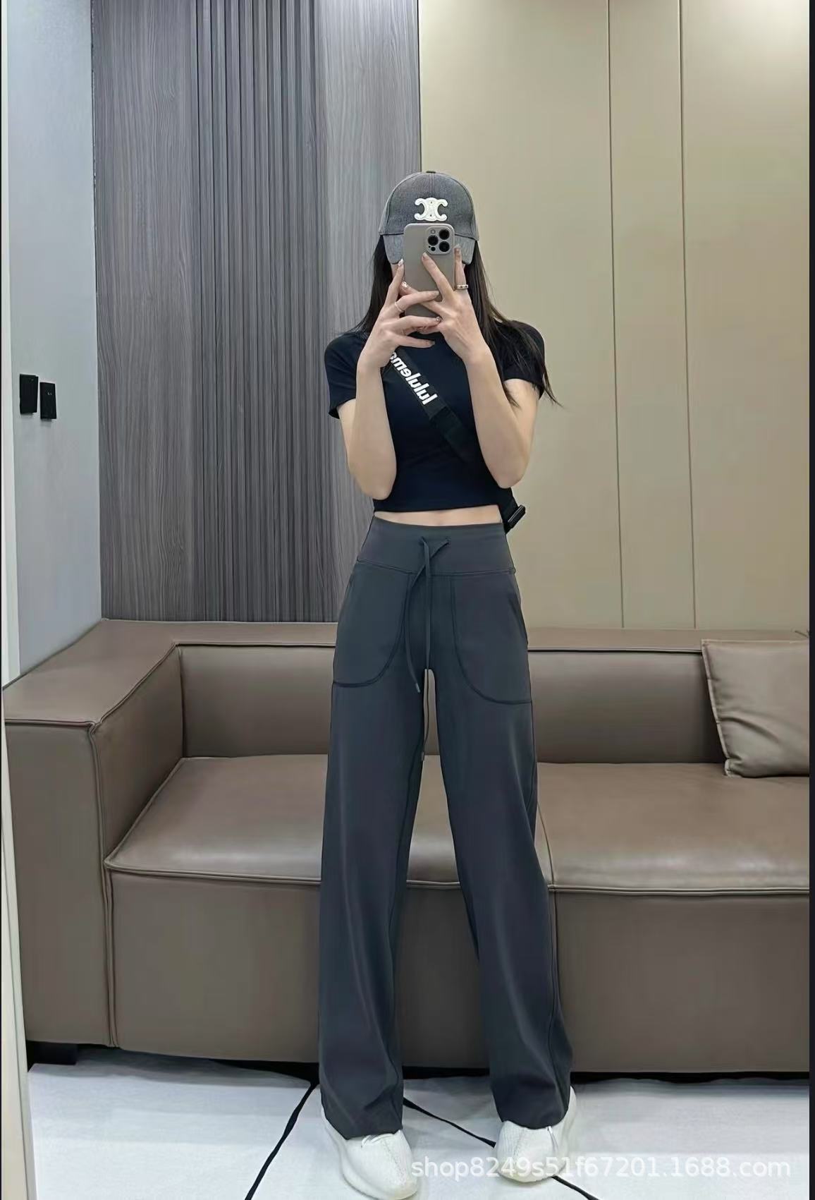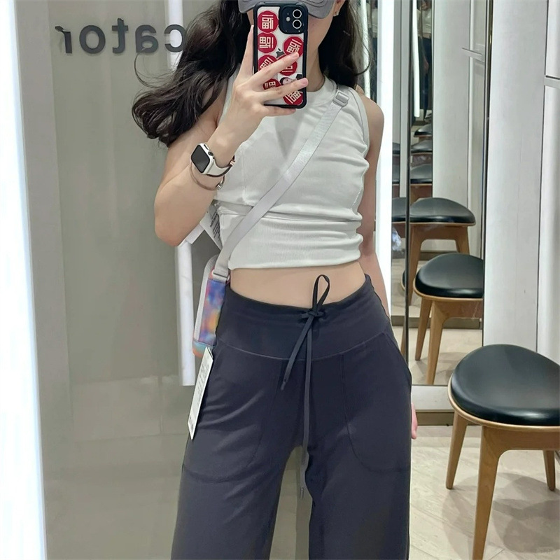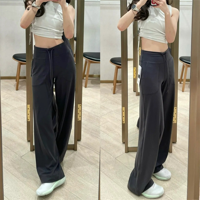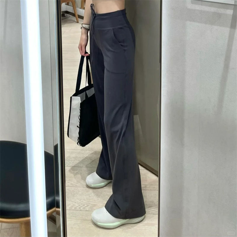 룰루 오리지널 레귤러 스트레이트 팬츠 여성 요가 팬츠 Throwback Still 같은 스타일 캐주얼 드로스트링 하이웨이스트 와이드 팬츠