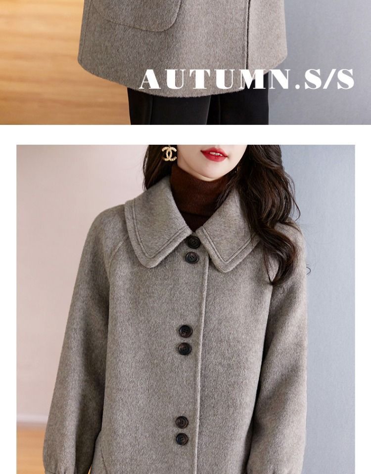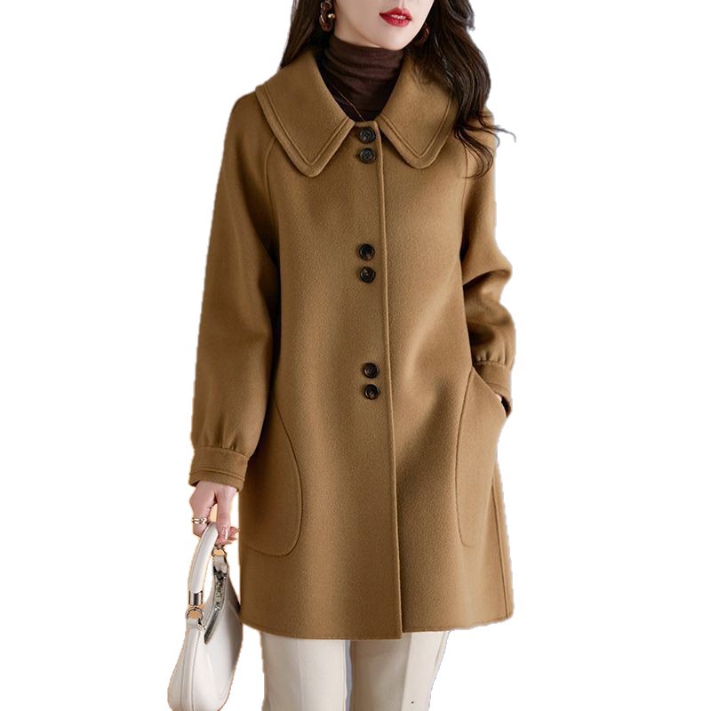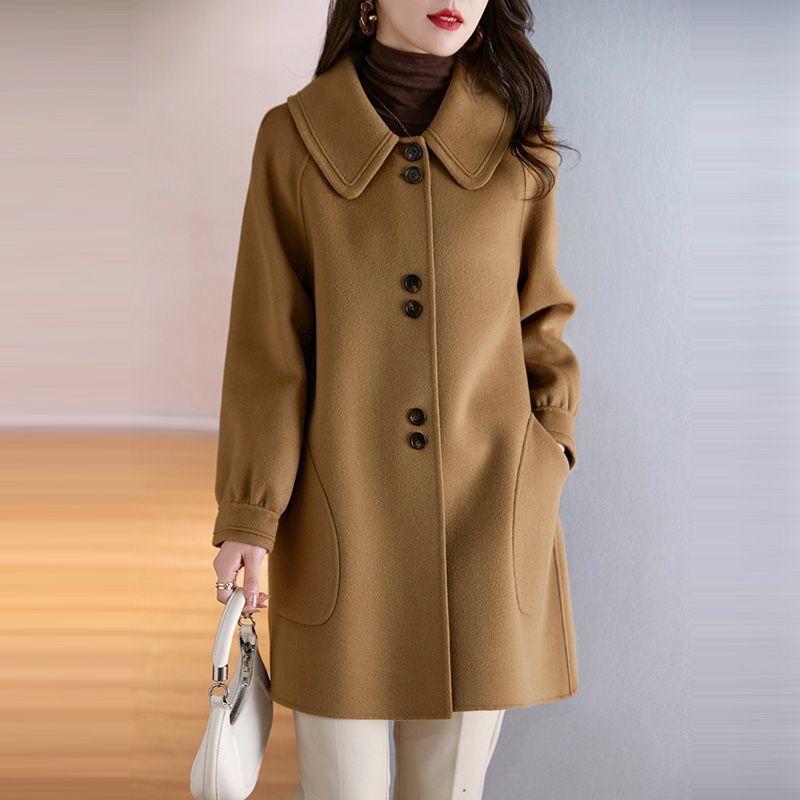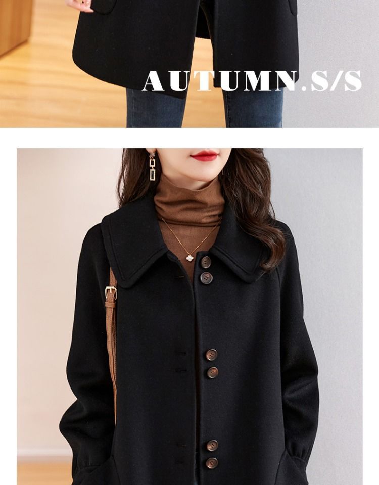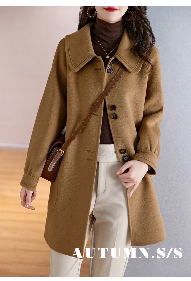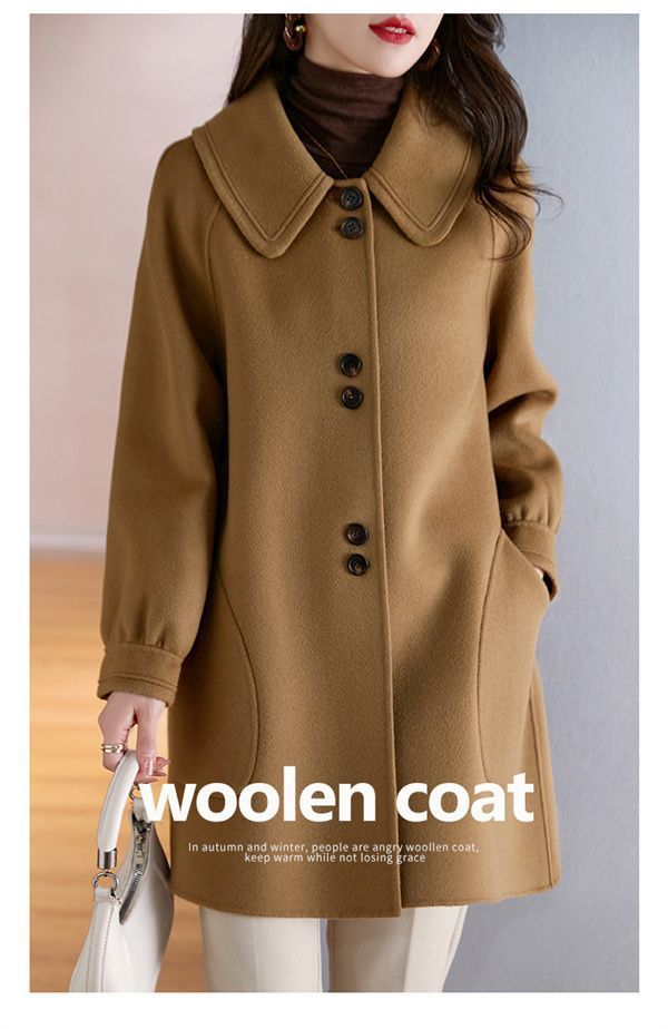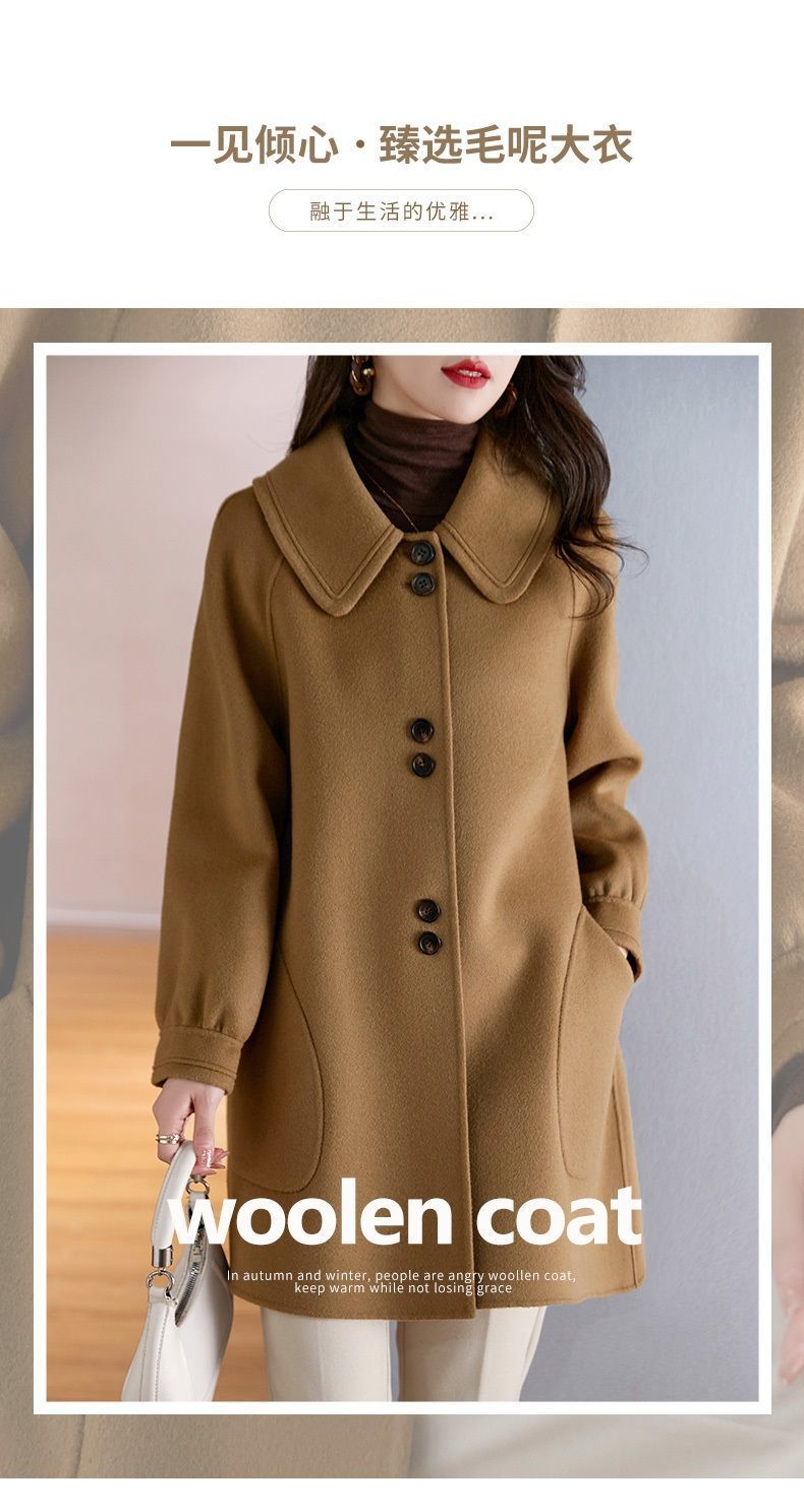 2025 여성 봄, 가을 새로운 한국 스타일 패션 느슨한 슬림 인형 칼라 하이 엔드 외국 스타일 모직 코트
