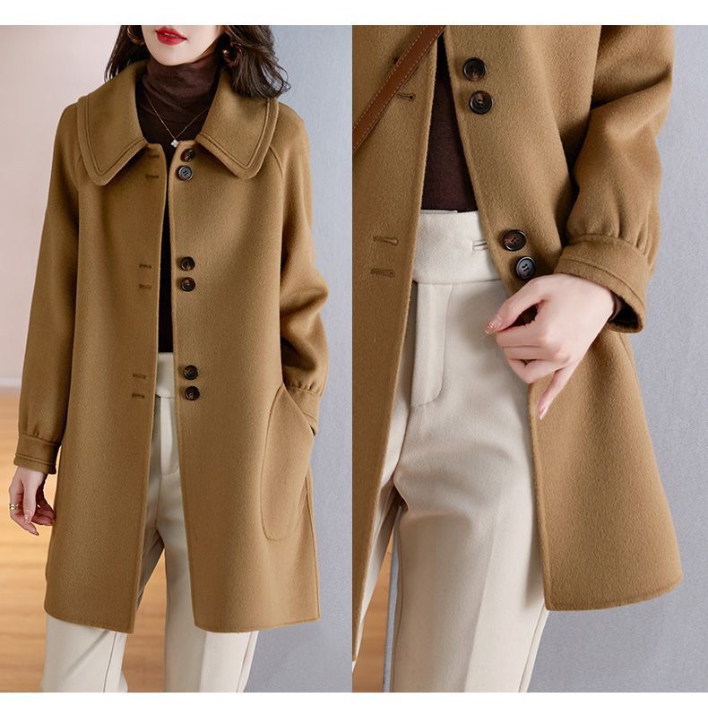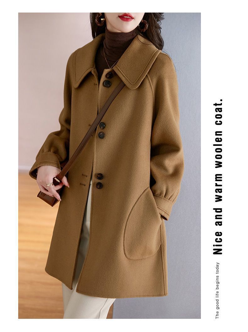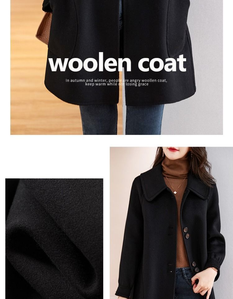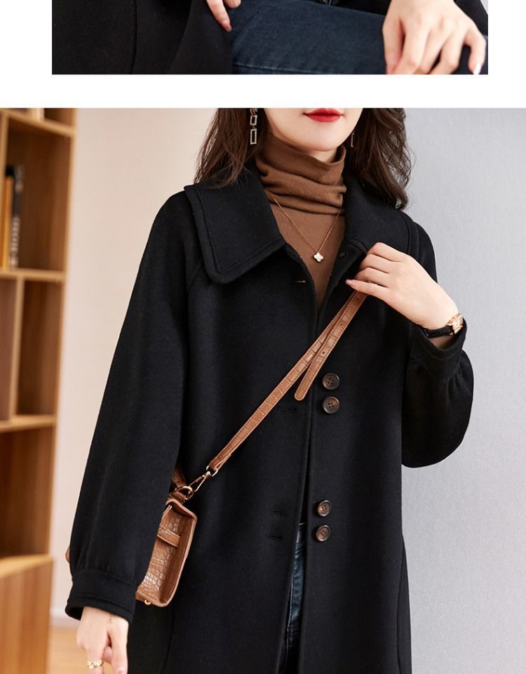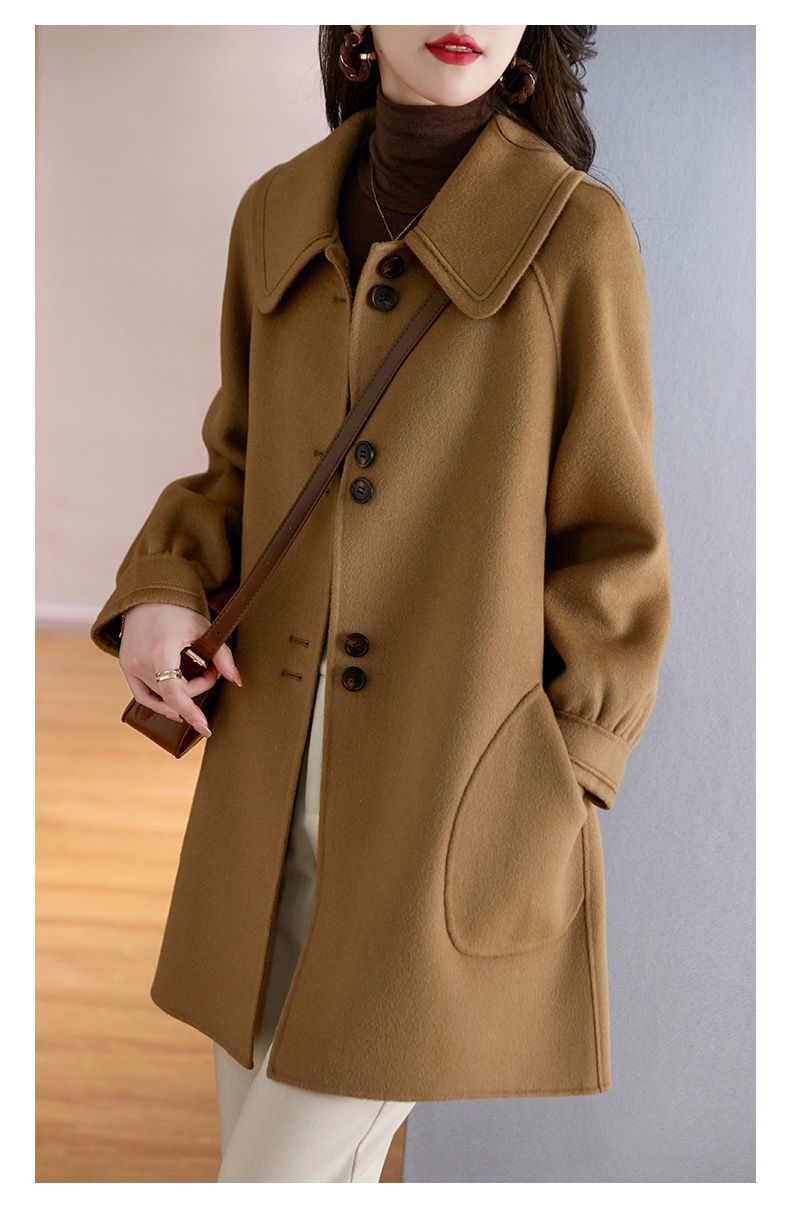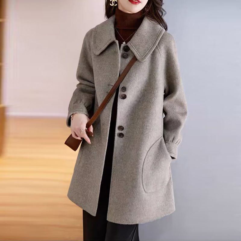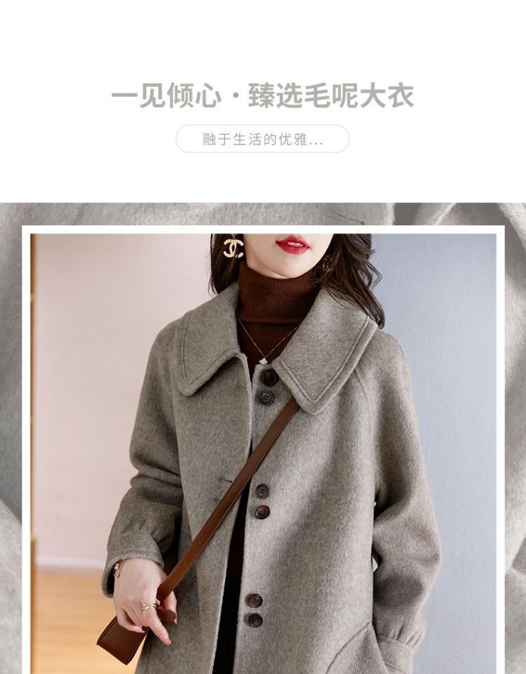 2025 여성 봄, 가을 새로운 한국 스타일 패션 느슨한 슬림 인형 칼라 하이 엔드 외국 스타일 모직 코트