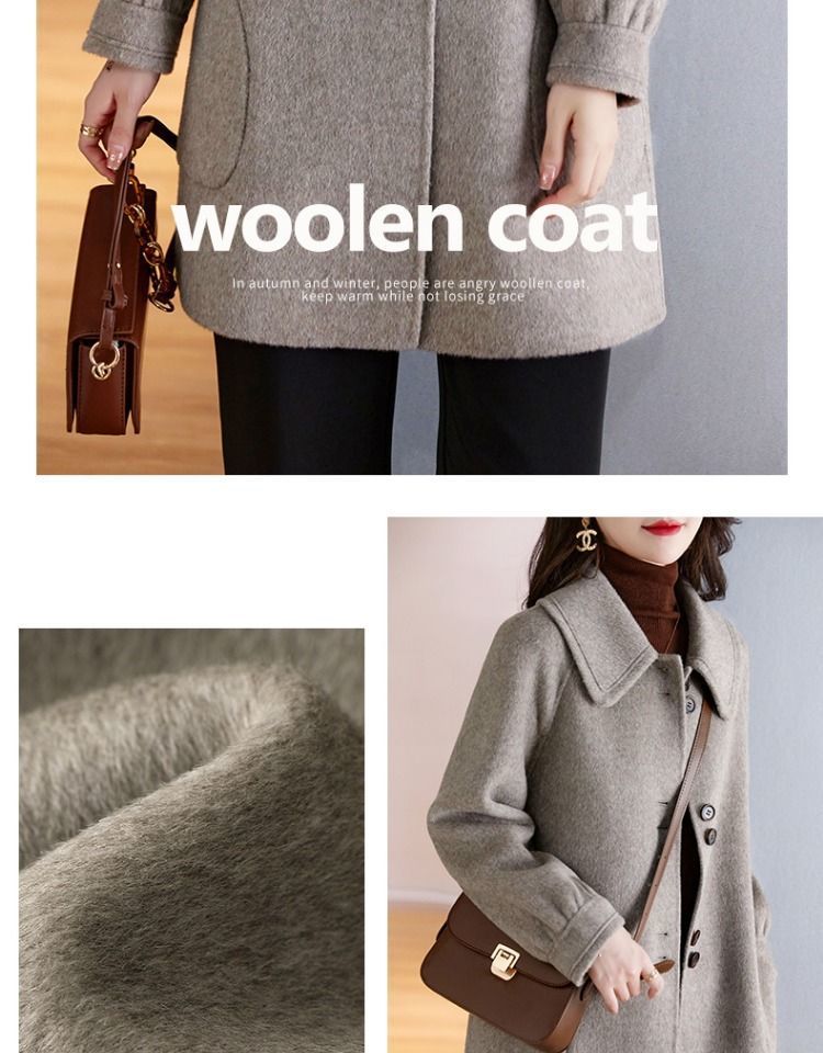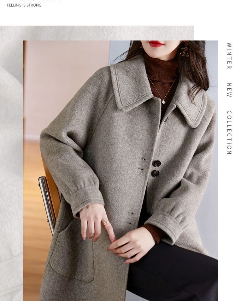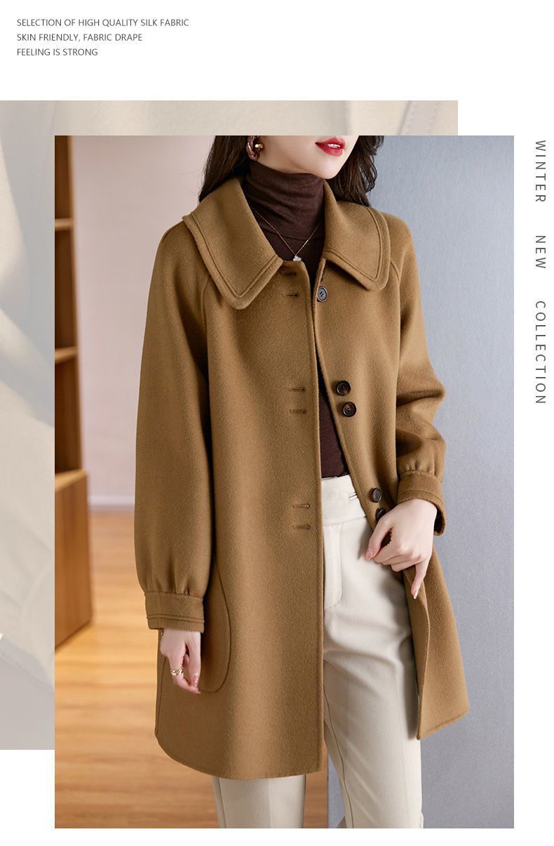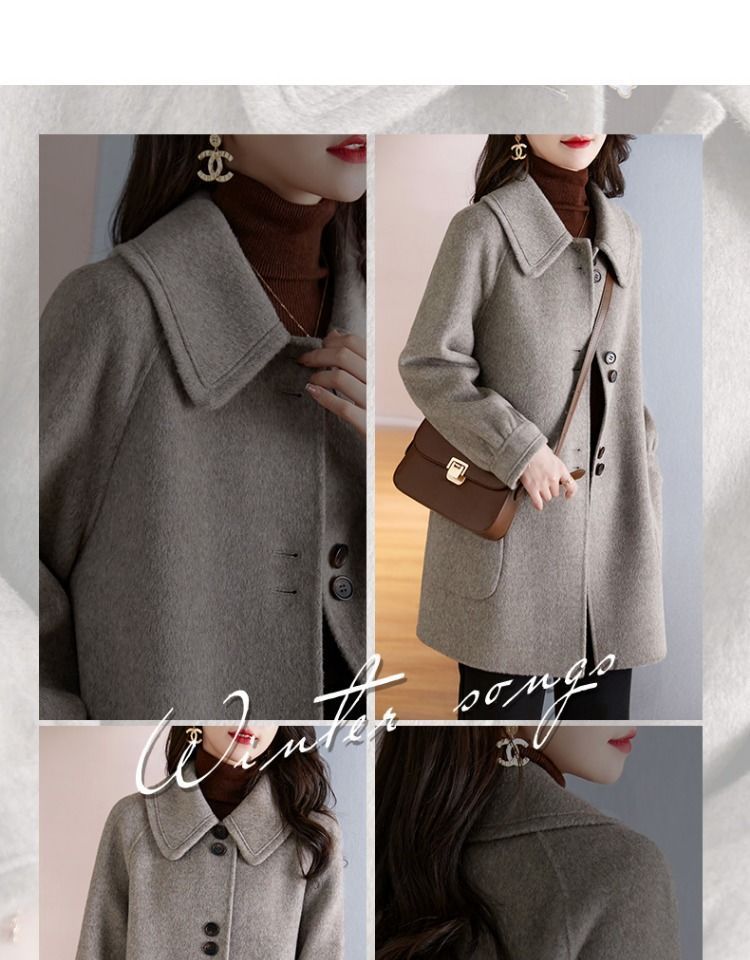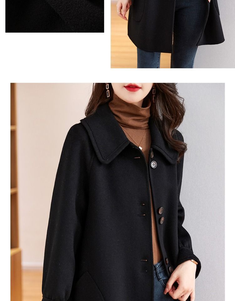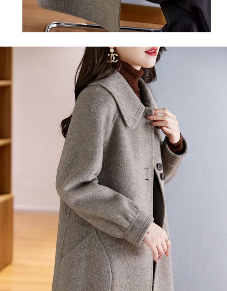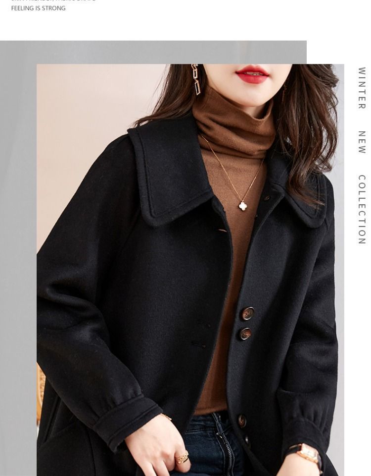 2025 여성 봄, 가을 새로운 한국 스타일 패션 느슨한 슬림 인형 칼라 하이 엔드 외국 스타일 모직 코트